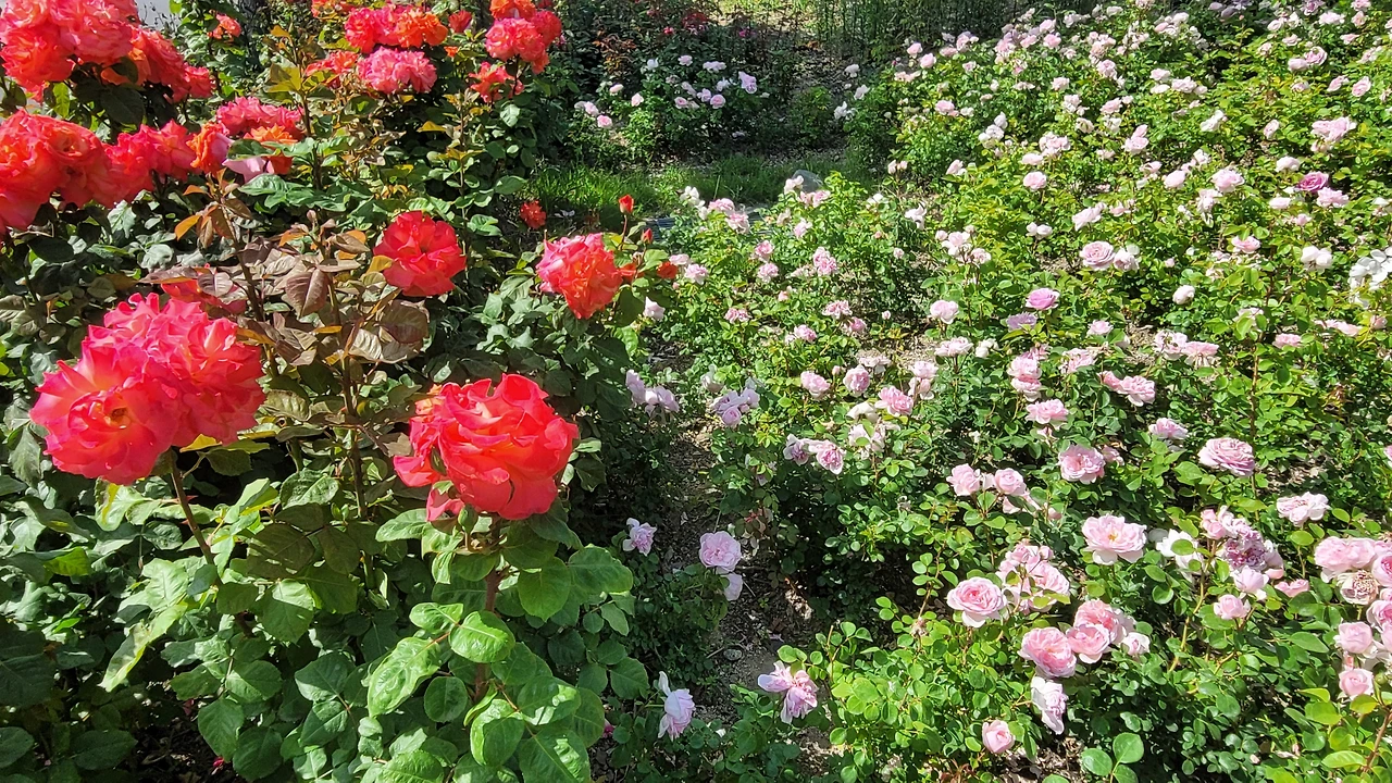 모양이 작은 장미꽃들은 아이들이 재잘거리며 노는 것처럼 앙증맞다. 반면에 커다란 장미꽃송이들은 성숙한 여인의 풍모가 풍긴다. 풍성한 머리카락을 풀어헤친 듯 자유스러운 자태가 군락을 이룬 풍경도 또 다른 볼거리다. 꽃송이 하나의 세밀함은 떨어져도 풍부한 꽃잎이 여인들의 풍성한 드레스 자락처럼 부드러운 인상을 풍긴다.