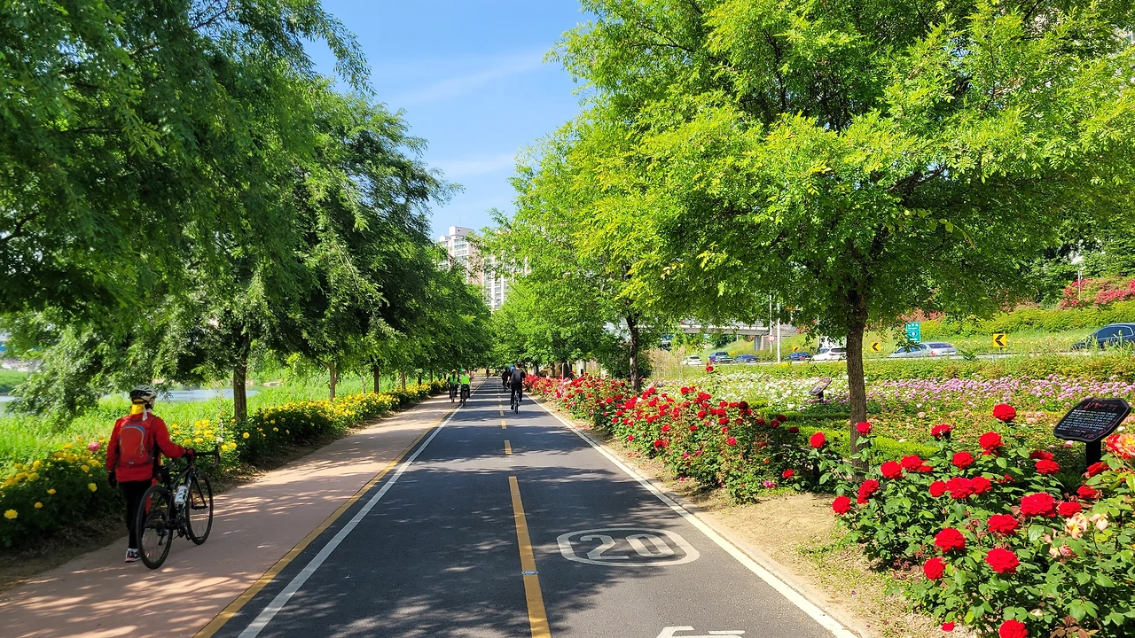 최근 5월 22일부터 숲해설사 교육을 받게 되었다. 교육장소는 뚝섬 서울숲 근처에 위치한 곳이었다. 첫날은 장소를 처음으로 찾아가는 길이라 전철을 이용했지만 이후로 따릉이를 타기로 마음을 먹었다. 그래서 다음 날은 따릉이를 타고 수업을 들으러 갔다. 아침 햇살을 받으며 꽃이 가득한 중랑천을 달리는 기분은 마음을 들뜨게 했다. 그 어느 때보다 길 양쪽으로 장미가 만발한 화려한 경치는 시선을 빼앗기에 충분했다. 멈춰 서서 사진도 찍으며 여유를 즐기고 싶었지만 시간이 얼마나 소요될지 알 수 없어서 눈으로만 누리는 것으로 만족해야 했다.