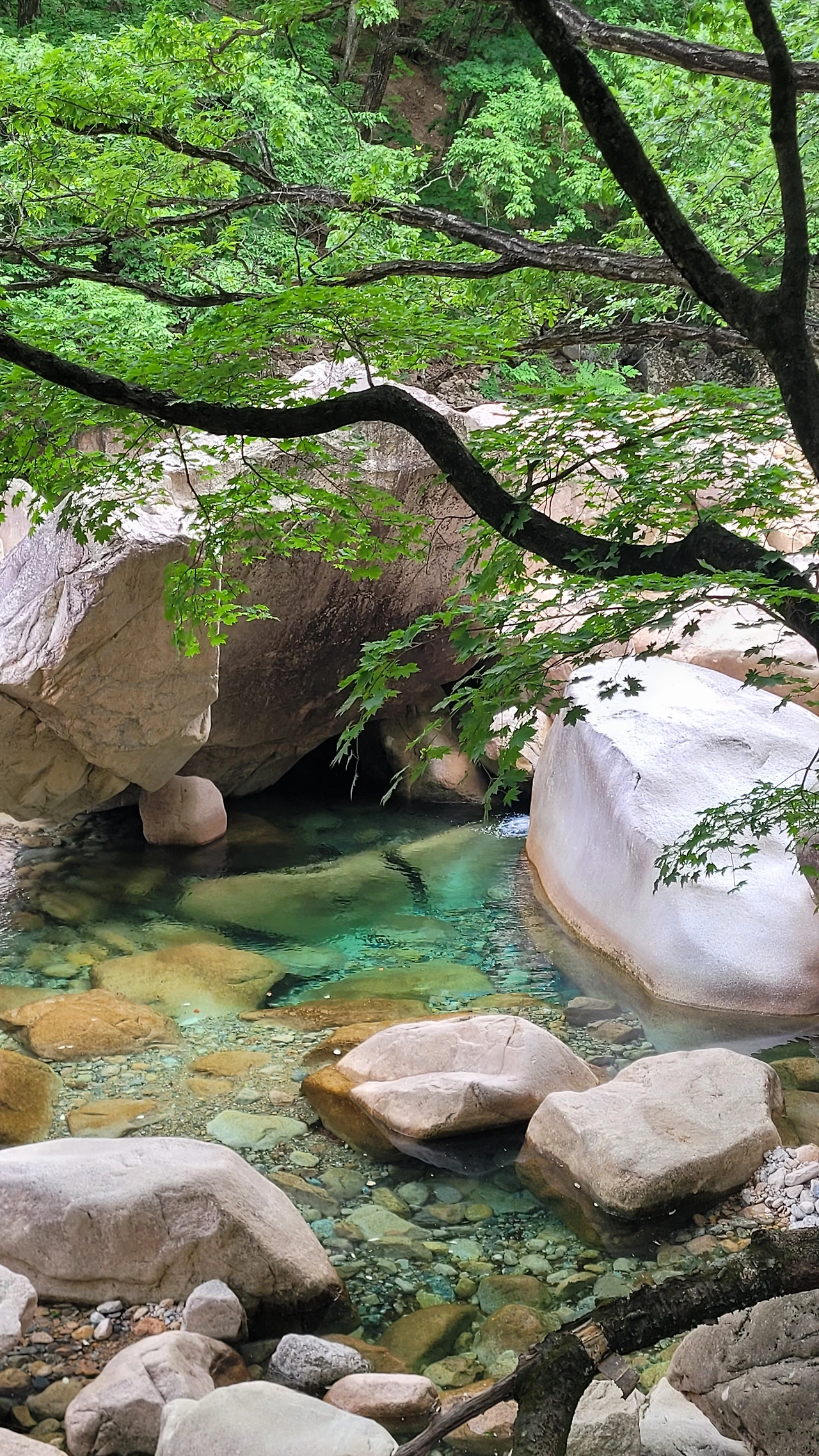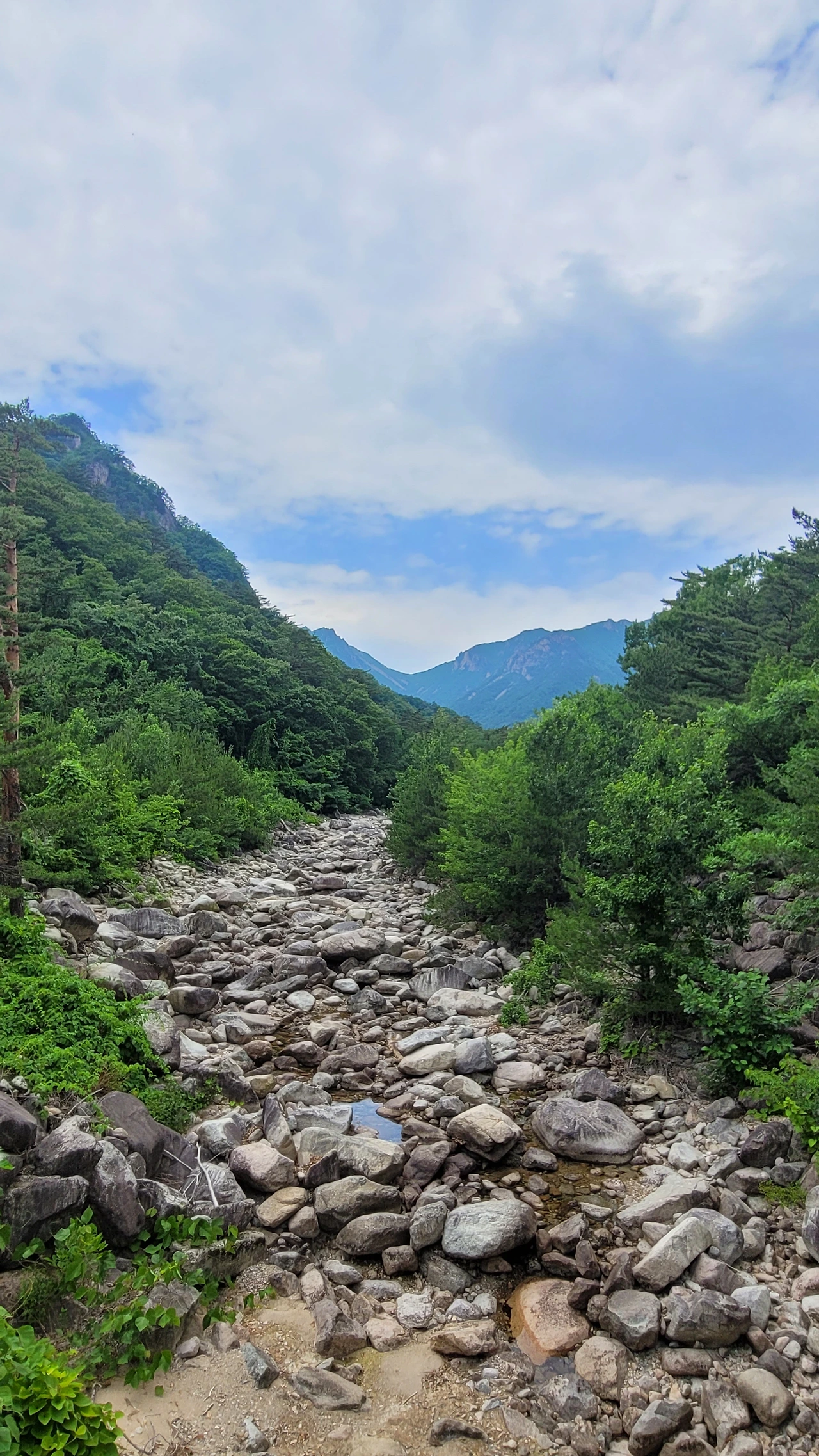 오랜만에 찾은 설악동에 저마다 기억을 소환하며 추억의 보따리를 푼다. 학창 시절 수학여행의 필수 코스였던 설악산이었고 여름마다 단골로 찾았지만 코로나 여파로 한동안 그러질 못했다. 그런 아쉬움을 달래며 광장을 지나 비선대를 향해 걸음을 옮긴다. 사전에 계획을 한 것은 아니었지만 기왕에 온 설악산을 조금이라도 맛보고 싶었다. 울창한 숲 속을 걷는 발걸음이 가볍다. 서늘한 바람도 불어 상쾌함이 배가된다. 등산객도 많지 않은 점이 한결 더 여유롭다. 숲에는 소나무뿐 아니라 갈참나무와 졸참나무가 많이 보인다. 지루하지 않게 산목련 꽃도 만난다. 걷는 걸음걸이가 전혀 힘들지 않고 가뿐하다. 강원도 깊은 산속을 걷는 기쁨이 온몸에 차오른다. 오르다 만난 계곡물이 너무나 맑고 깊어 푸른빛이 울렁거린다. 자연이 빚어놓는 아름다운 풍경에 저절로 매료되어 세상 일은 하나도 생각이 나지 않는다.
