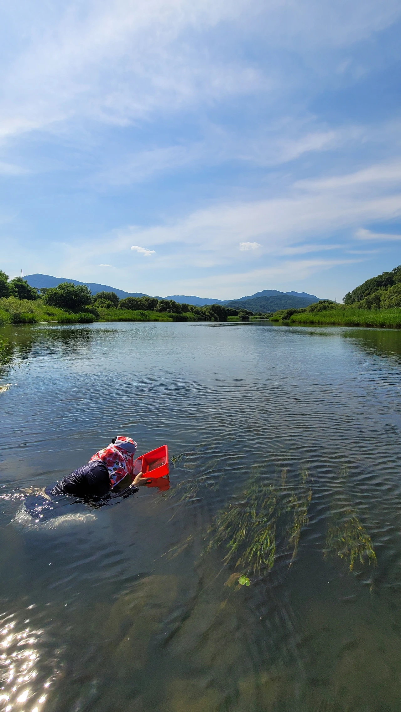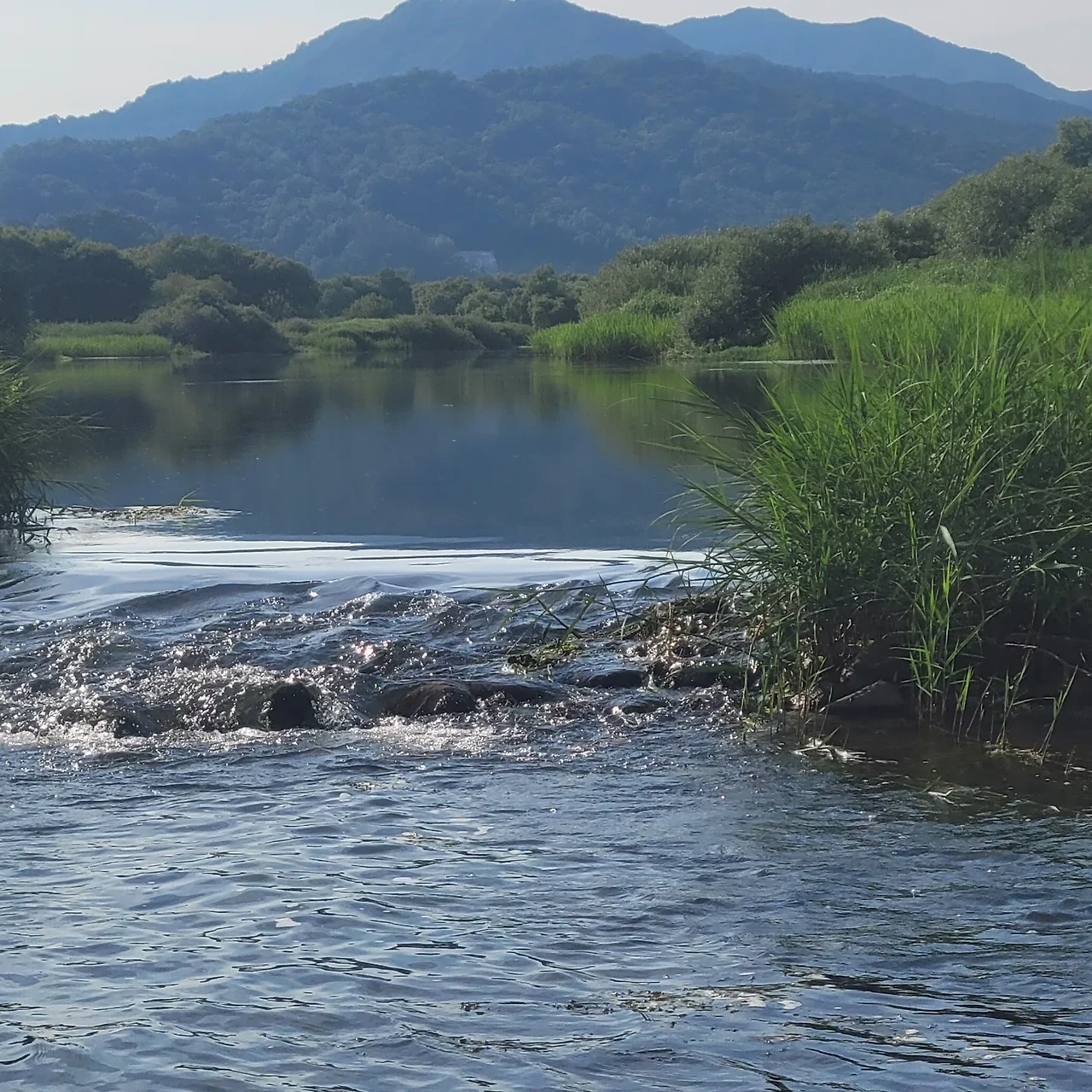 따가운 햇살에 등이 따갑지만 시원한 강물이 상쾌하게 더위를 날린다.