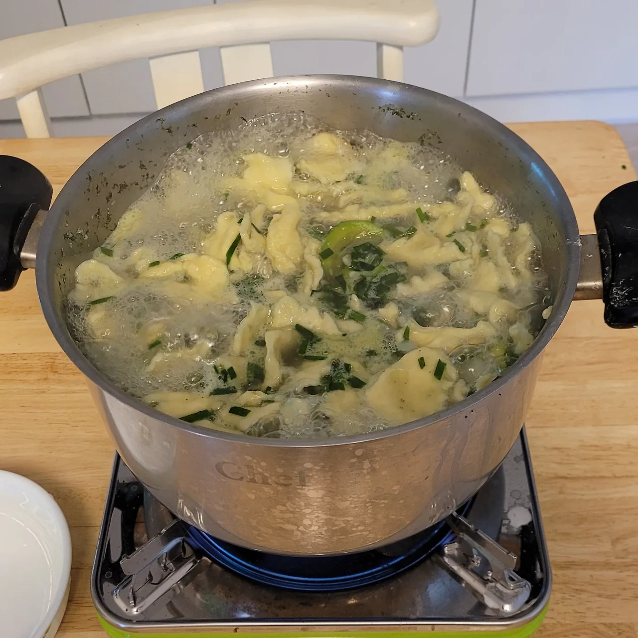 감자와 애호박을 넣고 수제비를 뚝뚝 떼어 만든 다슬기 수제비로 저녁을 먹었다.