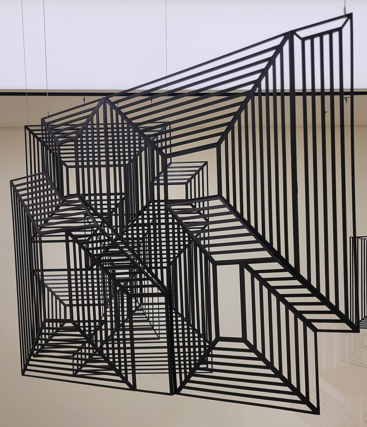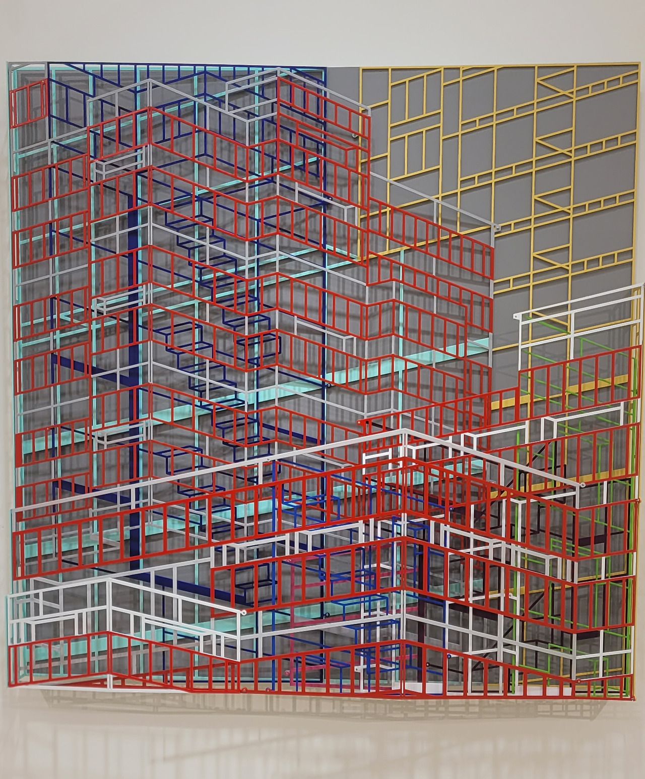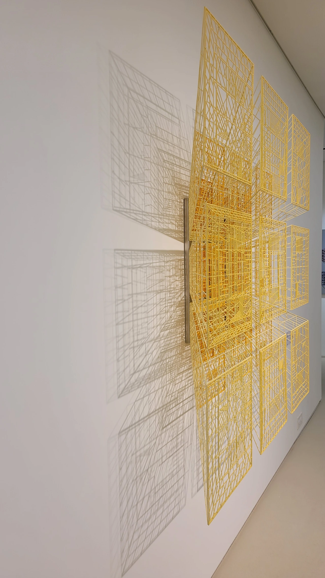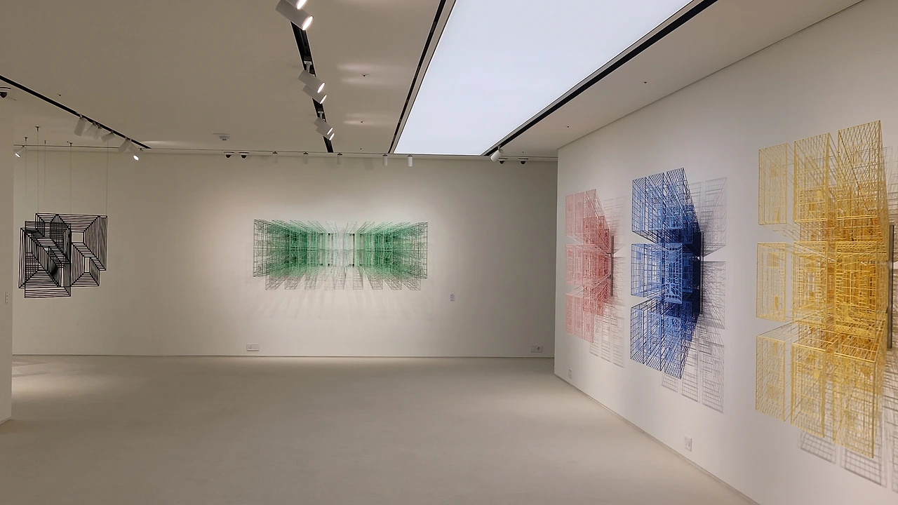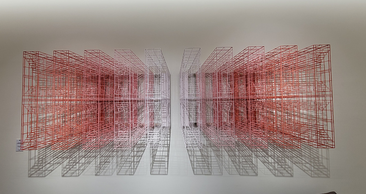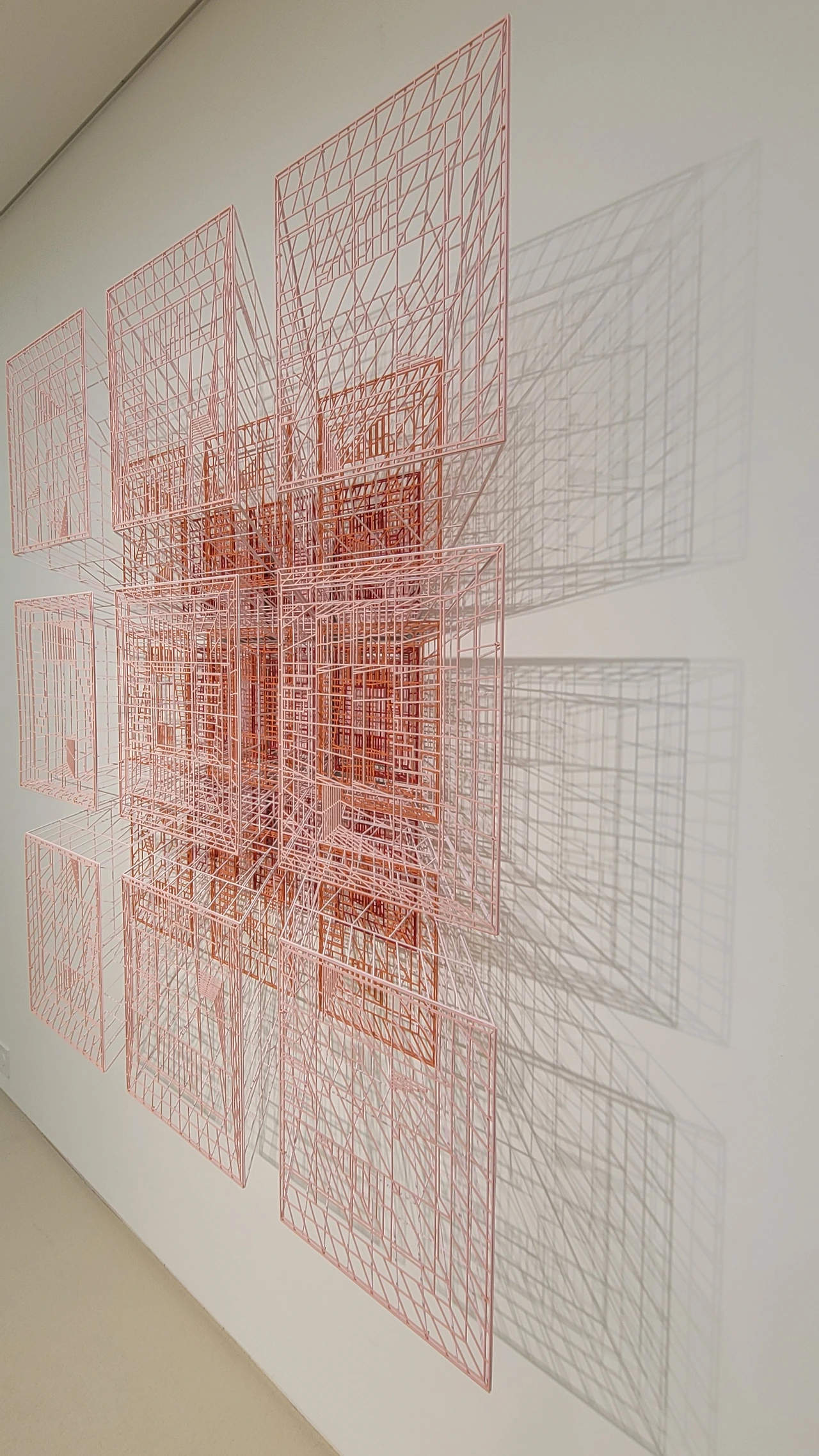 작가는 조소과를 나왔지만 작품의 기반은 건축학이고 구조 공학이었다. 정교하게 짜인 무수한 직선의 연결을 통해 3차원의 매우 복잡하지만 다른 한편으로 지극히 단순한 미묘한 구조물을 보여준다. 전반적으로 보면 입체감이 두드러져 그림자까지 대칭으로 보이는 작품은 시선을 끌기에 충분했다.