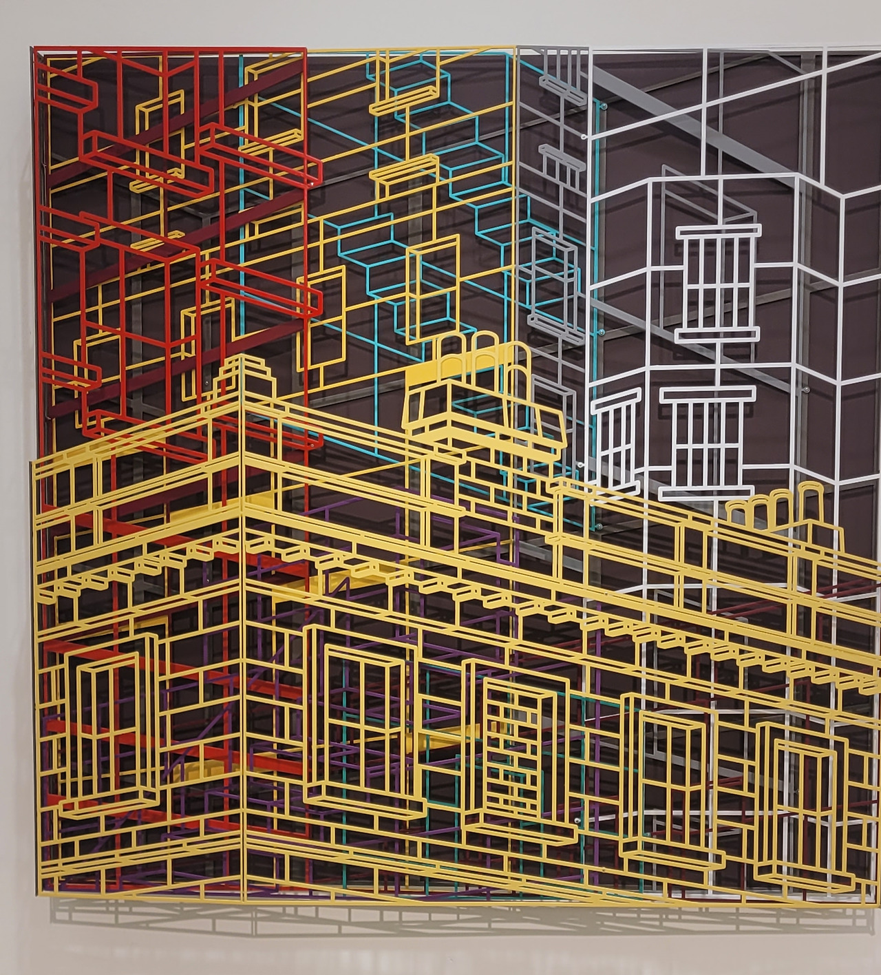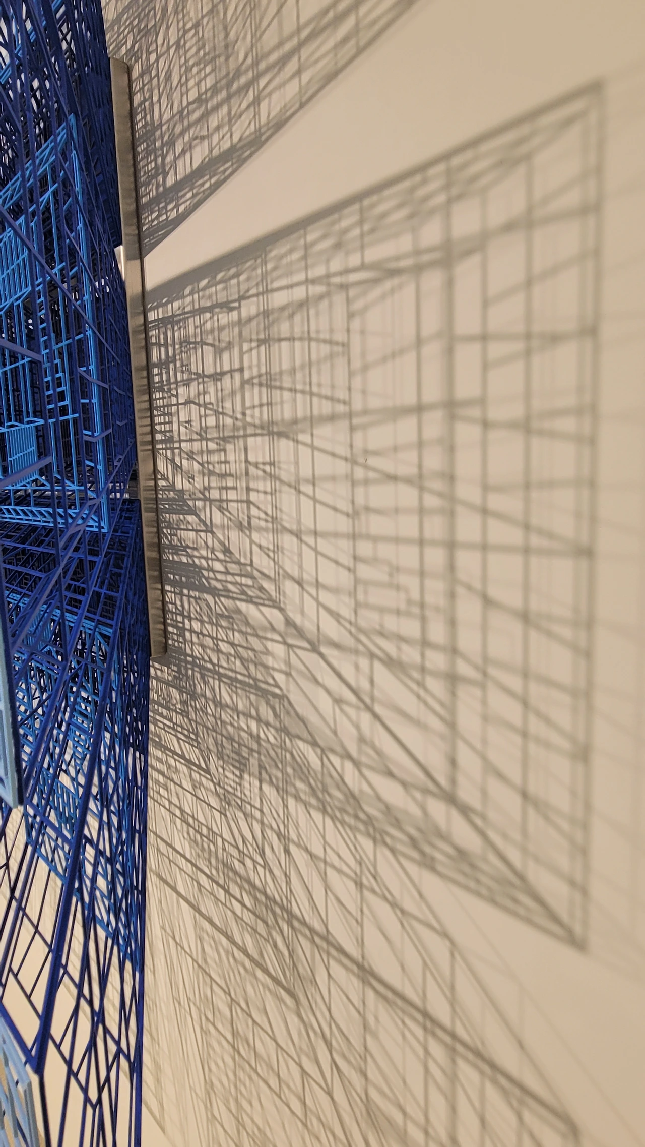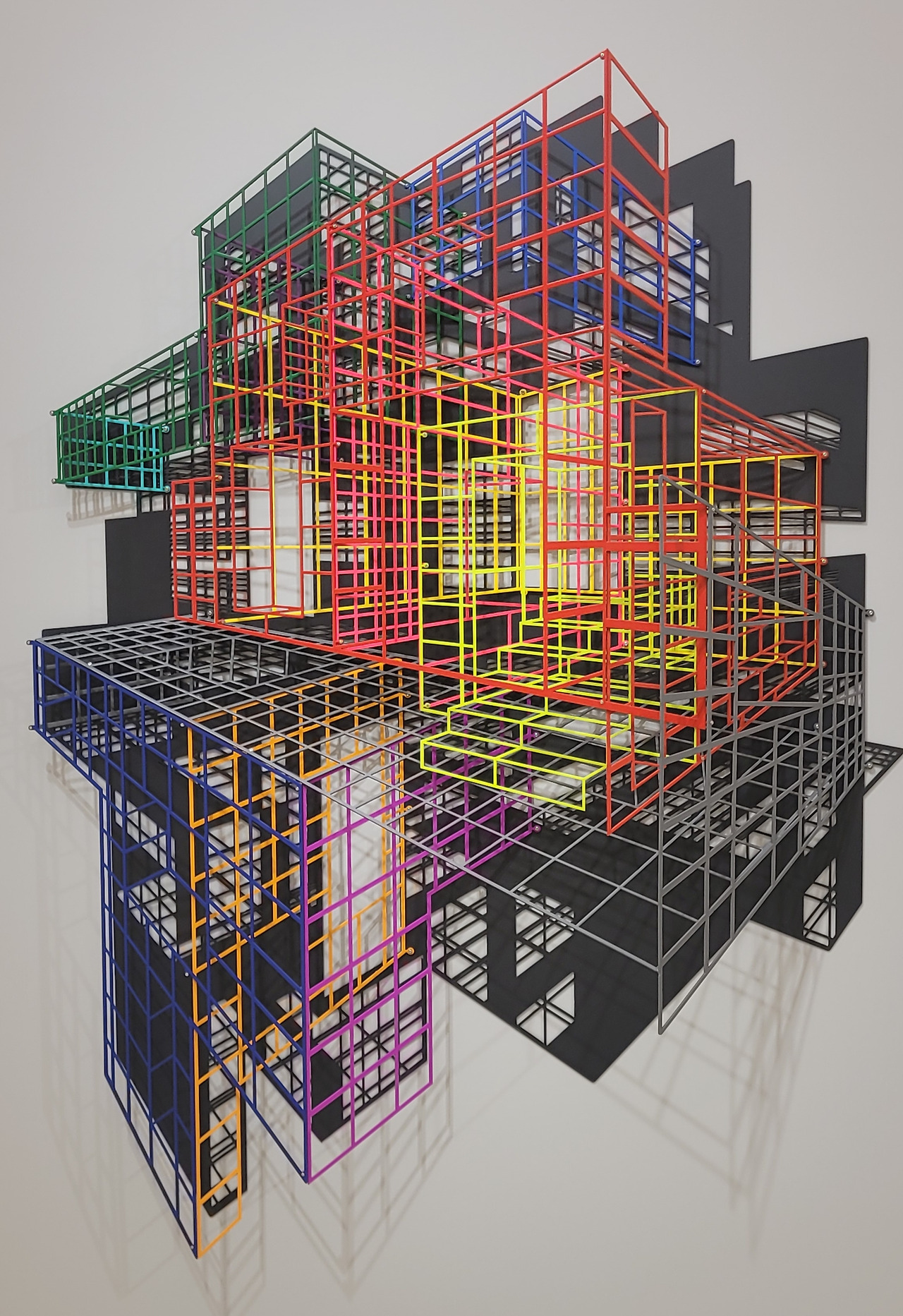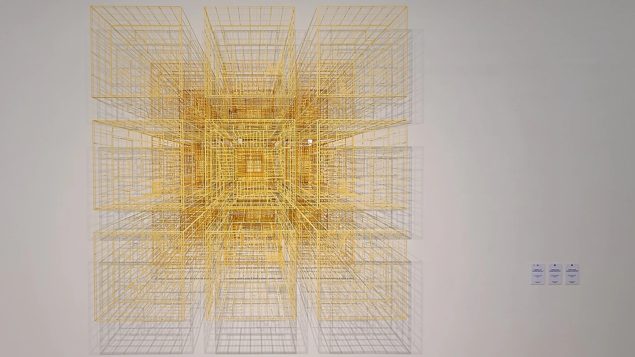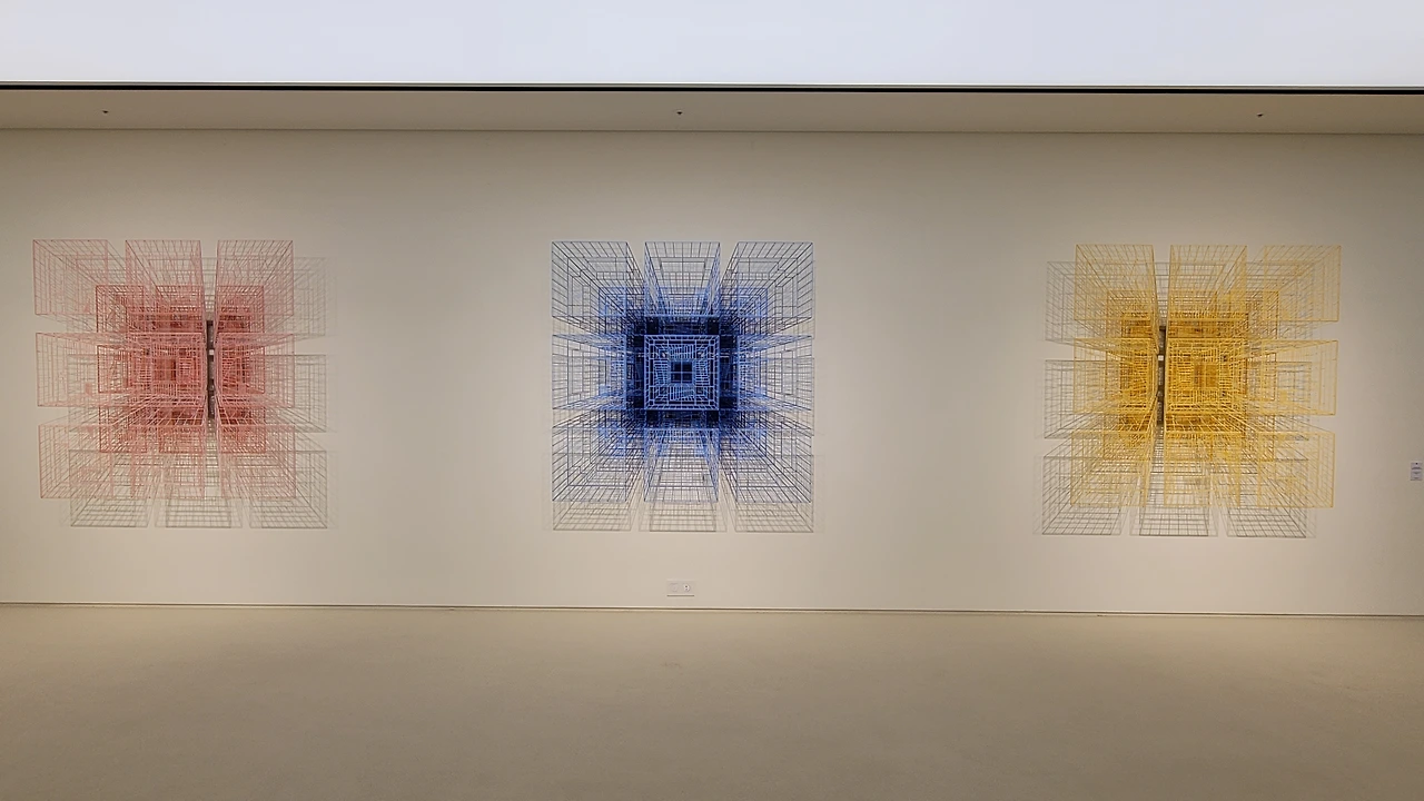 작가는 조소과를 나왔지만 작품의 기반은 건축학이고 구조 공학이었다. 정교하게 짜인 무수한 직선의 연결을 통해 3차원의 매우 복잡하지만 다른 한편으로 지극히 단순한 미묘한 구조물을 보여준다. 전반적으로 보면 입체감이 두드러져 그림자까지 대칭으로 보이는 작품은 시선을 끌기에 충분했다.