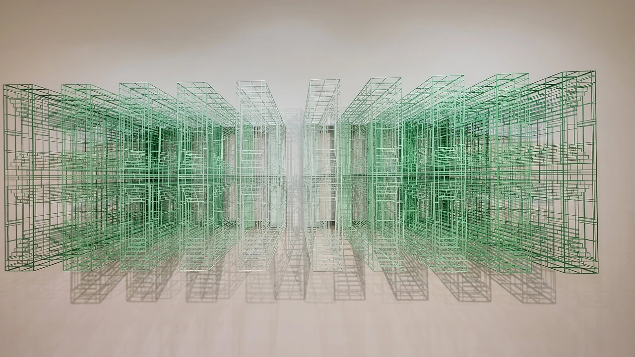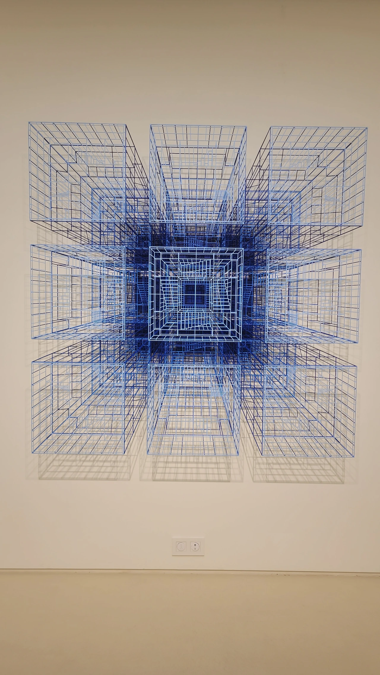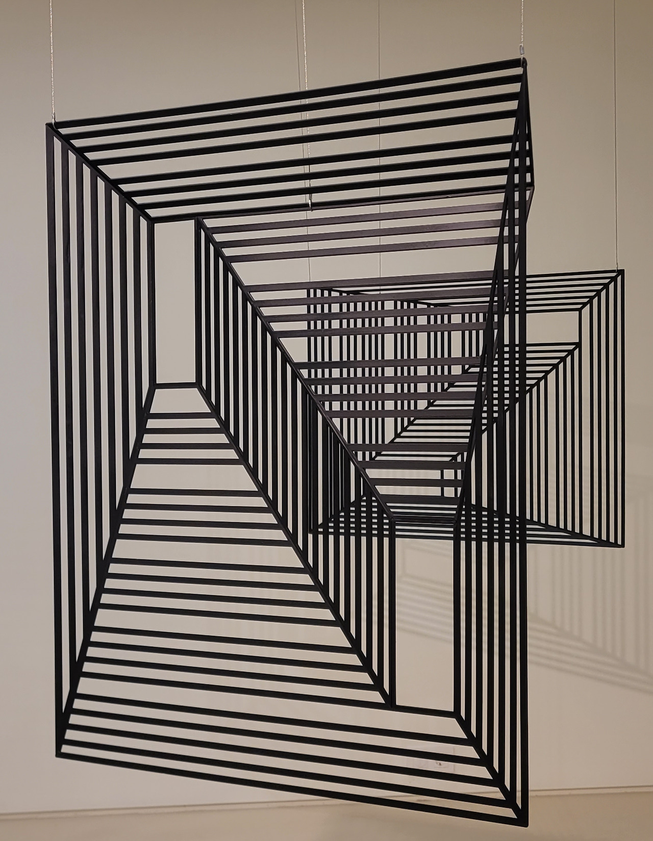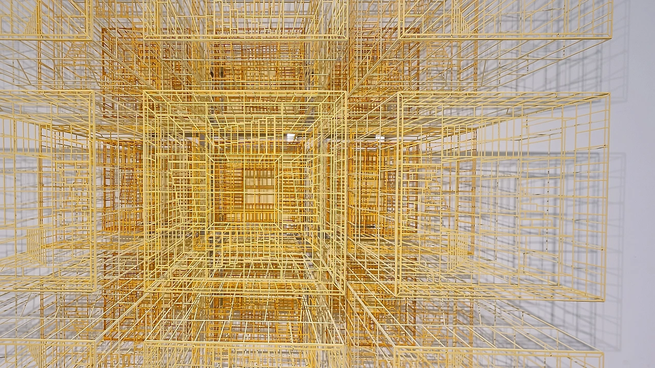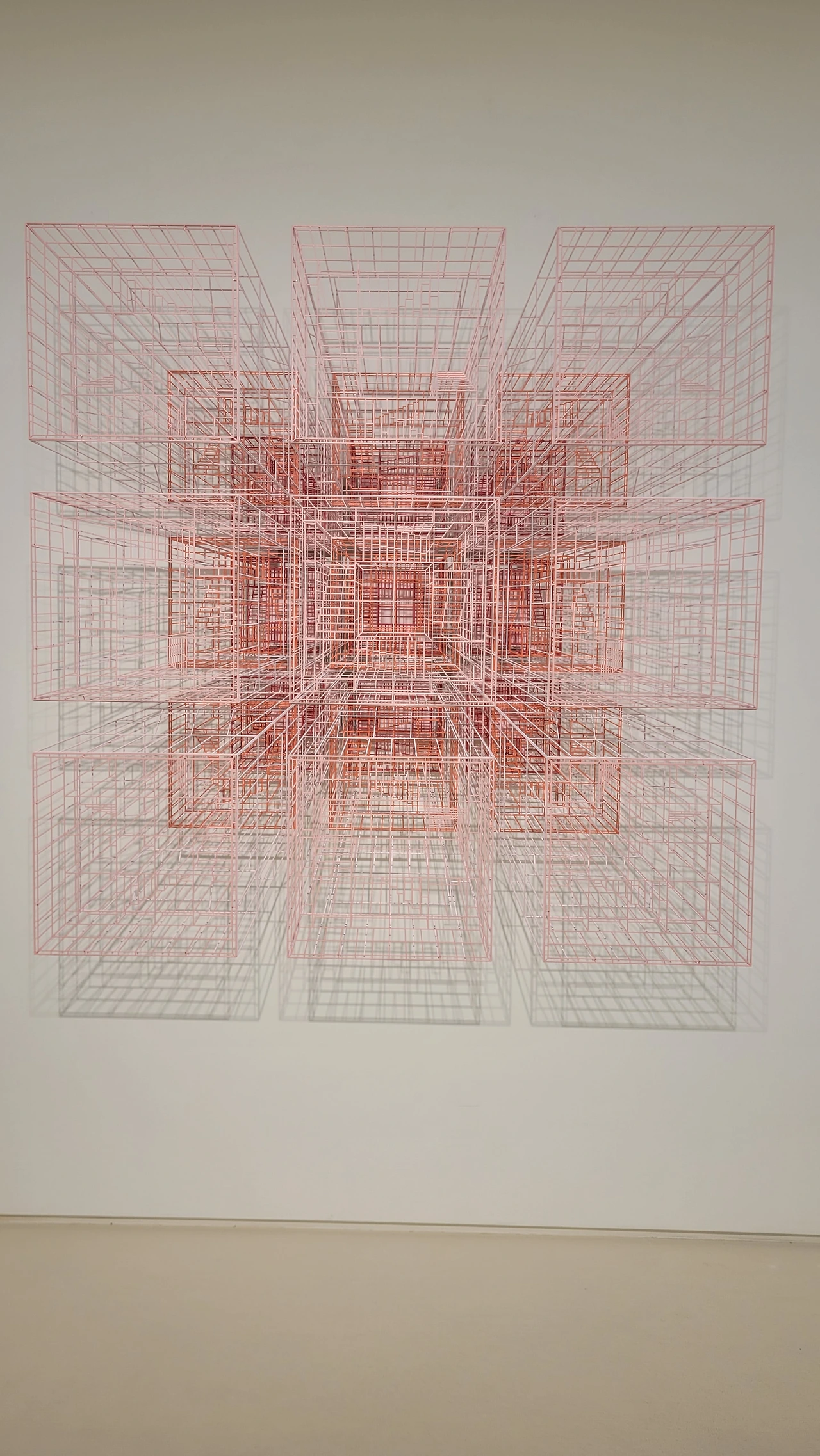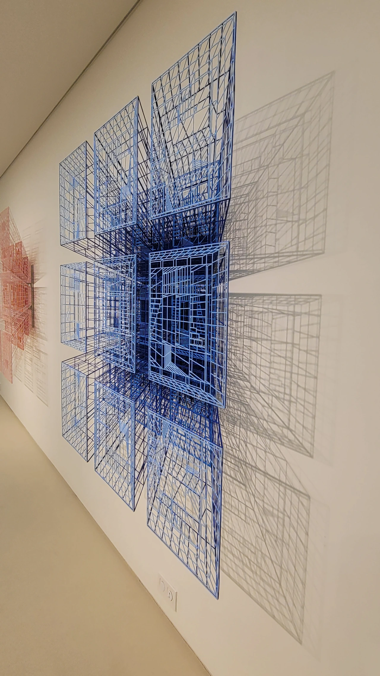 작가는 조소과를 나왔지만 작품의 기반은 건축학이고 구조 공학이었다. 정교하게 짜인 무수한 직선의 연결을 통해 3차원의 매우 복잡하지만 다른 한편으로 지극히 단순한 미묘한 구조물을 보여준다. 전반적으로 보면 입체감이 두드러져 그림자까지 대칭으로 보이는 작품은 시선을 끌기에 충분했다.