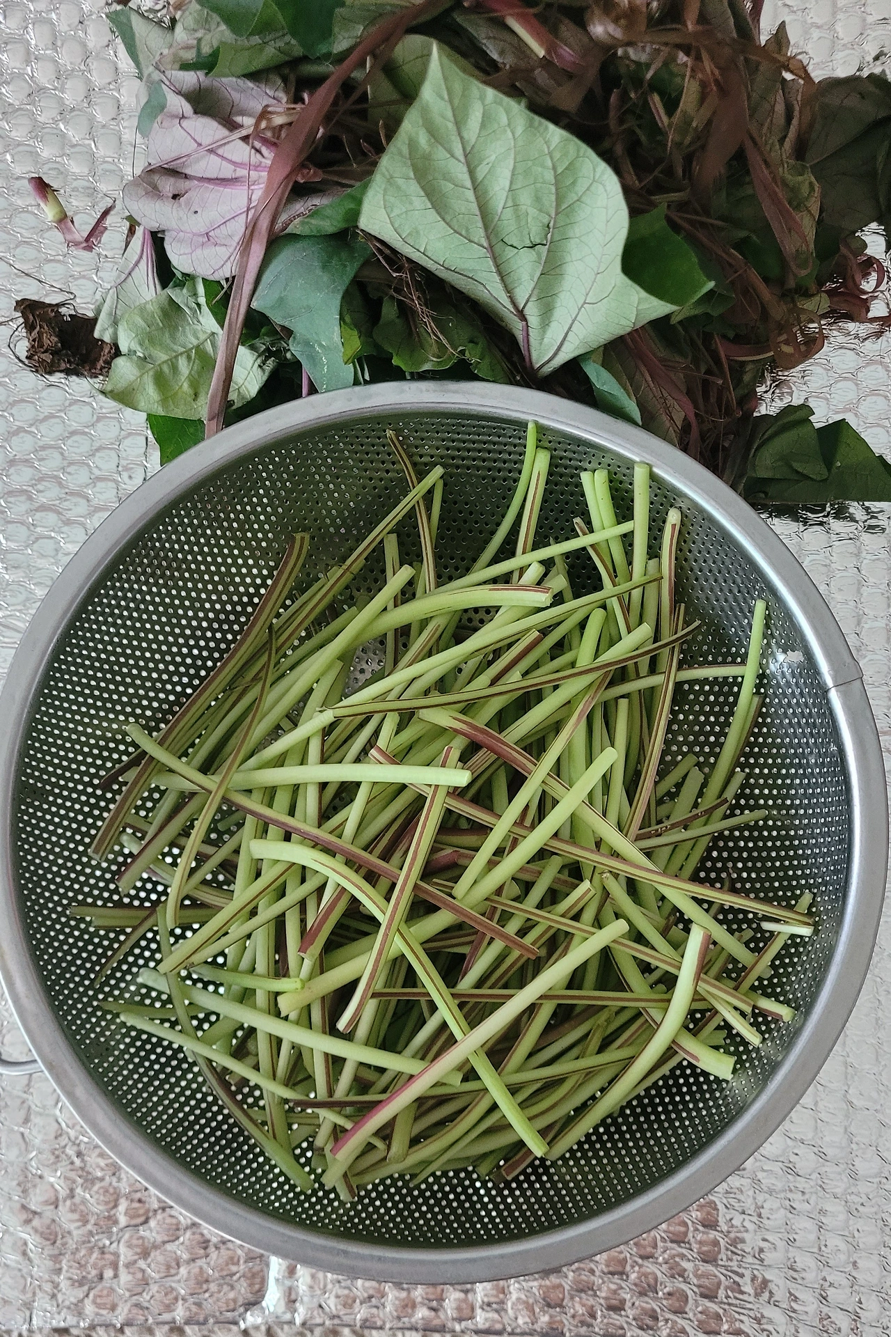 손질한 고구마 순