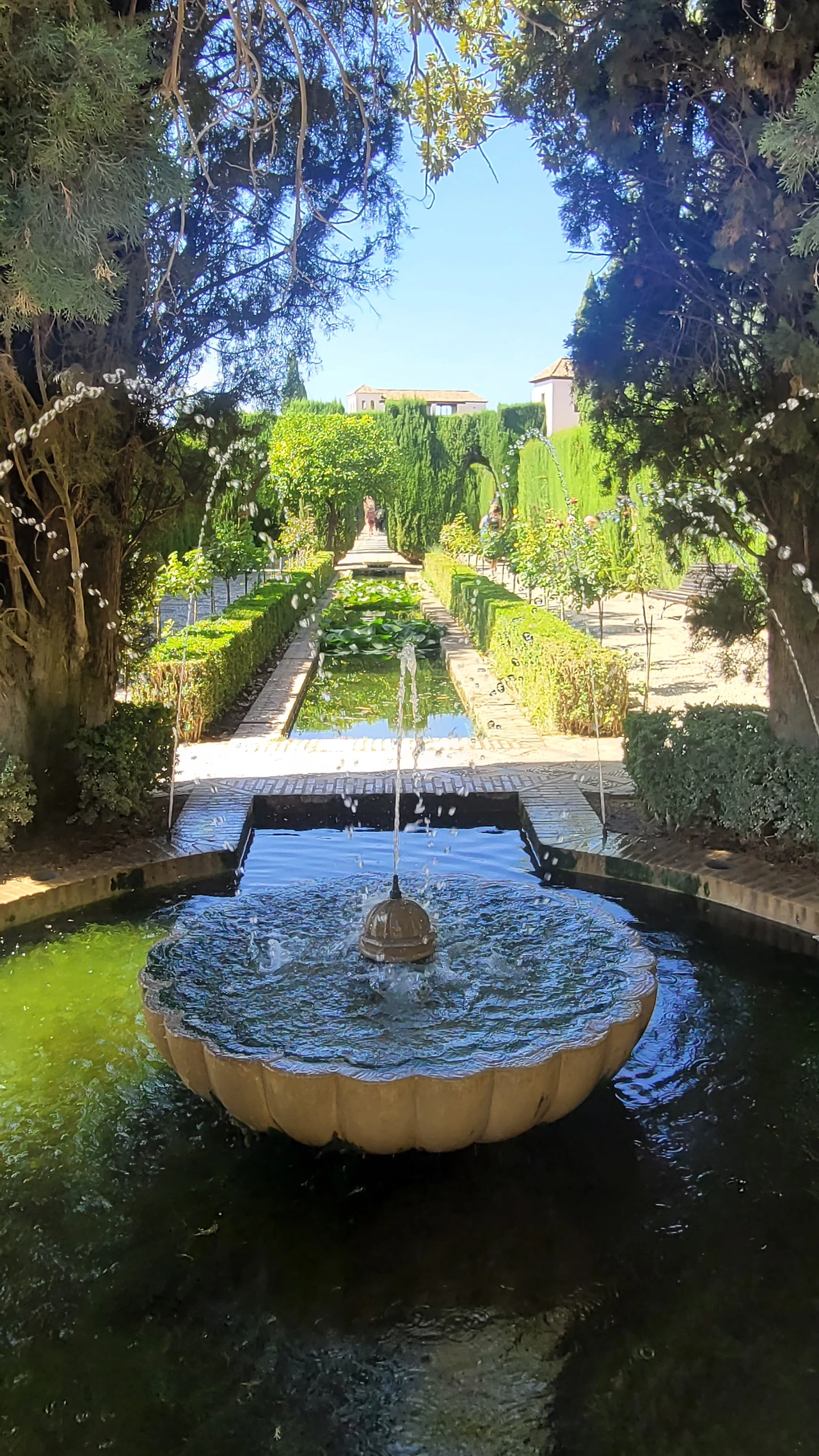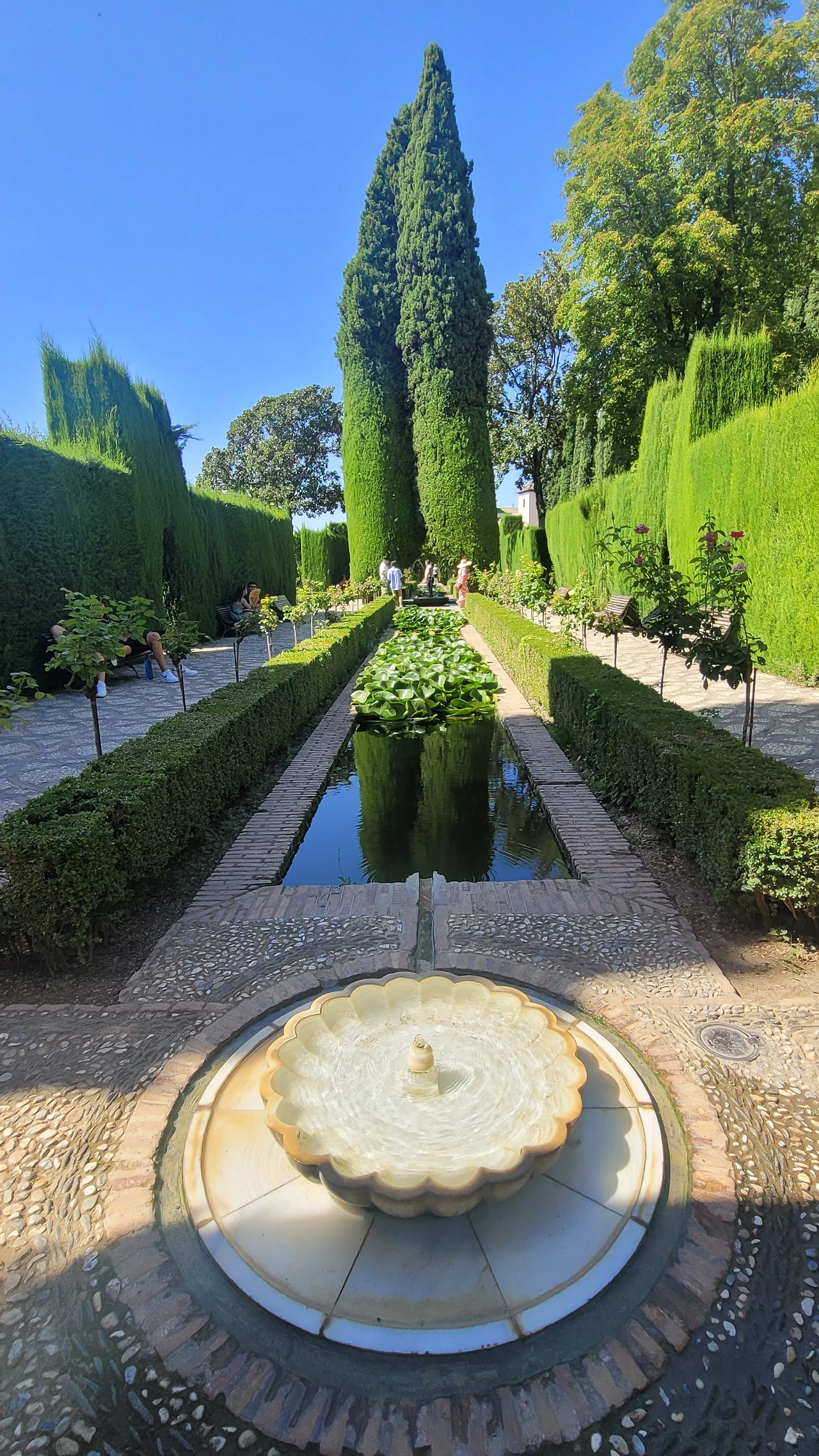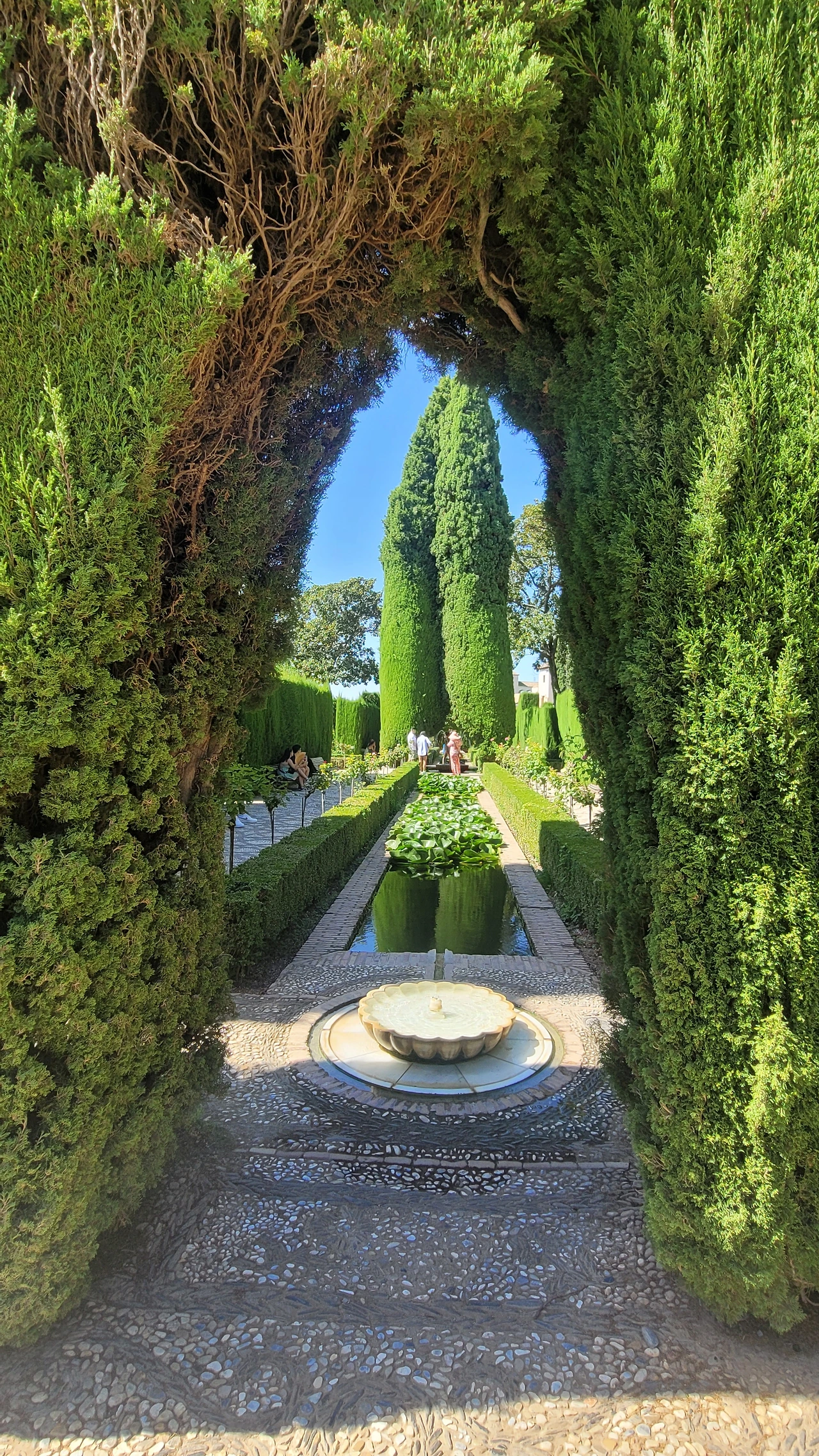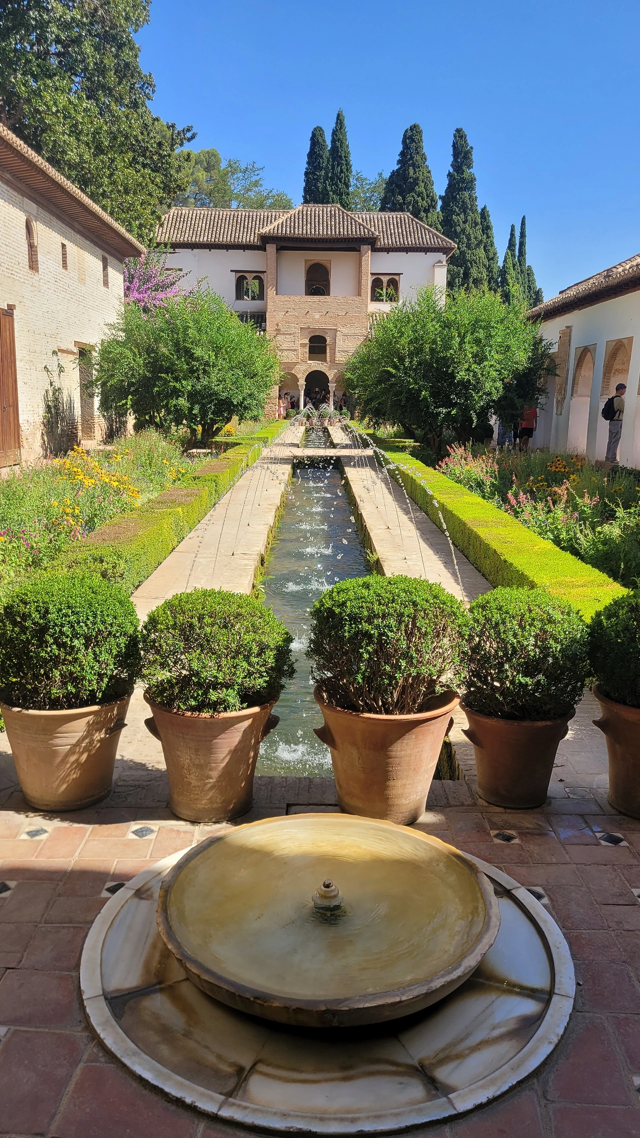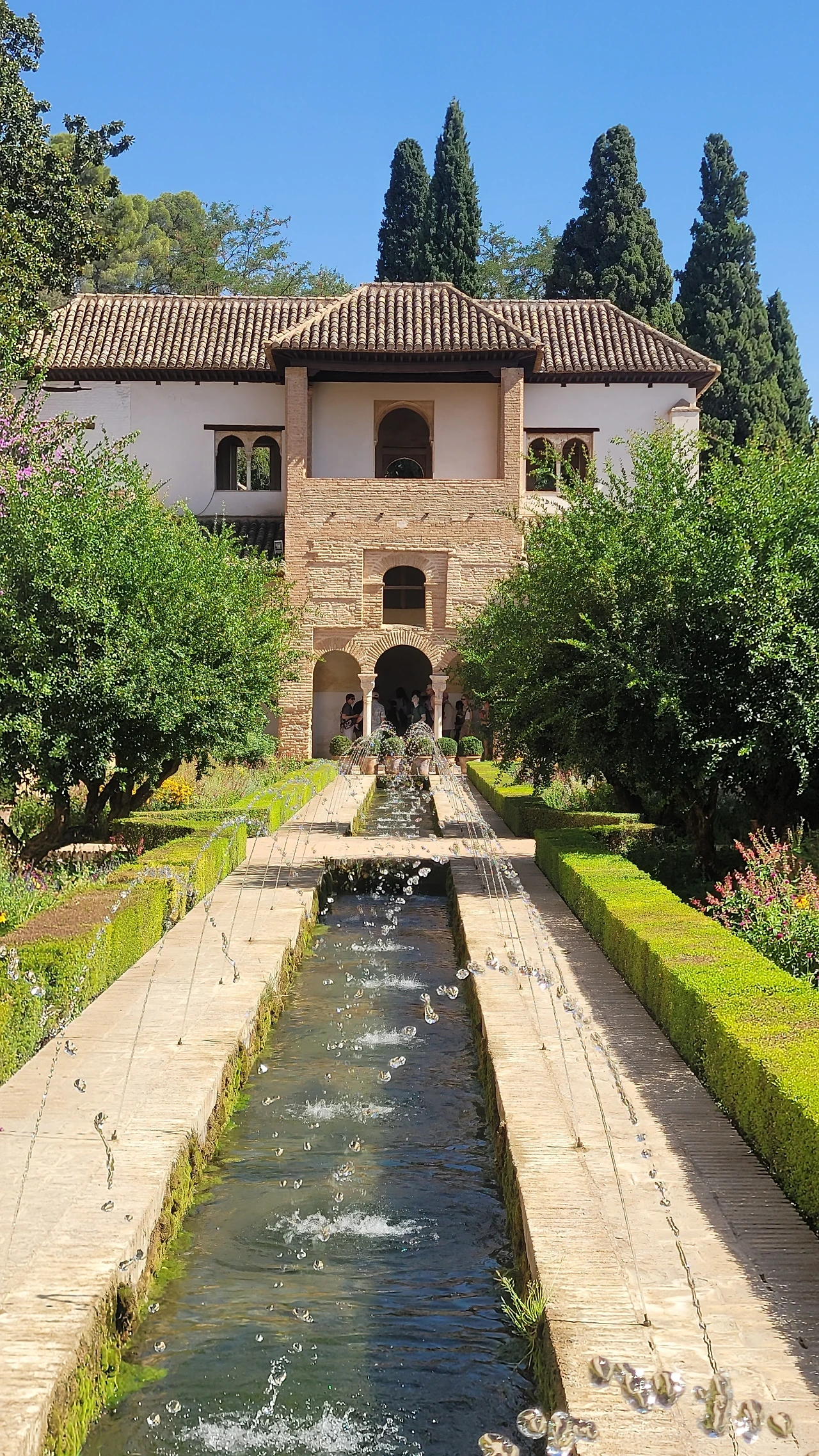 마지막 돌아본 헤네랄리페는 나무와 꽃으로 조성된 정원이다. 사이프러스 나무를 위시하여 꽃과 물을 뿜어내는 분수와 물길로 정원의 다른 품격을 가졌다.