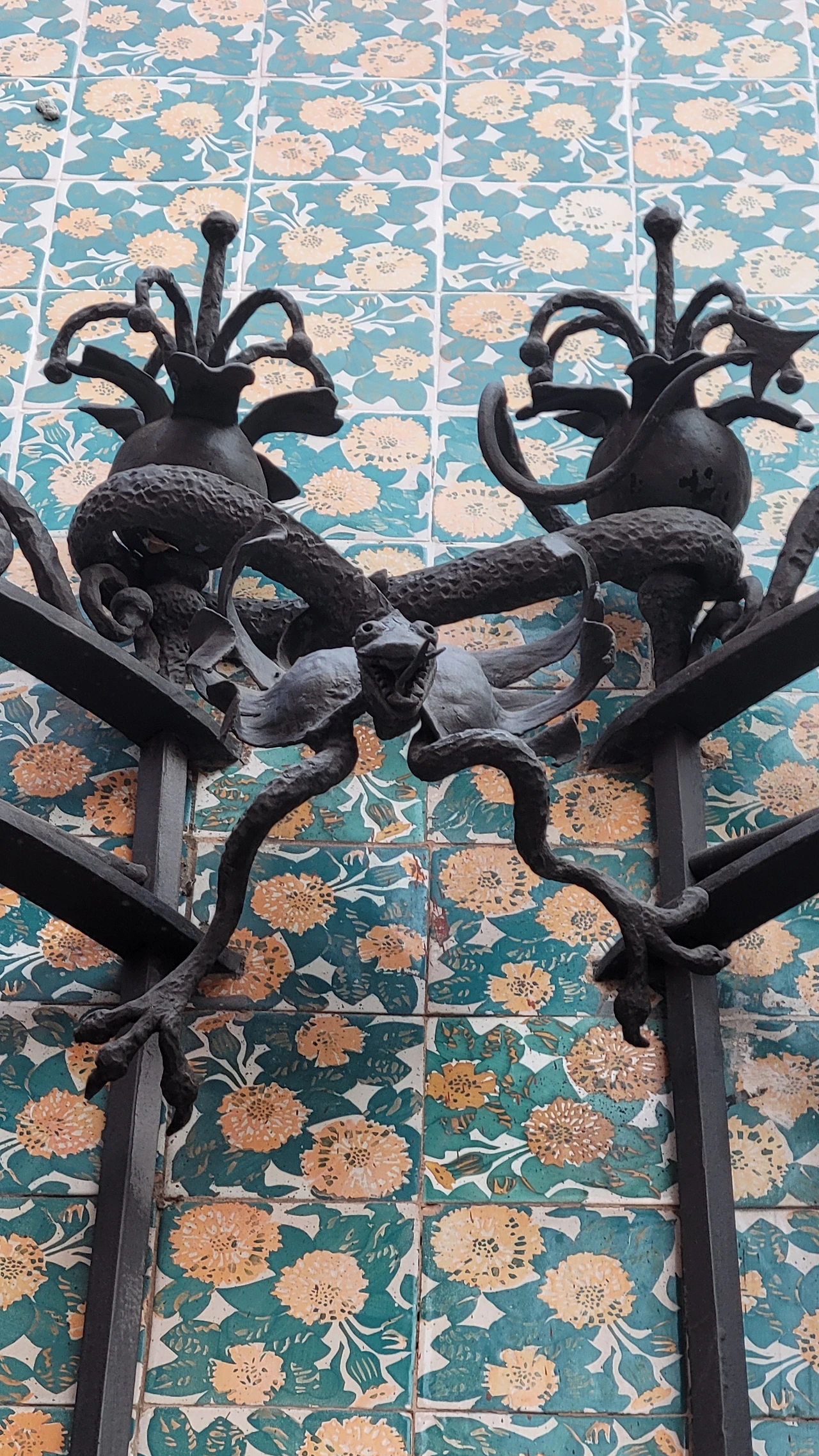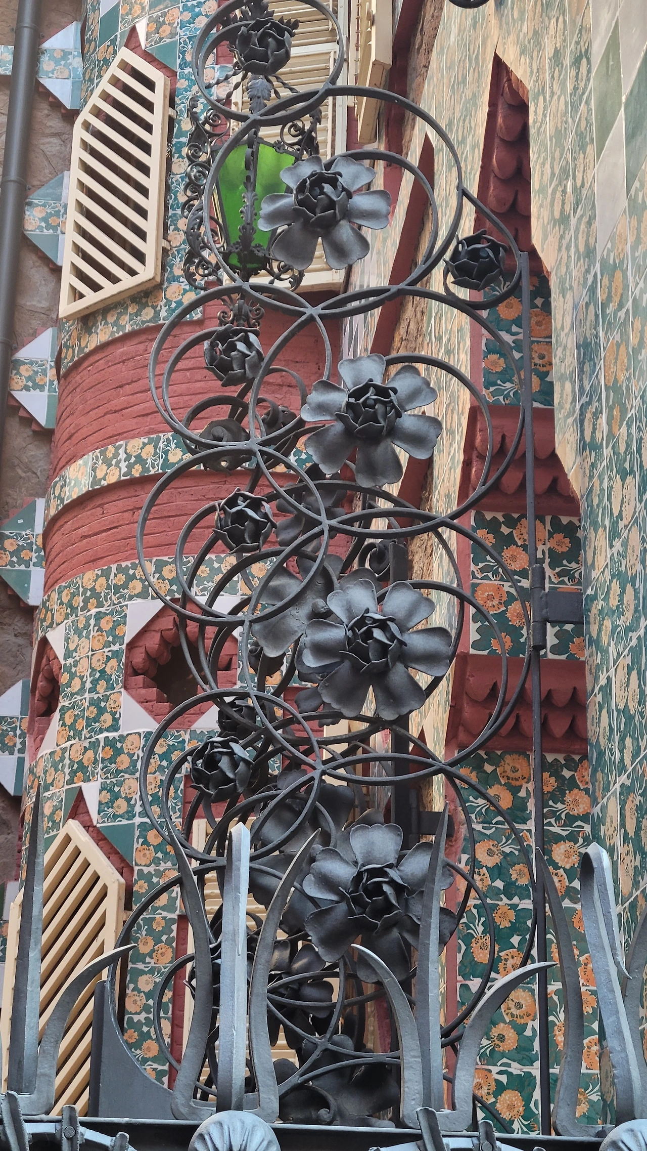 가우디 집안은 대대로 대장장이었다. 그런 영향으로 가우디는 철을 다루는 법을 배웠고 그 결과 엿가락 다루듯 뛰어난 기술로 철로 된 장식을 건축에 다양하게 활용했다. 이 건물에서도 철제 조형물들이 건물의 외관을 다채롭게 꾸미고 있는데, 장식 하나하나가 단순한 장식이 아닌 뛰어난 조형 미술품이다. 아라베스크 문양처럼 식물의 형태에서 모티브를 가져온 디자인들이 아로새겨 있어 건물 전체에 자연적인 느낌이 가득하다.