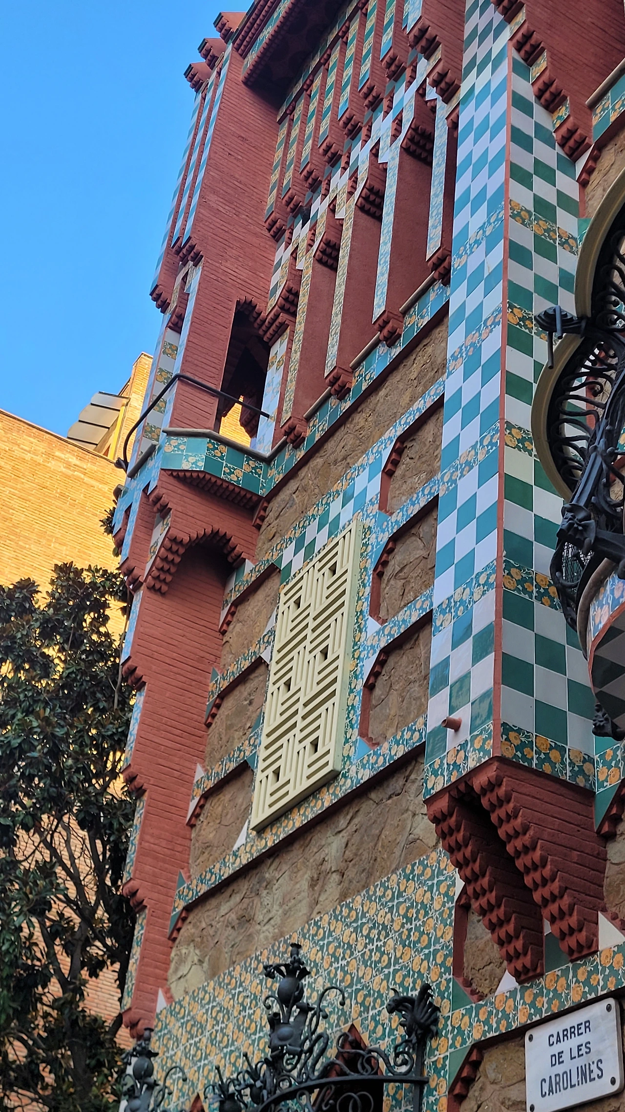 첫 번 방문지는 카사 비센스였다. 가우디가 최초로 건축한 개인 저택이다. 척 봐서도 범상하지 않은 눈에 띄는 독특함이 엿보인다.