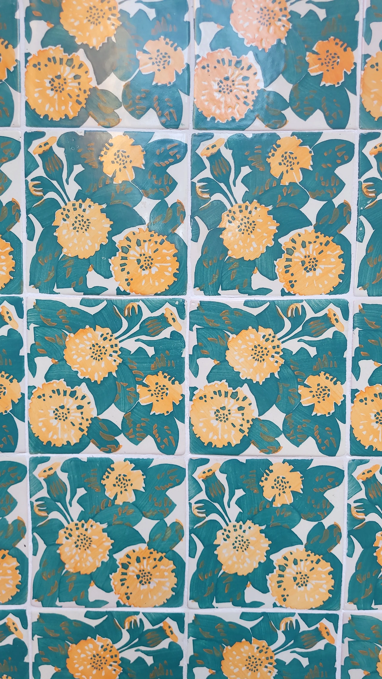 건물의 내외벽에는 많은 타일이 사용되었다. 건축주가 타일 관련 사업을 해서 재고로 있던 타일을 아낌없이 사용하여 지었다. 외관이 마치 실내 벽지처럼 타일은 미적인 아름다움만 아니라 건물의 품격을 높이는 데 일조한 것으로 보인다.