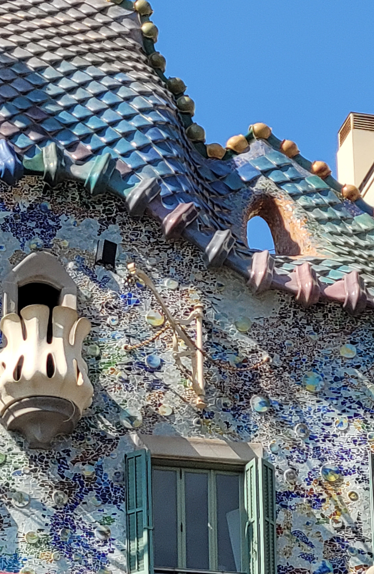 가우디는 누구도 생각할 수 없는 기발한 상상력과 그것을 건축에 그대로 녹여내는 실천력도 참으로 놀랍다. 세상에 그 누가 사람의 뼈와 해골을 집의 외벽 장식으로 사용할 생각을 할 수 있다는 말인가?