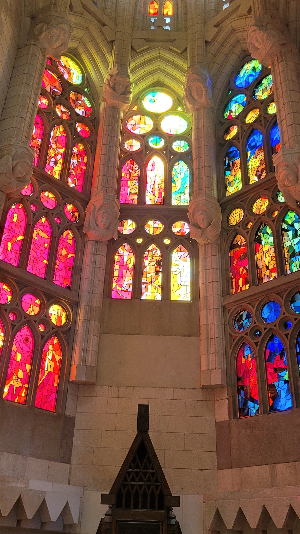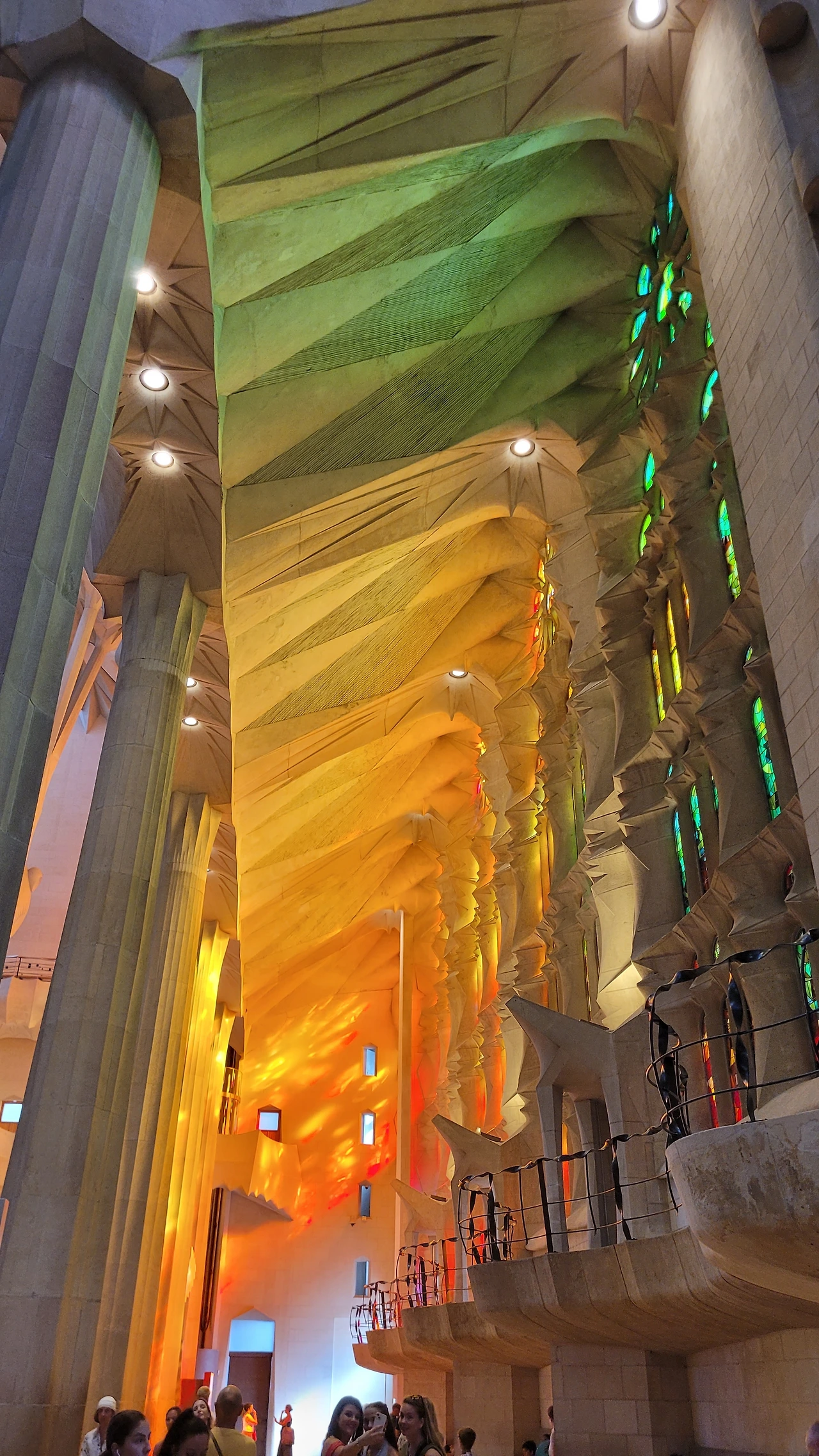 사그라다 파밀리아 성당 방문의 하이라이트는 당연 성당의 내부의 장엄한 광경이다. 성스러운 분위기 속에서 하나님의 은혜처럼 쏟아져 내리는 황홀한 빛의 향연은 사람들을 숨 막히게 만든다. 입이 다물어지지 않는 극적인 풍경은 신앙의 유무를 떠나 누구나 전율하게 하게 했다. 거기엔 그 누구도 예외가 있을 수 없다. 가우디가 빚어 놓은 마법에 경외감을 갖지 않는다는 것은 절대 있을 수 없는 일이다.