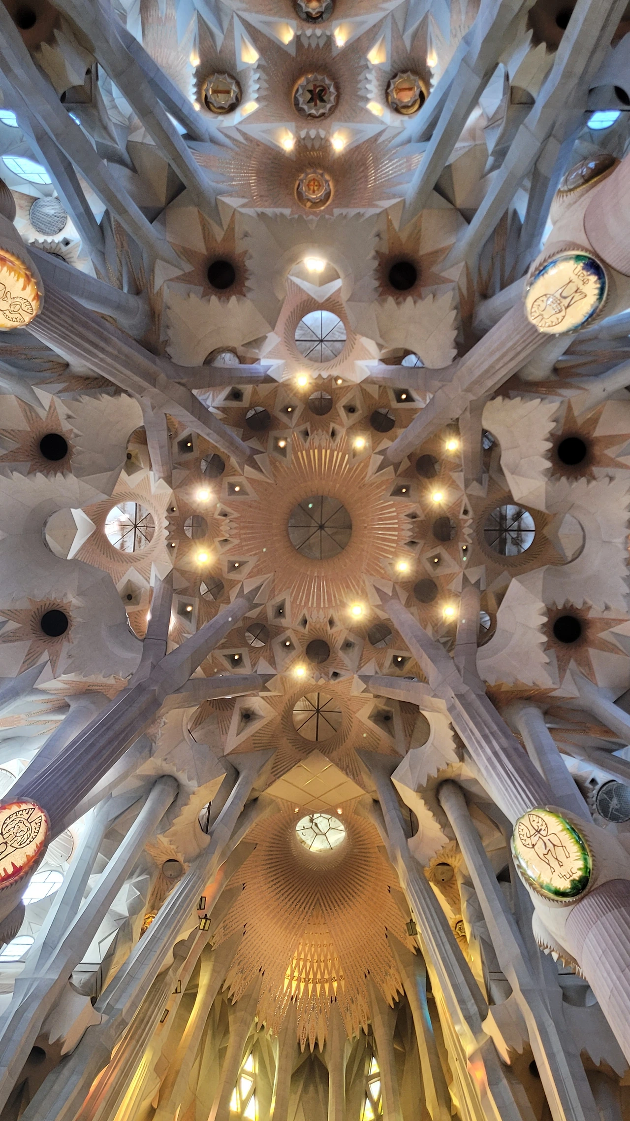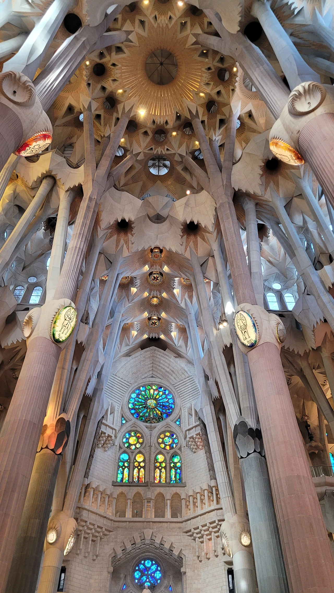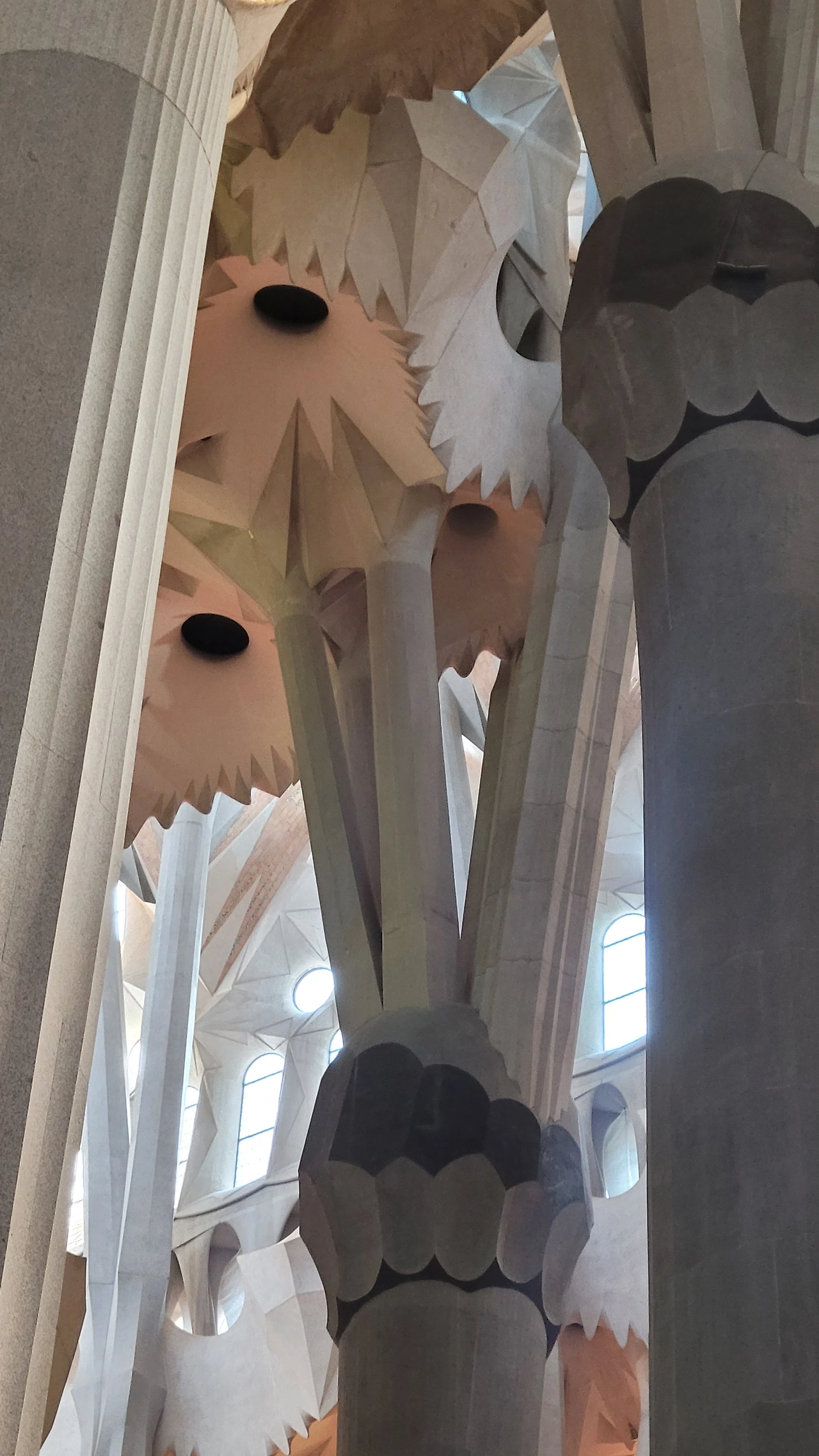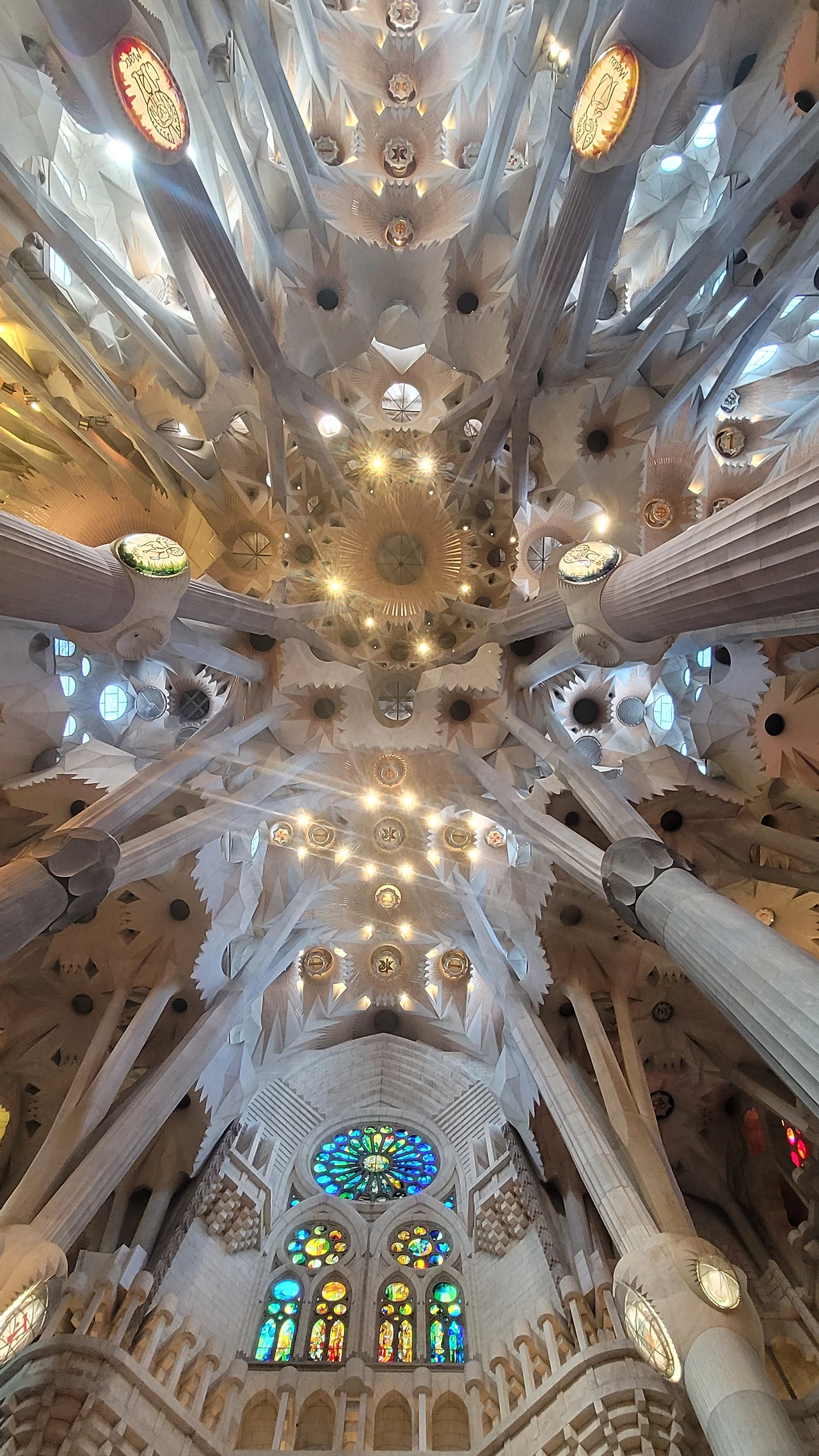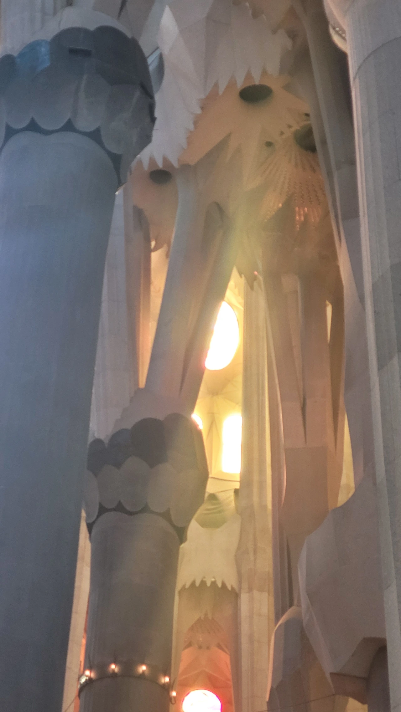 정신을 차리고 돌아다보면 시원하게 뻗은 대리석 기둥들이 눈에 들어온다. 세계 최고 높이의 성당답게 아득한 천정을 받치고 있는 기둥들은 나무의 형상으로 쭉 뻗어서 가지를 펼치고 서서 하늘을 받치고 있다. 이런 나무들이 줄지어 기둥의 숲을 이루는 사이로 천정은 꽃처럼 활짝 펼쳐진 문양들이 신비로움을 더한다.