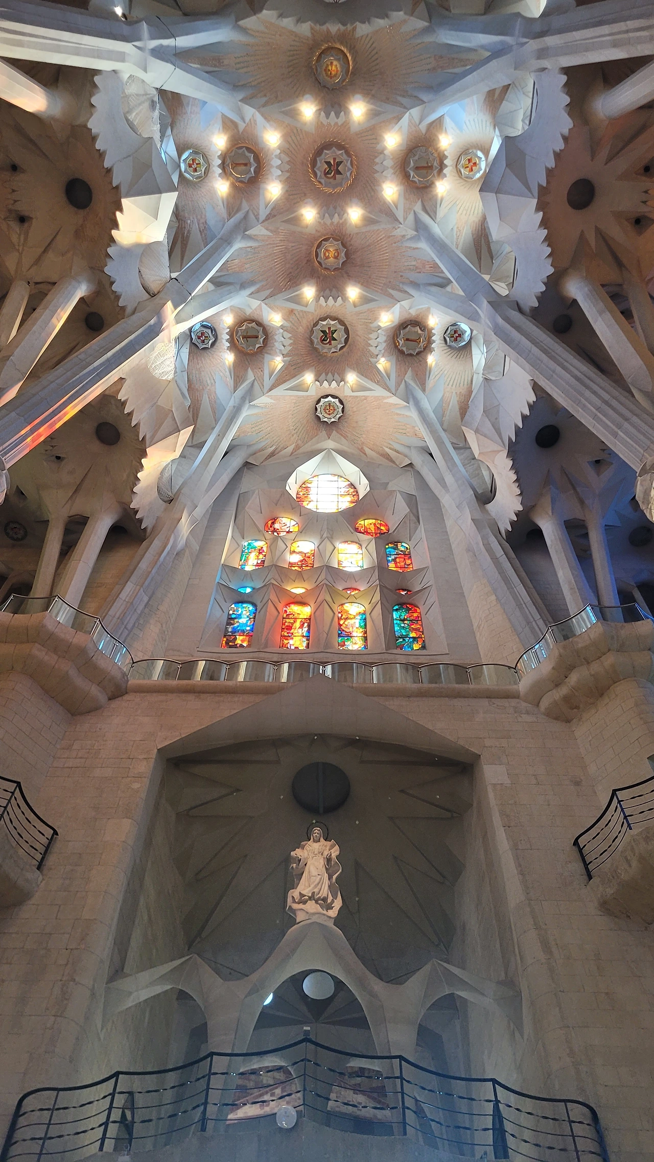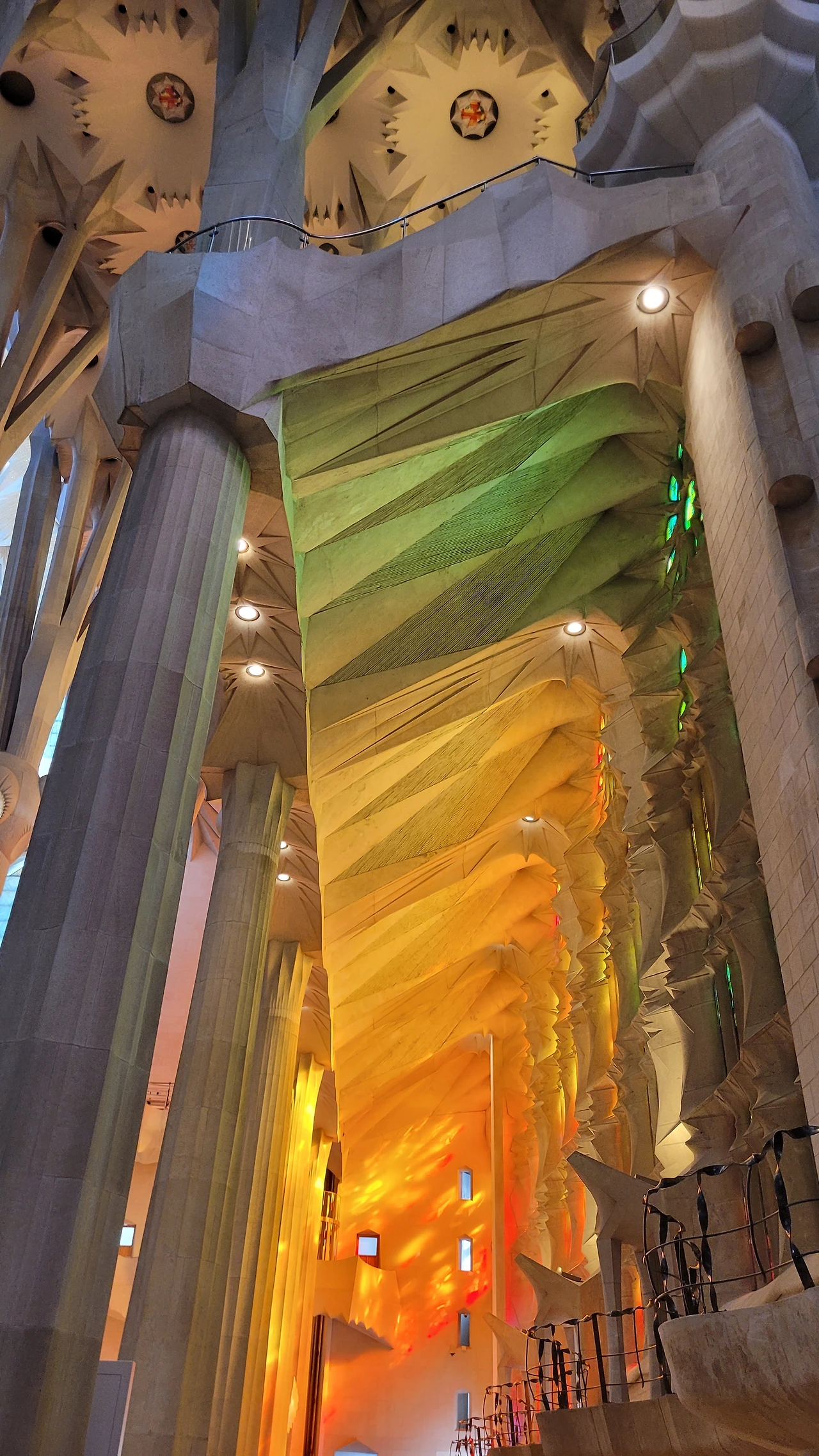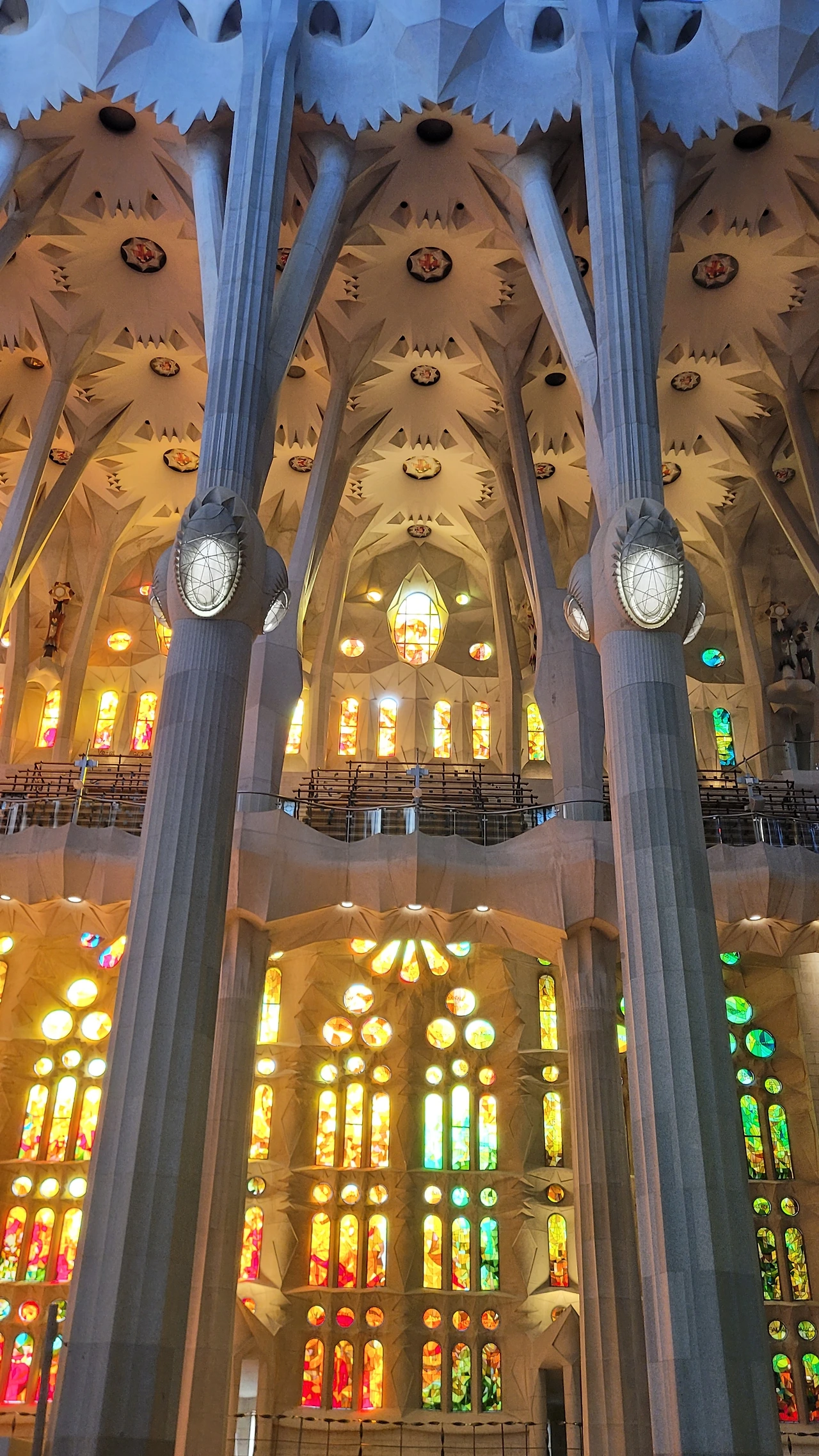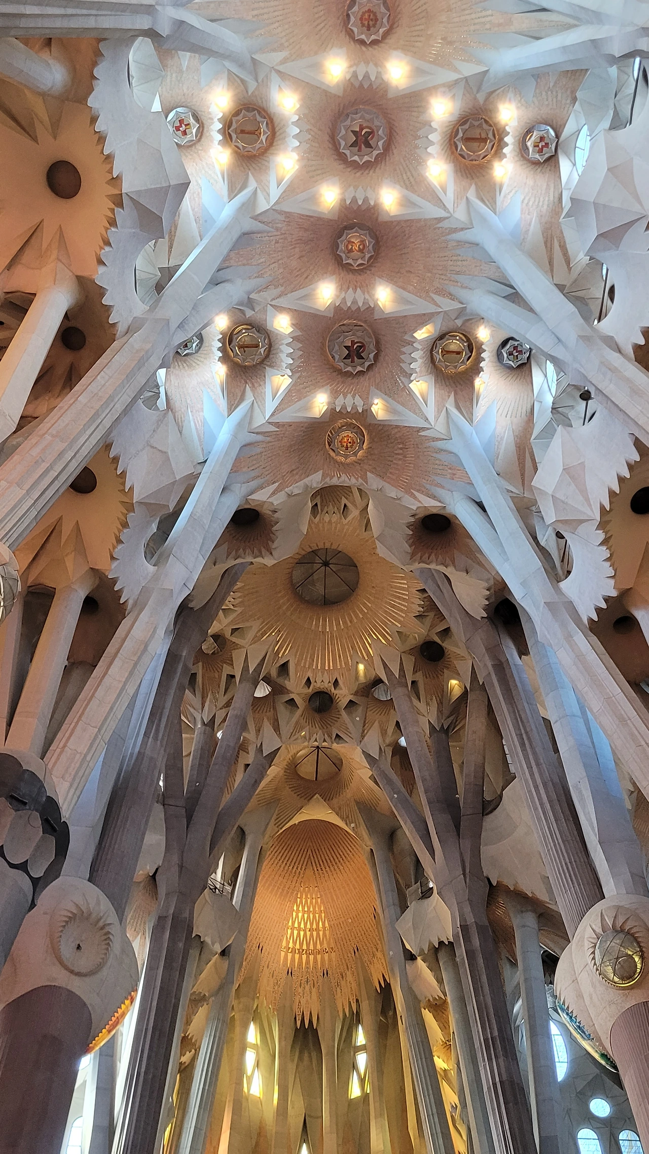 정신을 차리고 돌아다보면 시원하게 뻗은 대리석 기둥들이 눈에 들어온다. 세계 최고 높이의 성당답게 아득한 천정을 받치고 있는 기둥들은 나무의 형상으로 쭉 뻗어서 가지를 펼치고 서서 하늘을 받치고 있다. 이런 나무들이 줄지어 기둥의 숲을 이루는 사이로 천정은 꽃처럼 활짝 펼쳐진 문양들이 신비로움을 더한다.