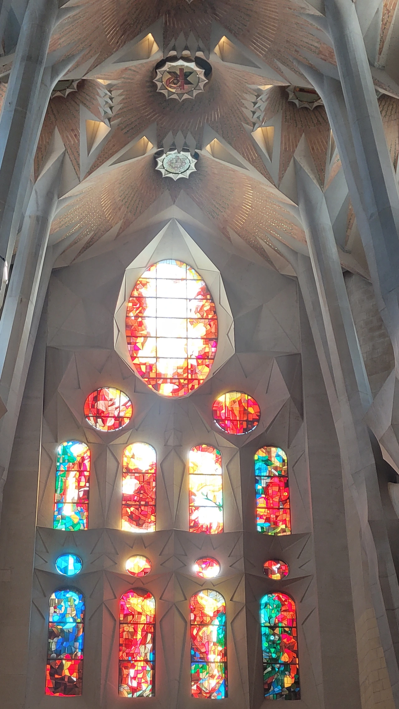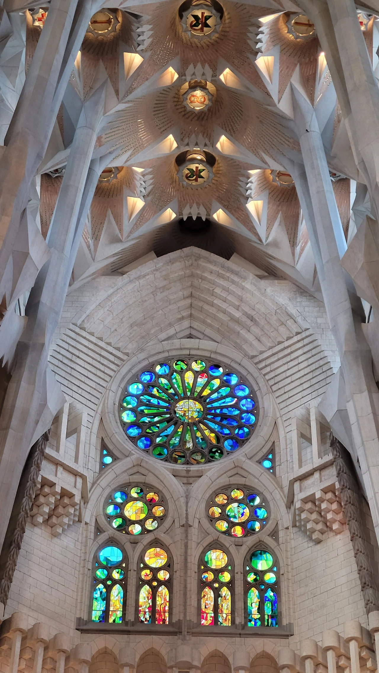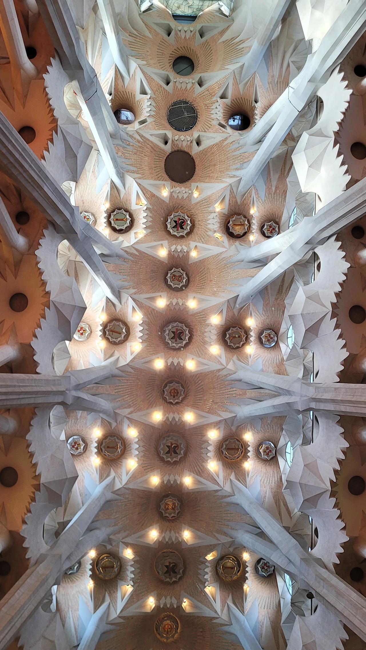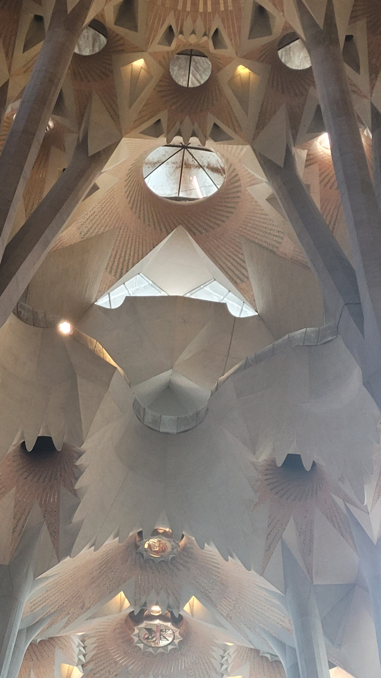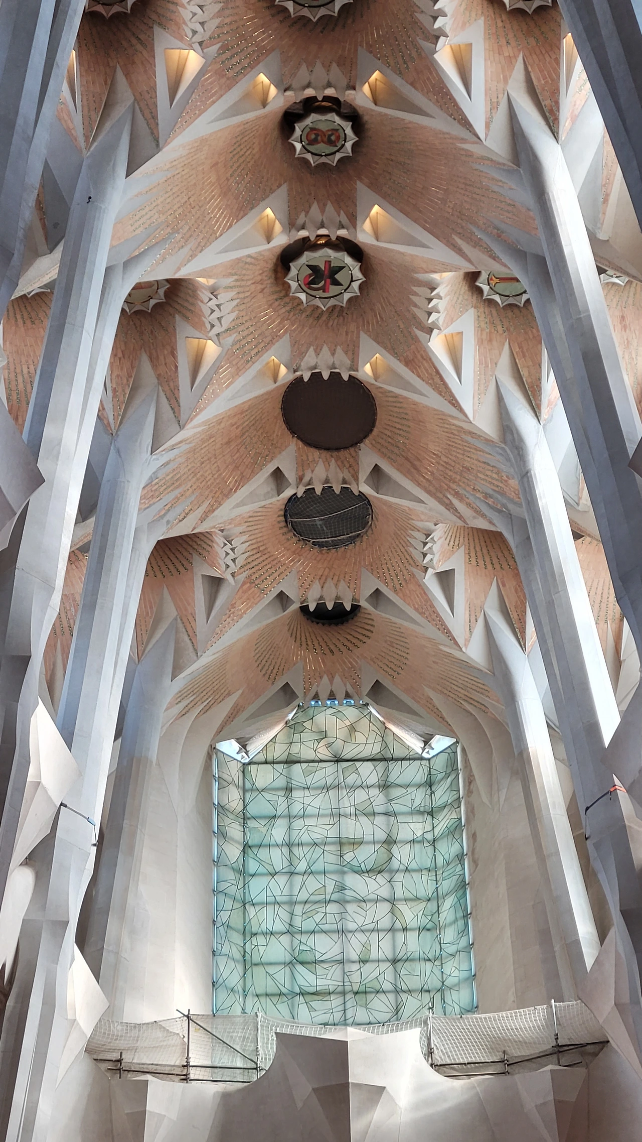 정신을 차리고 돌아다보면 시원하게 뻗은 대리석 기둥들이 눈에 들어온다. 세계 최고 높이의 성당답게 아득한 천정을 받치고 있는 기둥들은 나무의 형상으로 쭉 뻗어서 가지를 펼치고 서서 하늘을 받치고 있다. 이런 나무들이 줄지어 기둥의 숲을 이루는 사이로 천정은 꽃처럼 활짝 펼쳐진 문양들이 신비로움을 더한다.