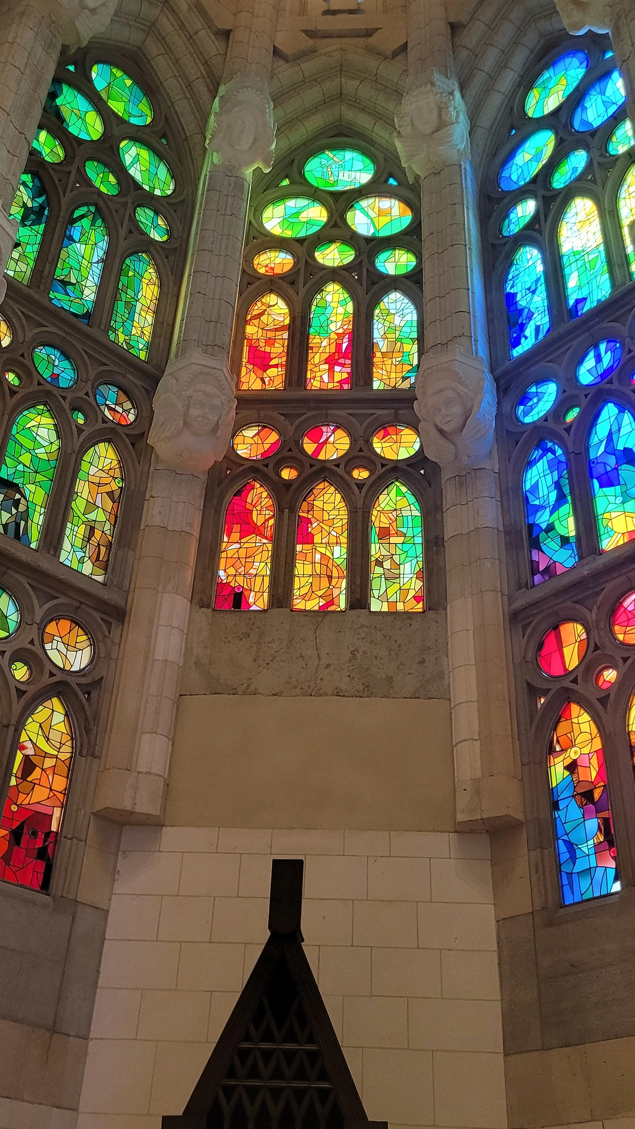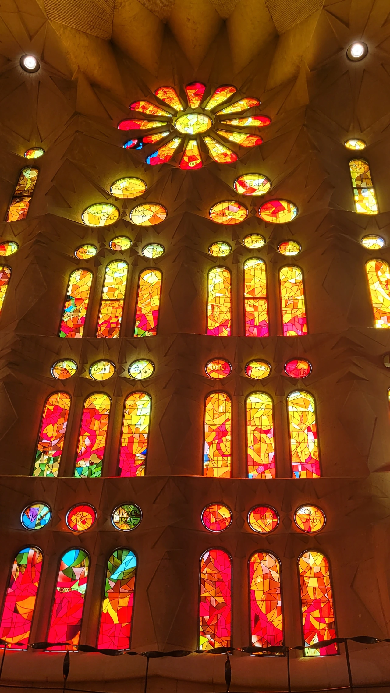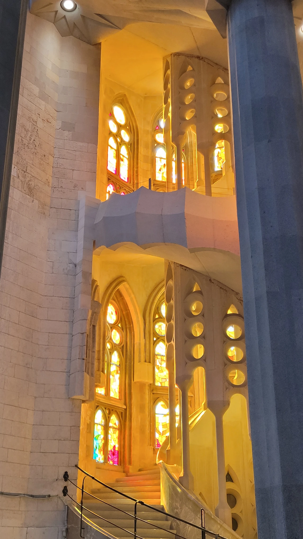 벽면의 스테인드 글라스는 동쪽은 푸른색으로 희망과 탄생을 상징하고 서쪽은 붉은색으로 죽음과 순교를 의미한다고 한다. 마침 방문한 날은 화창했고 오후에 태양 빛이 가득한 시간이어서 스테인드 글라스가 빚는 눈부신 광경을 온몸으로 느낄 수 있었다. 그것은 황홀함 그 자체였다. 형언할 수 없는 부드러운 빛의 물결이 이어지는 회랑이 주는 감격은 그 무엇으로도 대신할 수 없는 것이었다.