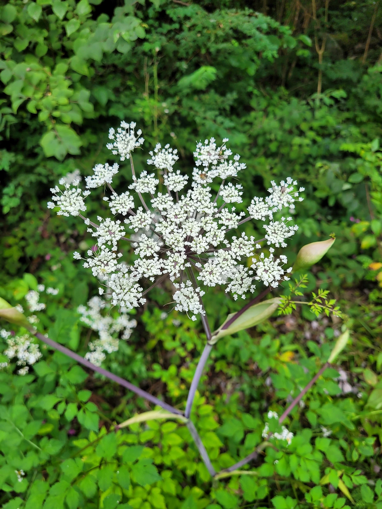 몸은 빨래처럼 축 늘어져 흐물거렸다. 너무 더워서 계곡물에 옷을 입은 채 뛰어들었다. 시들은 채소가 찬물에 소생하는 기분이었다. 아내도 세수를 하며 더위를 식혔다. 올라온 길이 꽤 되었기에 내려가는 길도 한참이었다. 장화를 신어서 발이 불편했다. 임도를 맨발로 걷다가 자갈들이 많아 다시 장화를 신고 힘들게 걸었다. 걷는 도중에 야생화들이 우리를 반겼다. 고마리의 앙증맞은 꽃과 귀여운 산층층이, 우산같이 우아하게 핀 궁궁이, 취나물 꽃 그리고 물봉선이 반겨주는 길, 몸은 힘들어도 마음은 뿌듯한 귀갓길이다. 우리가 올랐던 봉우리가 까마득히 보인다. 아내가 기진맥진하여 앞으로 버섯이야기는 절대 꺼내지 말라는 타박을 들으며 차에 오른다. 시원하고 안락한 자리에 앉으니 살 것 같다. '또 와야지' 아내 모르게 다짐을 하면서...