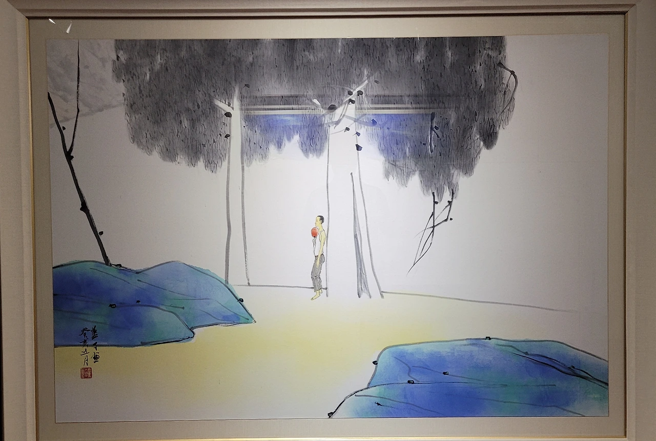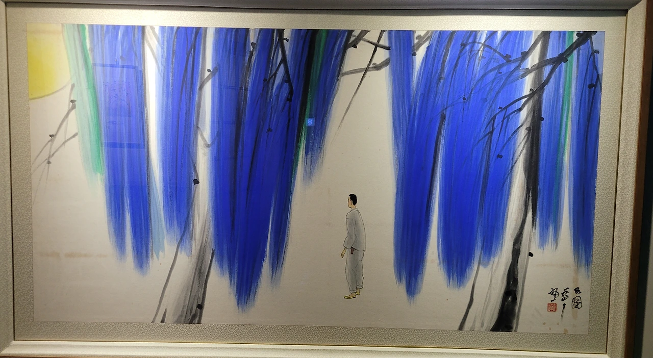 이번 전시의 대표적인 작품은 '류하'로 버드나무 아래라는 화제를 달았다. 코발트블루의 파란색이 두드러진 그림으로 진하고 대담하게 채색된 버드나무 잎의 늘어진 가지가 화폭을 가득 채운다. 1980년에 제작한 이 그림은 그의 독특한 화풍을 유감없이 보여주고 있다. 일반적인 버드나무가 가지고 있는 녹색과는 차별성을 보여주는 이 작품은 버드나무를 짙푸른 남색으로 표현했다. 유화 느낌이 묻어나는 진한 필치는 한여름의 시원함을 선사한다. 자연을 그렸지만 도회적인 세련된 감각과 독특한 색감이 다소 몽환적이기도 하다. 그림은 보는 이로 하여금 저절로 맑고 고요한 그림 속 세상으로 깃들여 머물도록 이끈다.