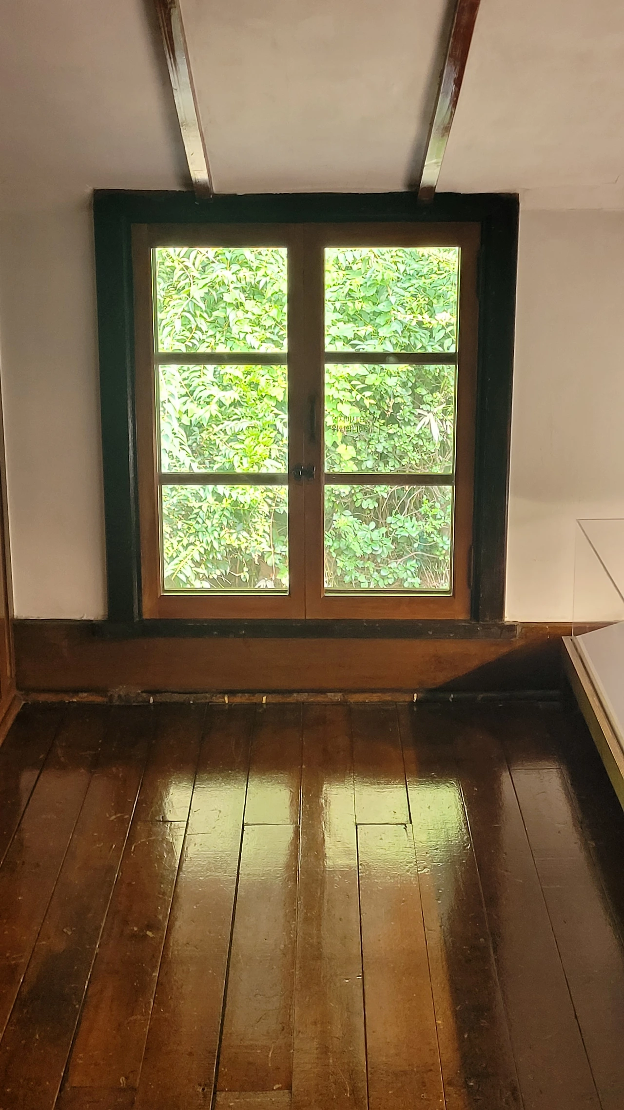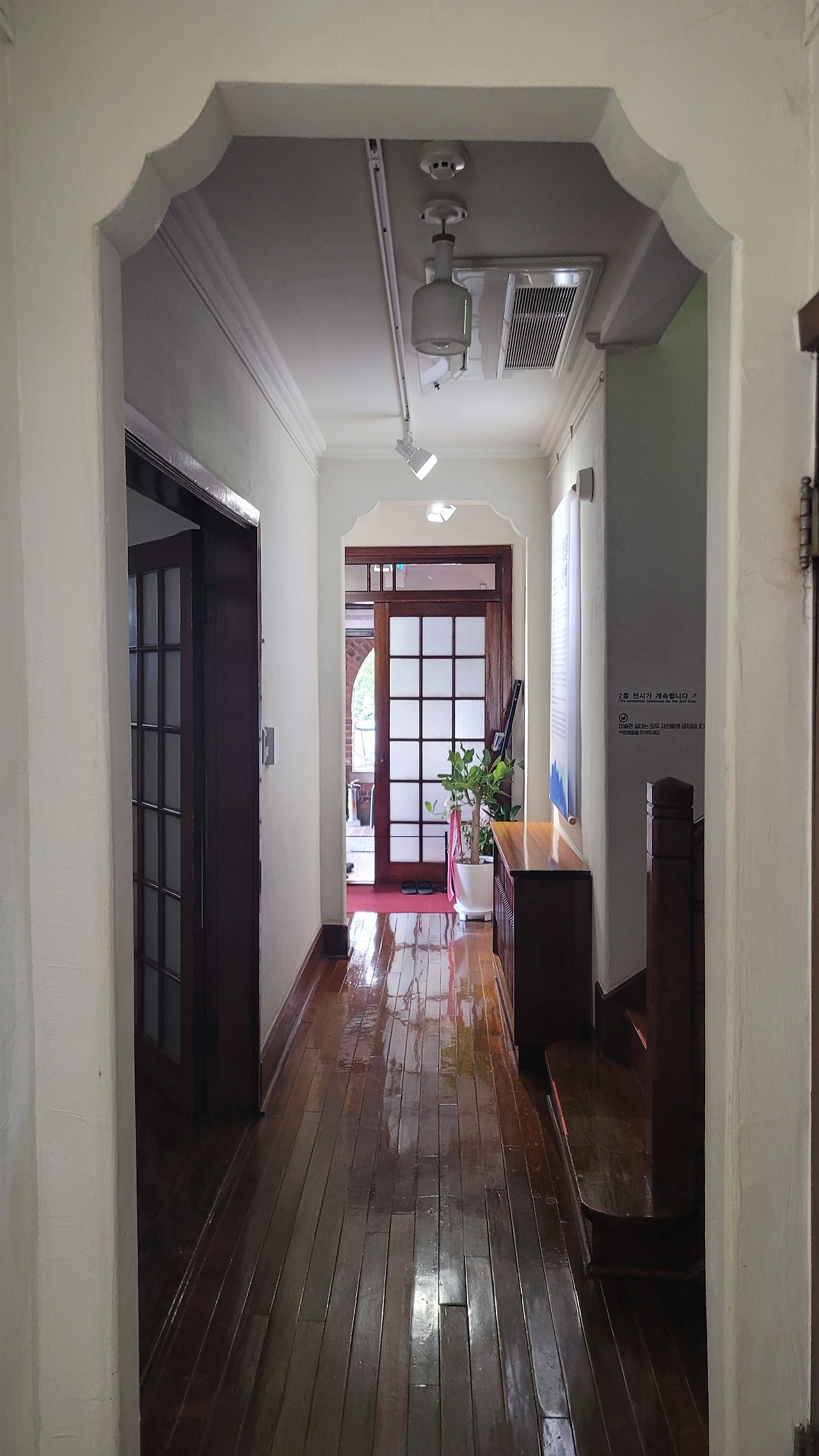 2층으로 되어있는 건물내부는 목재와 회벽이 어우러져 깔끔하다. 숲이 내다 보이는 창이 달린 아담한 다락이 정겹다.