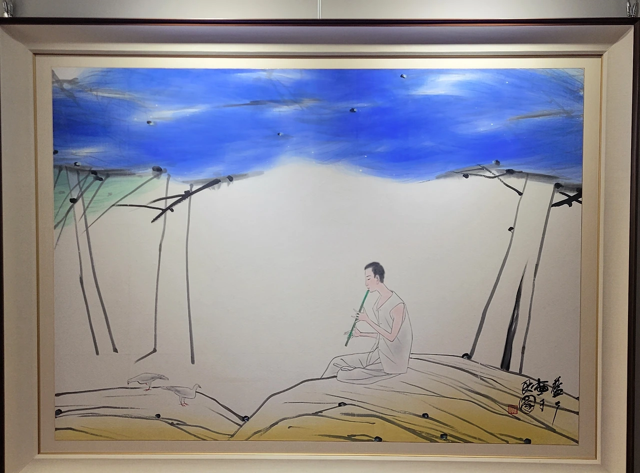 시대가 지나갈수록 그의 그림은 더욱 간결해진다. 취적은 1989년에 그린 작품으로 선과 색이 더 단순하다. 그러면서도 그의 남색 사랑은 여전히 그림의 중심이다.
