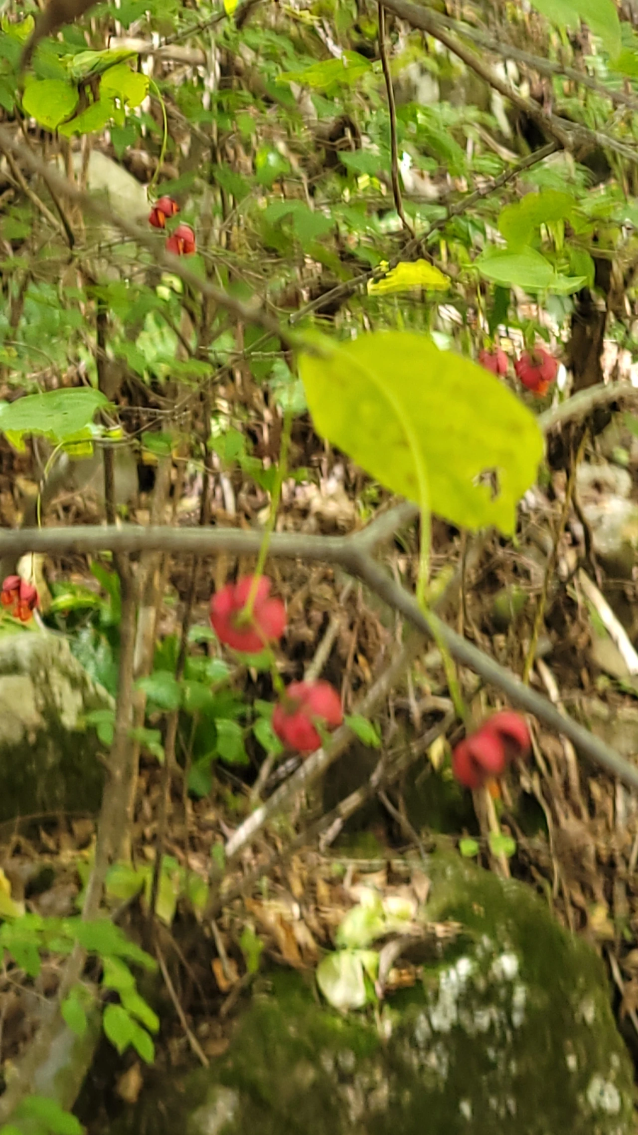 한참을 걸어 올라 바빠진 호흡을 달래려 중도에 여장을 푼다. 옹달샘에 물그릇도 놓여 있어 심산의 약수로 갈증을 달랜다. 시원한 물이 젖은 땀을 식혀준다. 물가에 붉은 열매가 떨어져 있다. 올려다보니 참회나무가 주렁주렁 열매를 꽃처럼 달고 있다.