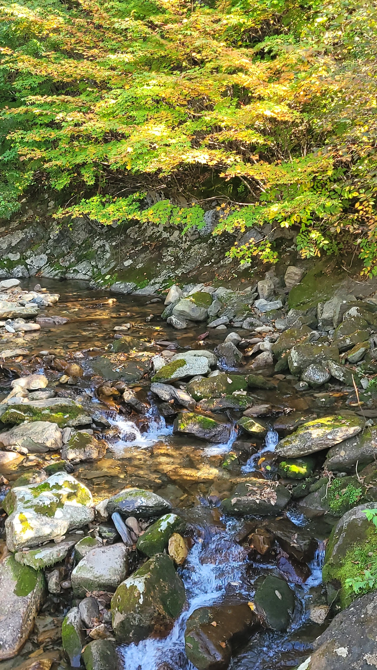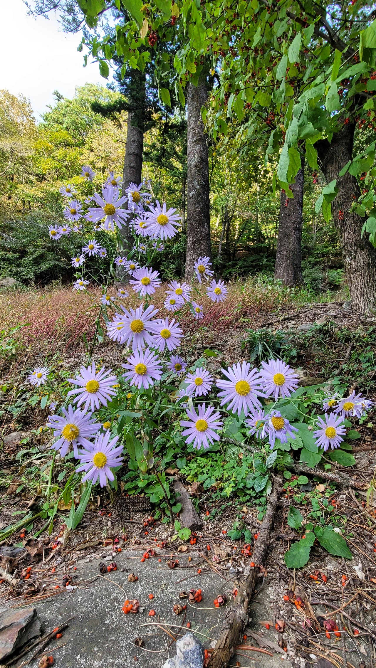 다듬은 돌로 놓인 길이 다소 불편하지만 산의 맑은 기운이 불편함을 날려버린다. 길가에는 개쑥부쟁이가 꽃망울을 터트려 환하게 반긴다. 산이 깊어선지 계곡의 물소리도 우렁차다. 계류가 만들어 낸 음이온이 가득히 넘치는 숲은 청량함 그 자체다. 몸 안의 탁한 이산화탄소를 배출하고 깨끗한 산소를 심호흡으로 실컷 들여 마신다. 몸과 마음이 가볍다.