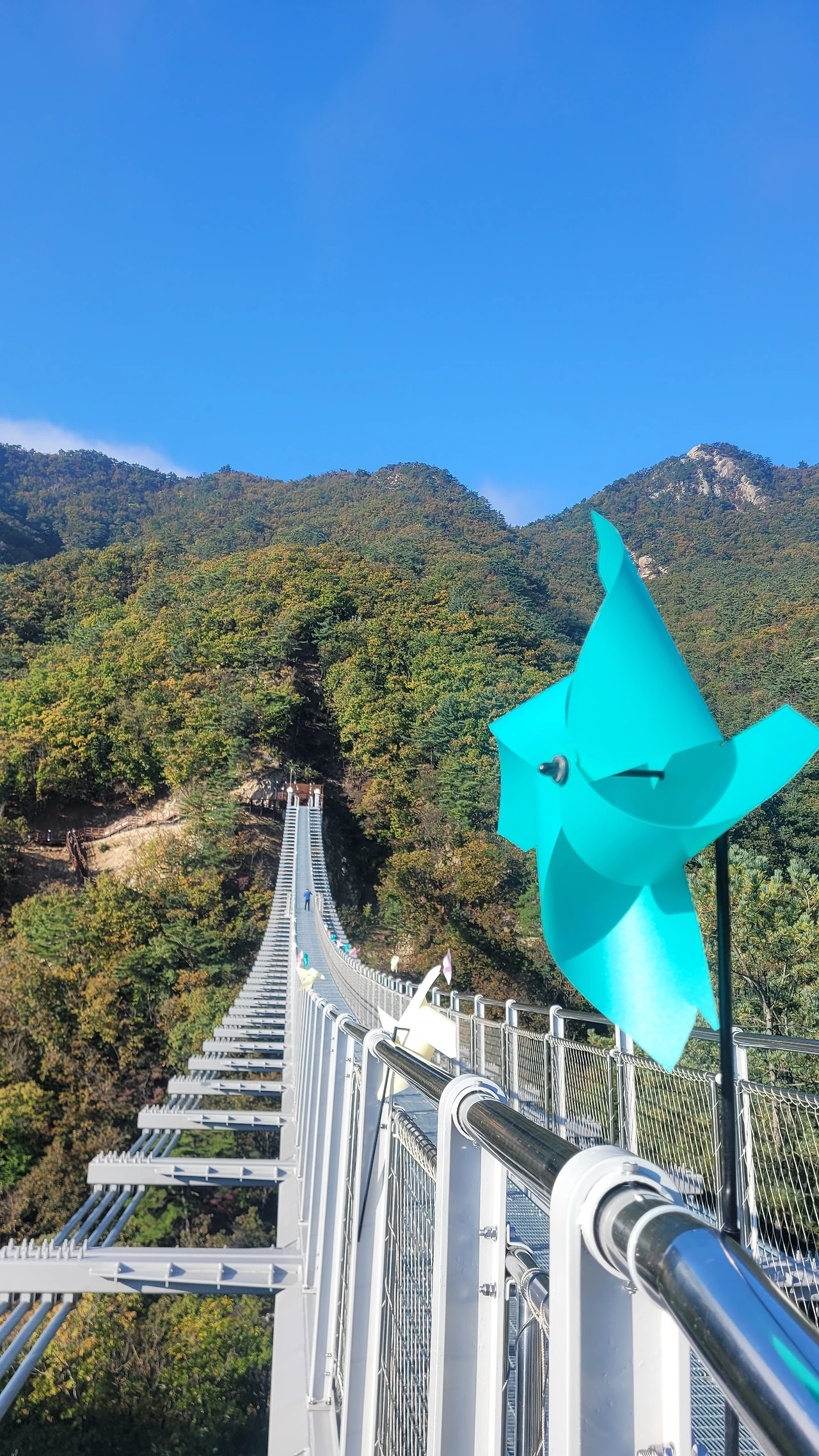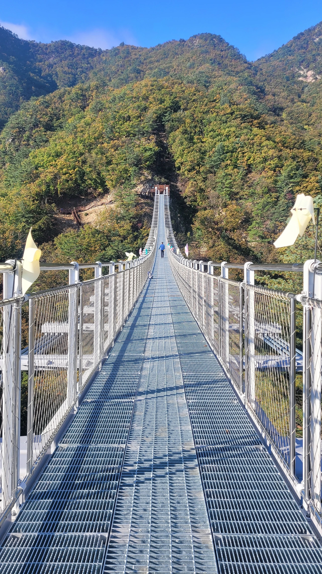얼마 오르지 않은 곳에 출렁다리가 있다. 210미터의 꽤 긴 다리인데 구태여 이곳에 있어야 할 이유가 있어야 하는지 조금 의아하다. 지자체마다 앞다투어 설치하는 붐이 불어서가 아닐까 싶다. 자연은 자연 그대로가 가장 자연스럽다는 단순한 사실을 잊지 않고 살았으면 좋겠다.