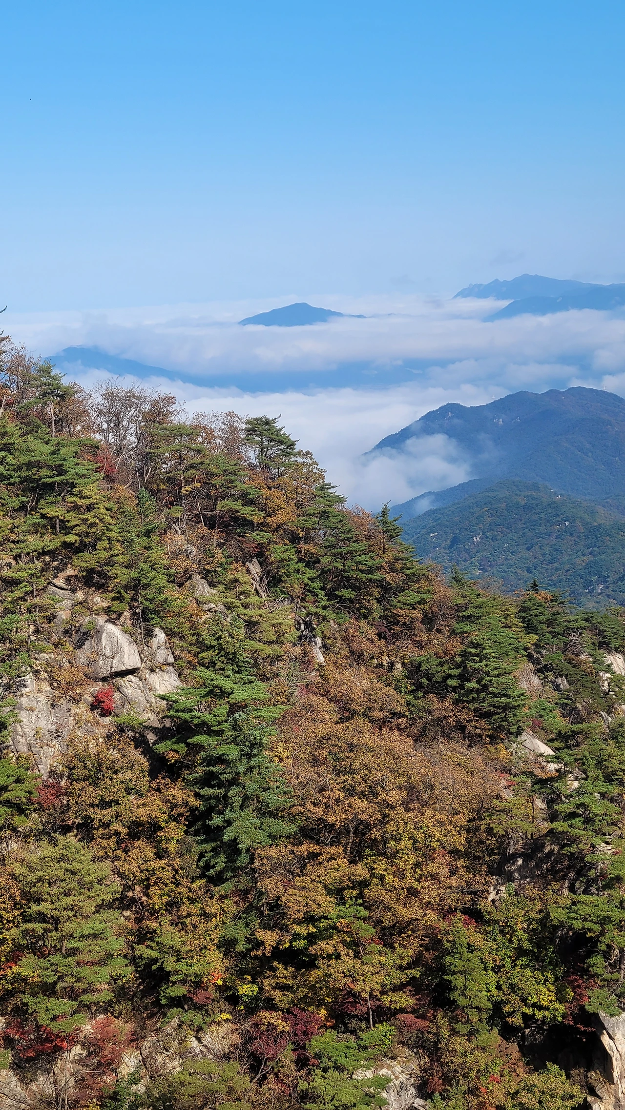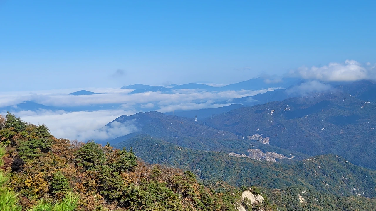 정상에 올랐지만 이곳보다 오르면서 만났던 풍광이 훨씬 더 좋다. 산마루에는 단풍이 제법 물들었다. 대부분의 나무들이 가을로 옷을 갈아입게 되면 아주 매혹적인 풍경일 거라는 생각에 아쉬움이 살짝 들었다.