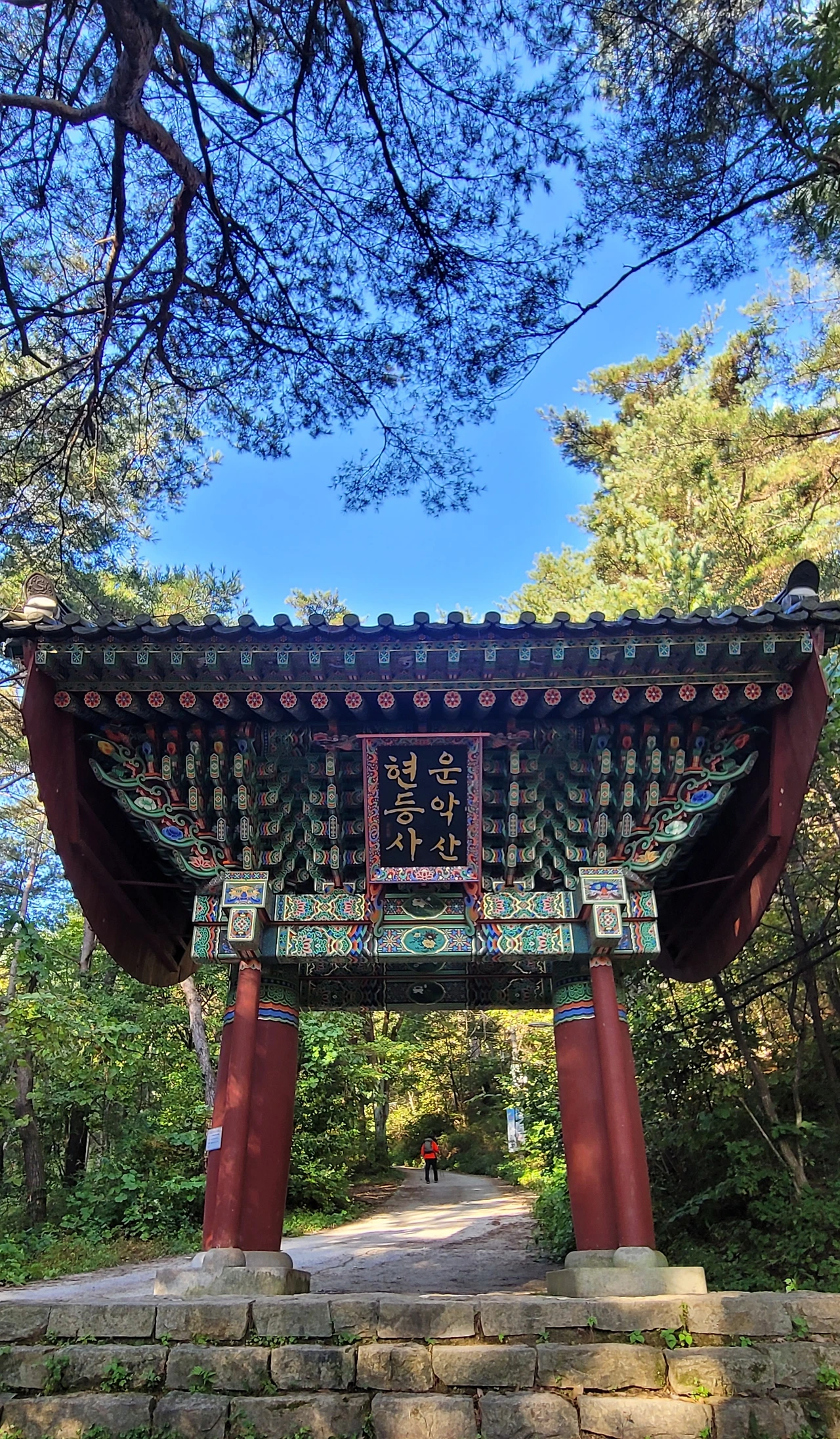 오전 8시 30분부터 산을 올랐다. 운악산에는 현등사라는 고찰이 있어서 현등산이라고 부르기도 한다. 화려한 단청으로 단장한 일주문이 손을 활짝 벌려 우리를 반긴다. 아침이 주는 신선한 분위기가 가벼운 흥분을 가져온다. 아직은 푸른 잎들이 우거진 숲이 선사하는 기운이 상쾌하다. 신록은 여전하지만 차분하게 정돈된 풍경이 천천히 여름을 정리하고 새로운 계절을 맞는 숲의 변화로 느껴진다.