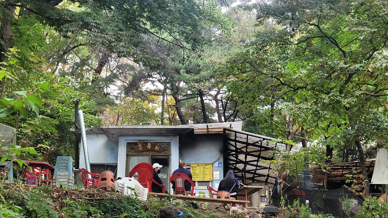 식당은 진짜로 산속에 파묻혀 있었다. 산을 오르며 이런 곳에 과연 식당이 있을까하는 의아한 생각이 들었는데 산속에 떡하니 자리 잡은 모습이 놀라웠다. 인수재란 분명한 현판이 걸린 작고 허름한 식당이었다.