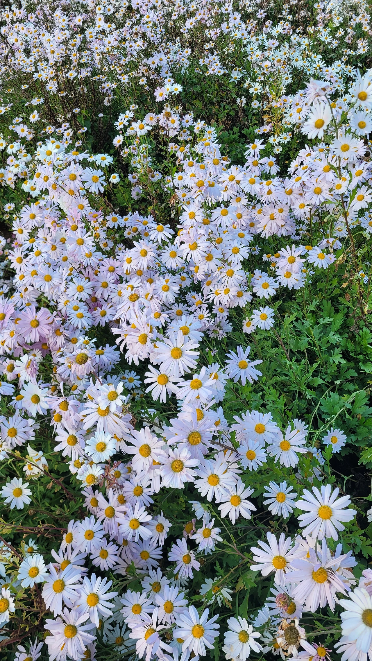 전망대에서 내려와 꽃길을 걸었다. 그야말로 사람들이 늘 꿈꾸는 꽃길이 아닐 수 없다. 가까이서 꽃을 보니 시든 꽃송이도 보였다. 꽃들의 탄생과 죽음이 더불어 존재하는 공간이다. 시든 꽃은 애잔했고 만개한 꽃은 활달했다. 산등성이를 넘으니 더 넓은 꽃밭이다. 오로지 구절초로 심고 재배한 노력과 정성이 가슴으로 전해온다.