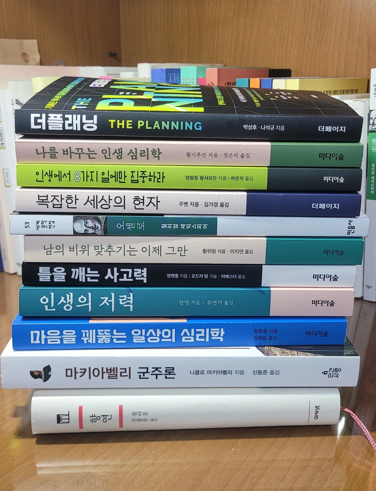 11월에 들어서서 읽은 책은 다음과 같다. 플라톤의 향연, 마키아벨리의 군주론, 더 플래닝, 초심력, 인생의 저력, 틀을 깨는 사고력, 남의 비위를 맞추기는 이제 그만, 셰익스피어의 오셀로, 복잡한 세상의 현자, 인생에서 8가지 일에만 집중하라, 나를 바꾸는 인생의 심리학으로 고전을 3권을 읽었고 자기 계발서를 8권을 읽었다. 지금은 도서 나눔으로 받았던 어메이징 브루클린이라는 498페이지짜리 소설을 읽는 중이다.
