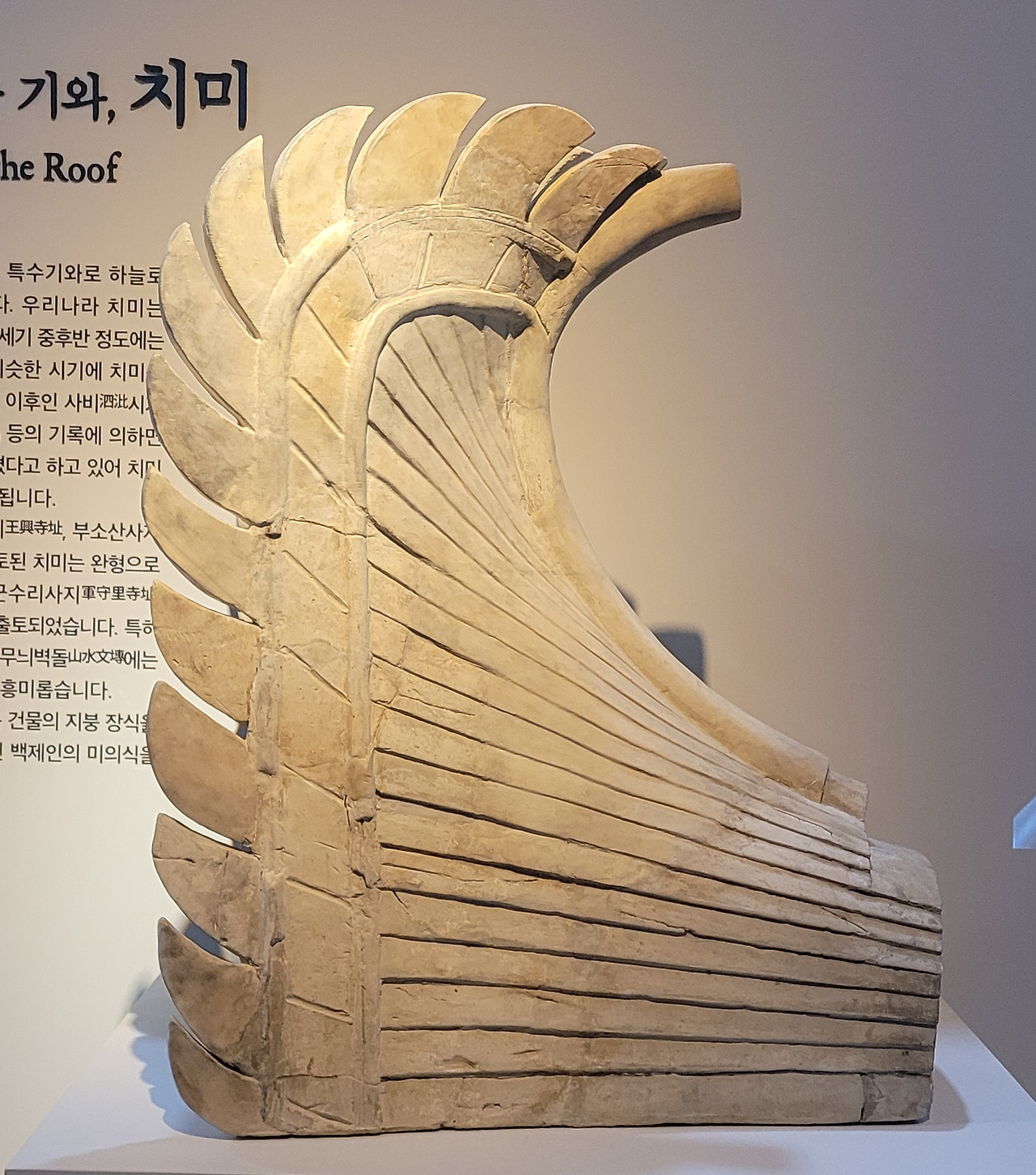 그 이외에도 금동관음보살입상의 유려함이 눈길을 끌었고 재현한 사비성의 웅장함과 용마루 끝을 장식하는 치미는 독특한 아름다움을 보여주었다. 무늬 벽돌과 기와의 문양은 백제문화가 얼마나 세련되고 우아했는지를 직접적으로 일러준다. 정림사지의 오 층 석탑이 주는 느낌도 좋았다. 편안함과 부드러움이 백제 예술이 주는 감성임을 느낄 수 있었다. 서산마애삼존불의 꾸밈없는 천사의 미소를 어디에서 만날 수 있을까? 볼수록 백제 예술과 문화의 한없는 매력에 빠져든다.