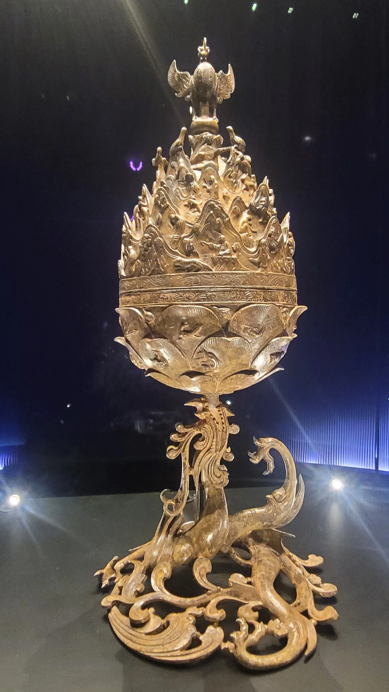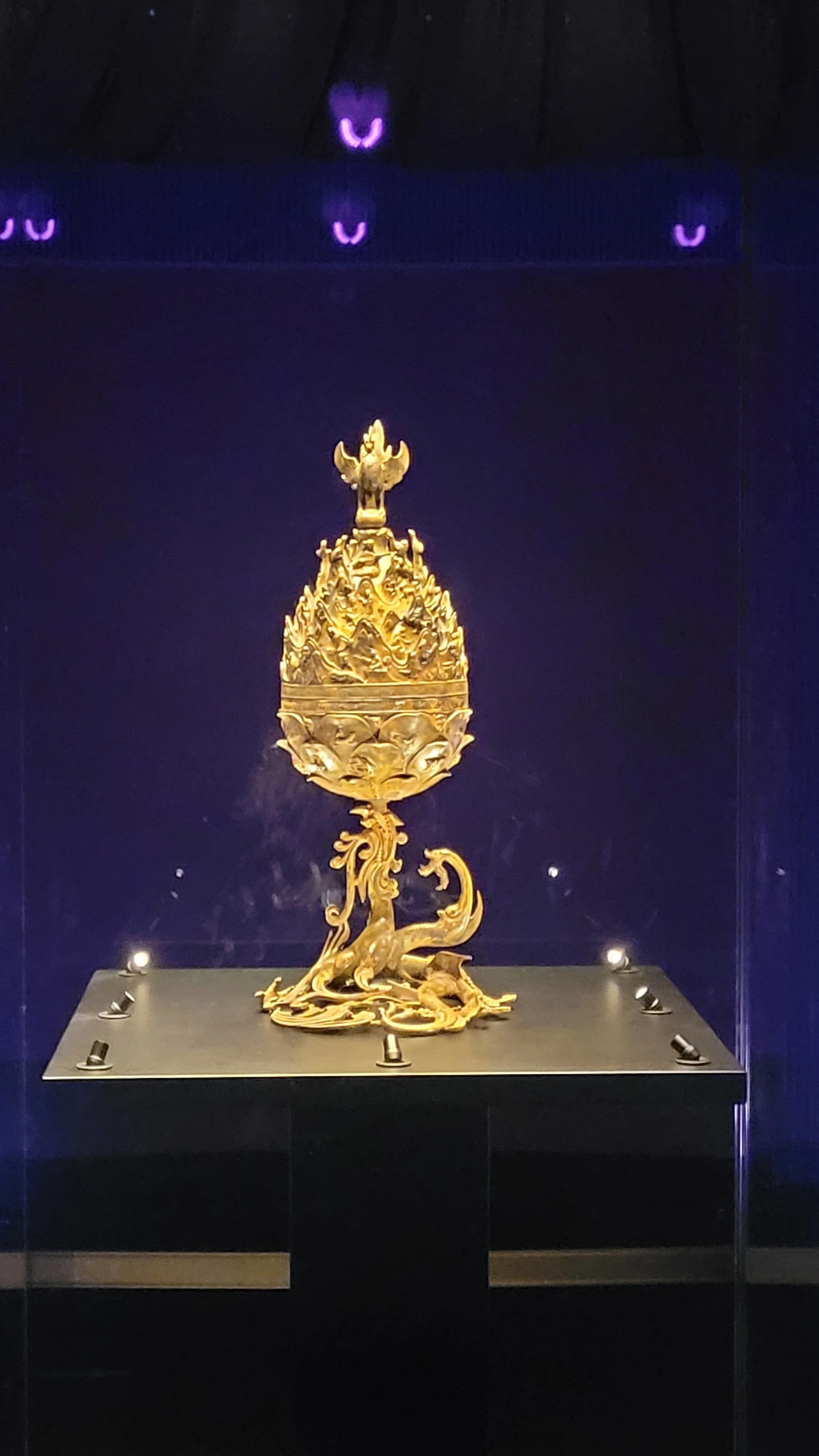 백제금동대향로의 위명은 예전부터 알고 있었지만 막상 실물을 직접 보게 되니 상상 이상이었다. 말 그대로 감동이 쓰나미처럼 몰려왔다. 특별 전시실에 마련된 실물은 참으로 경이로웠다. 은은한 조명으로 한층 더 두드러진 아름다움이 이목을 끌었고 대향로가 주는 마법에 가까운 매력에 이끌려 그 앞을 떠날 수가 없었다. 실물을 보기 전에 사전 영상으로 대향로를 미리 만나서 기대감이 크게 일었다. 부여 석조를 배경으로 제작된 영상 프로그램이 아주 매혹적이었기 때문이다.