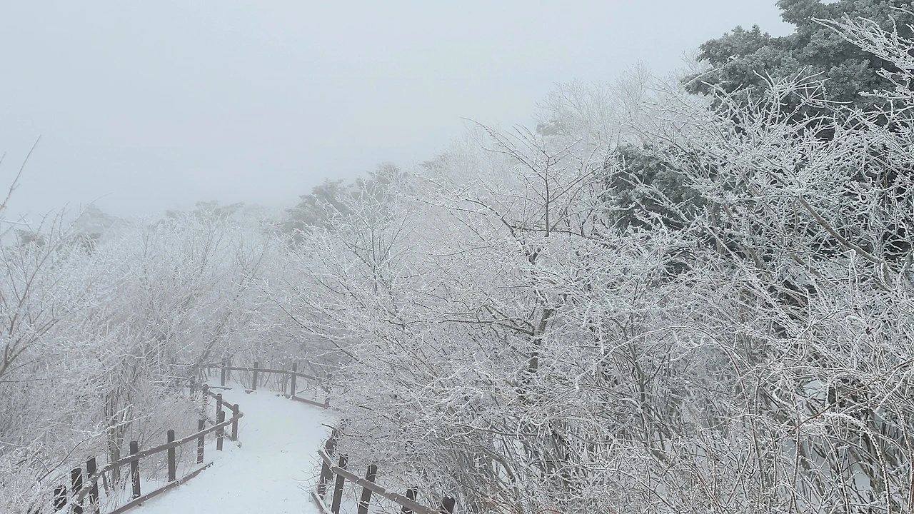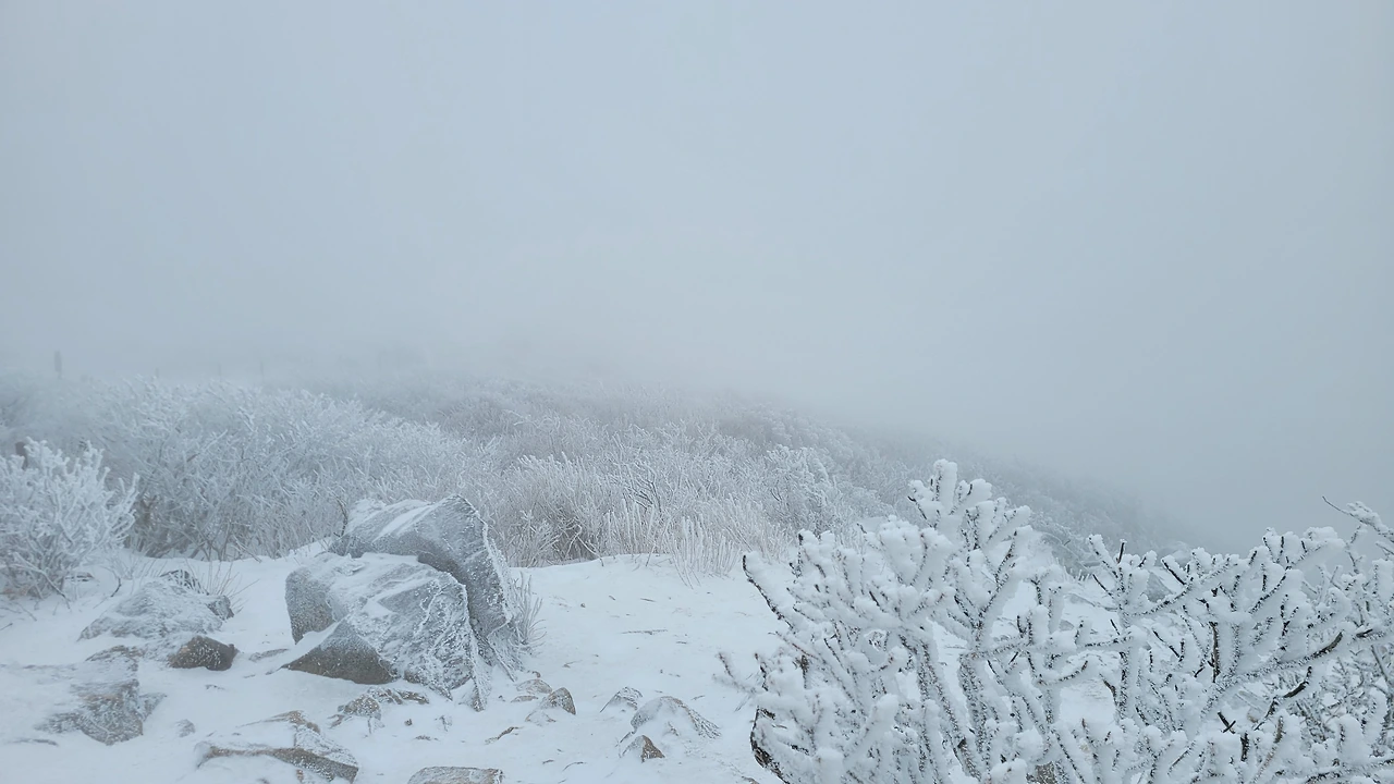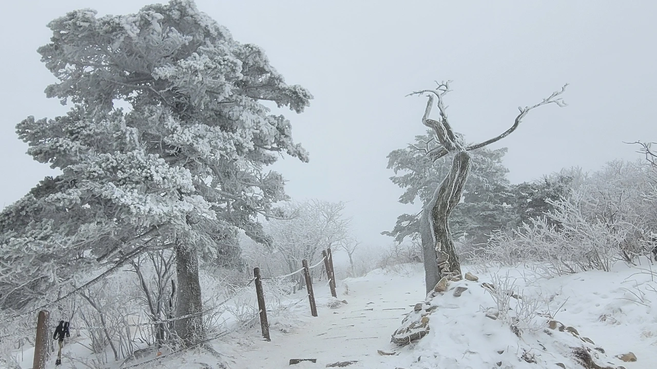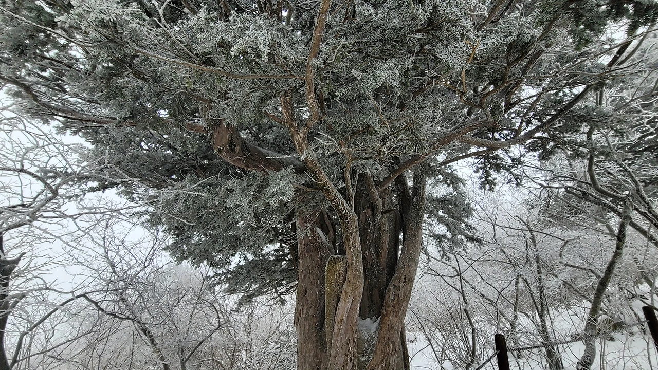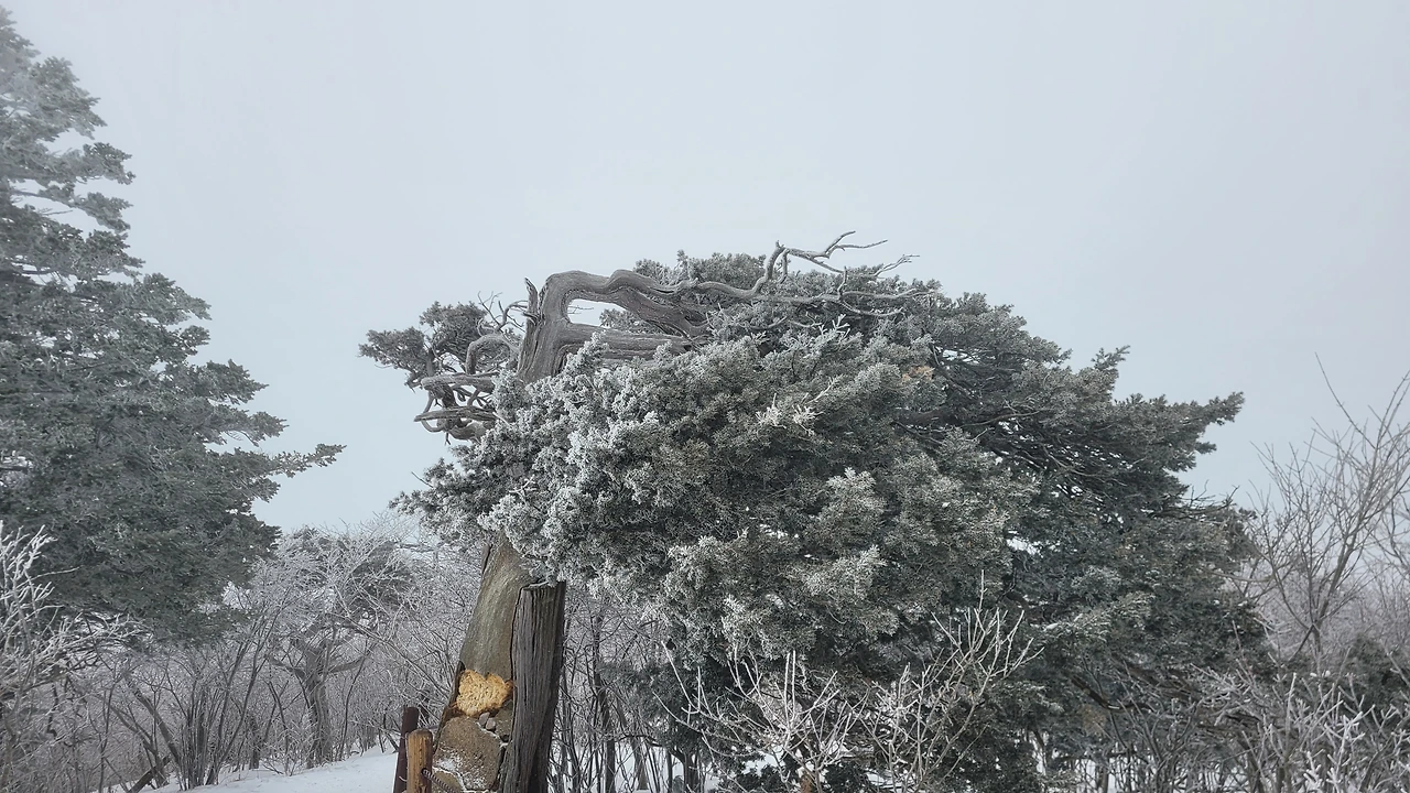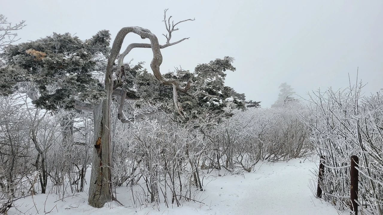 산을 오를수록 눈부신 설화가 점점 만발하는 중이다. 관목의 다채로운 여린 가지마다 순백의 눈꽃이 피고 주목과 소나무 잎에도 눈 결정이 뒤덮여 신비로운 자태를 선보인다. 굵은 나무등걸에도 눈의 자취가 서려 붓질로 음양을 도드라지게 그려놓은 듯하다.