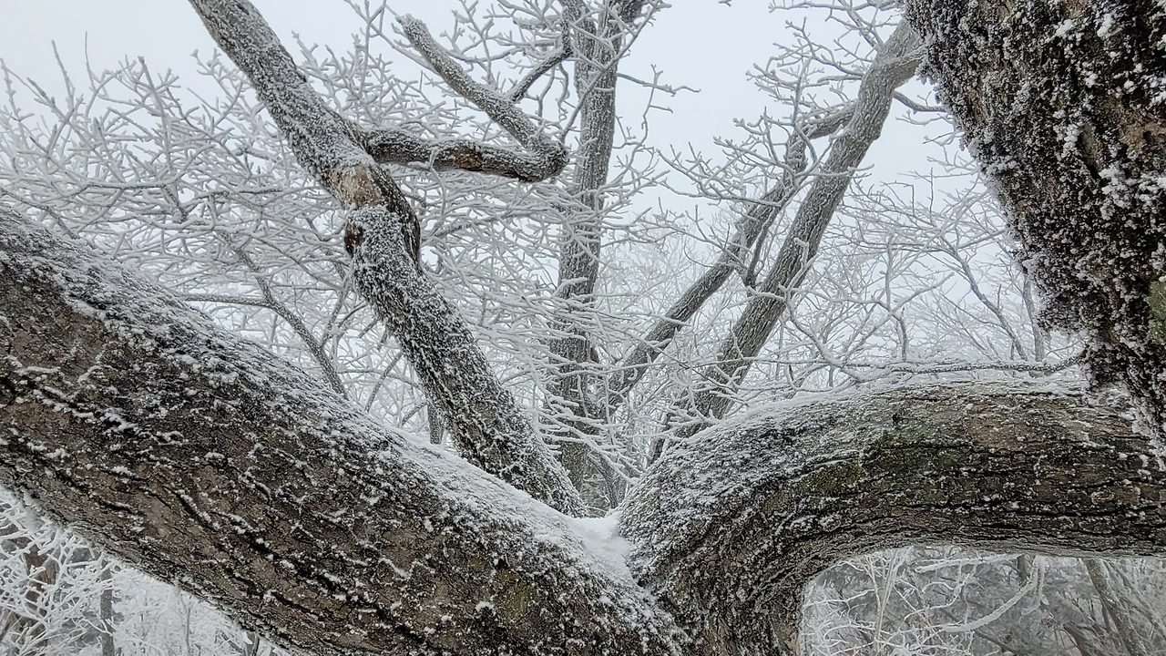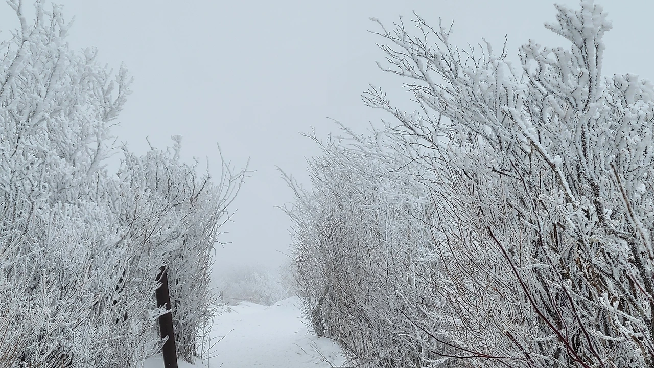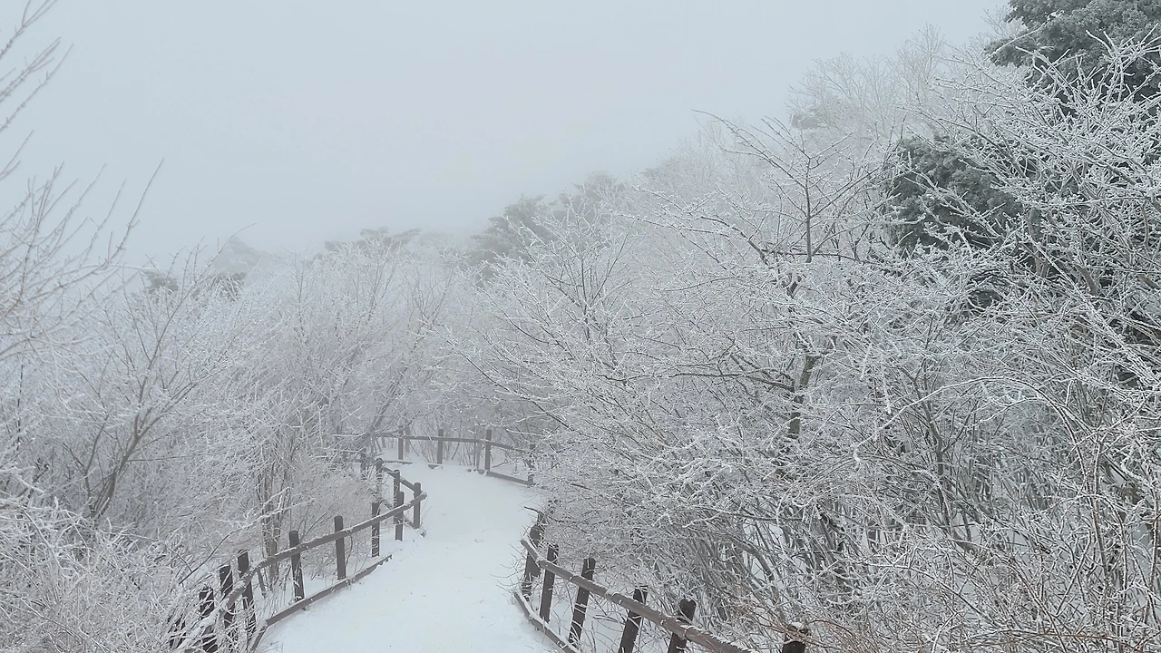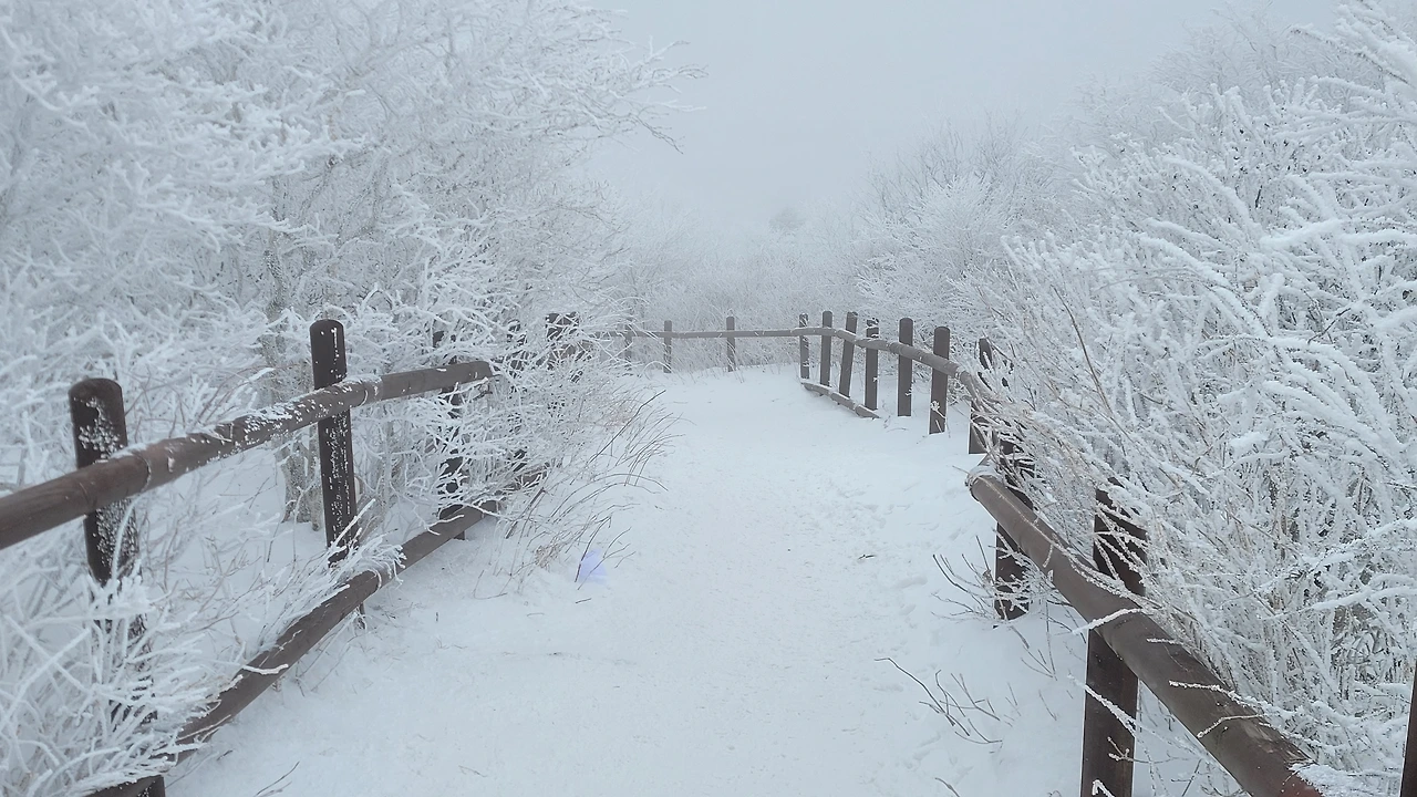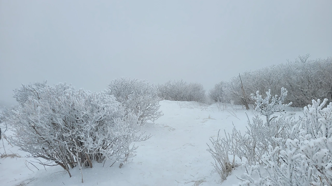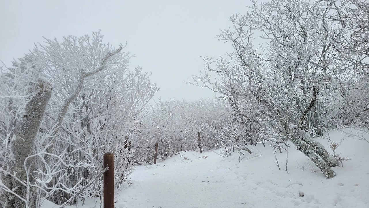 산을 오를수록 눈부신 설화가 점점 만발하는 중이다. 관목의 다채로운 여린 가지마다 순백의 눈꽃이 피고 주목과 소나무 잎에도 눈 결정이 뒤덮여 신비로운 자태를 선보인다. 굵은 나무등걸에도 눈의 자취가 서려 붓질로 음양을 도드라지게 그려놓은 듯하다.