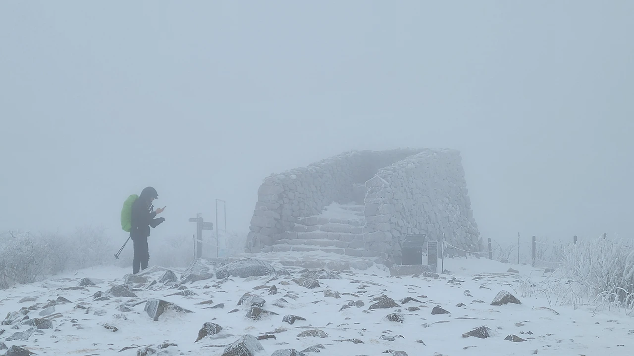 정상에 다가갈수록 바람이 거세진다. 기온도 뚝 떨어진다. 사진을 찍으려 맨손이 되면 금방 얼어붙을 듯 춥다. 눈발도 날린다. 바람 잦은 곳에 머물며
