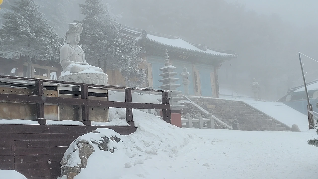 천제단도 눈의 통치 아래 조용히 앉아있다. 돌로 만들어진 제단이지만 이제는 눈의 일원일 따름이다.