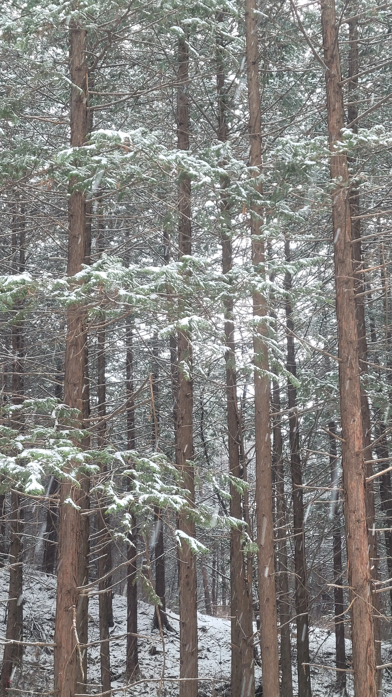 숲에는 늘 푸른 나무들도 있다. 눈이 시원해진다. 한겨울에도 푸른빛으로 생동감을 전하는 소나무가 그들이다. 푸른 솔잎에 흰 눈이 어우러져 생기가 도드라진다. 곧바로 자라는 나무도 멋지지만 굴곡을 지닌 소나무는 그 나름대로 아름다움이 있다. 눈 맞은 소나무들이 군락을 이루며 전하는 푸른 기운은 보기만 해도 힘이 솟는다. 하늘을 향해 수직으로 도열한 편백나무 숲도 아름답다. 숲에는 동고비와 바위종다리를 닮은 귀여운 새들도 머문다.