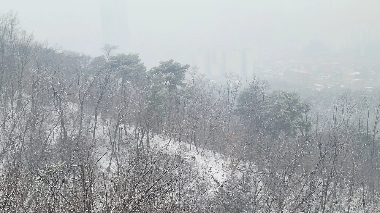 미끄러지며 산마루를 오른다. 운무에다 하늘 가득히 내리는 눈으로 먼 도심이 아련하게 보인다. 눈으로 덮인 나무들만 선명하다. 세상의 모든 더러움을 다 덮어버린 눈의 위력 앞에 모두가 겸손하다. 요란한 세상이 눈 속에 파묻힌 풍경처럼 깨끗해지고 조용해졌으면 좋겠다. 아름다운 풍광을 사진으로 담고 싶은 데 핸드폰이 말을 듣지 않는다. 전화벨이 울리며 나를 찾는 세상에 마음이 급해져 산을 내려온다. 눈은 여전히 펑펑 내리고 있다.
