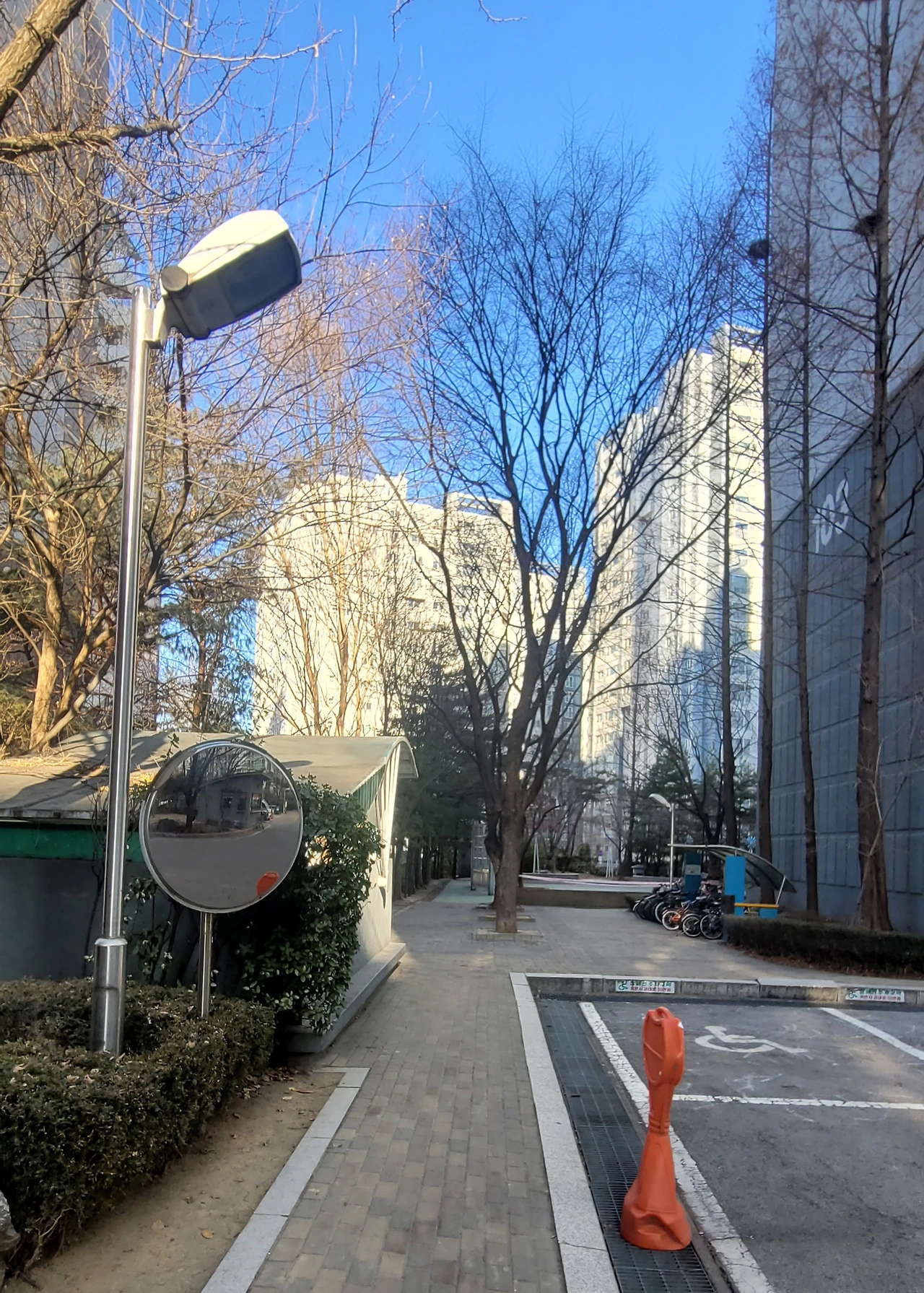 계단 오르기를 마치고 밖으로 나섰다. 운동효과로 처음에는 상쾌한 기분이지만 얼마 지나지 않아 풀어헤친 옷을 꼭꼭 여밀 수밖에 없다. 서슬 퍼런 추위가 맹위를 떨치고 있기 때문이다. 차가운 공기가 대기 먼지도 얼려버렸는지 깨끗한 창공이 펼쳐졌다. 햇살이 밝게 비치지만 보기에만 따스할 뿐 음지나 별반 다를 바가 없다. 확실하게 춥다. 털장갑을 끼었지만 손이 시리다.