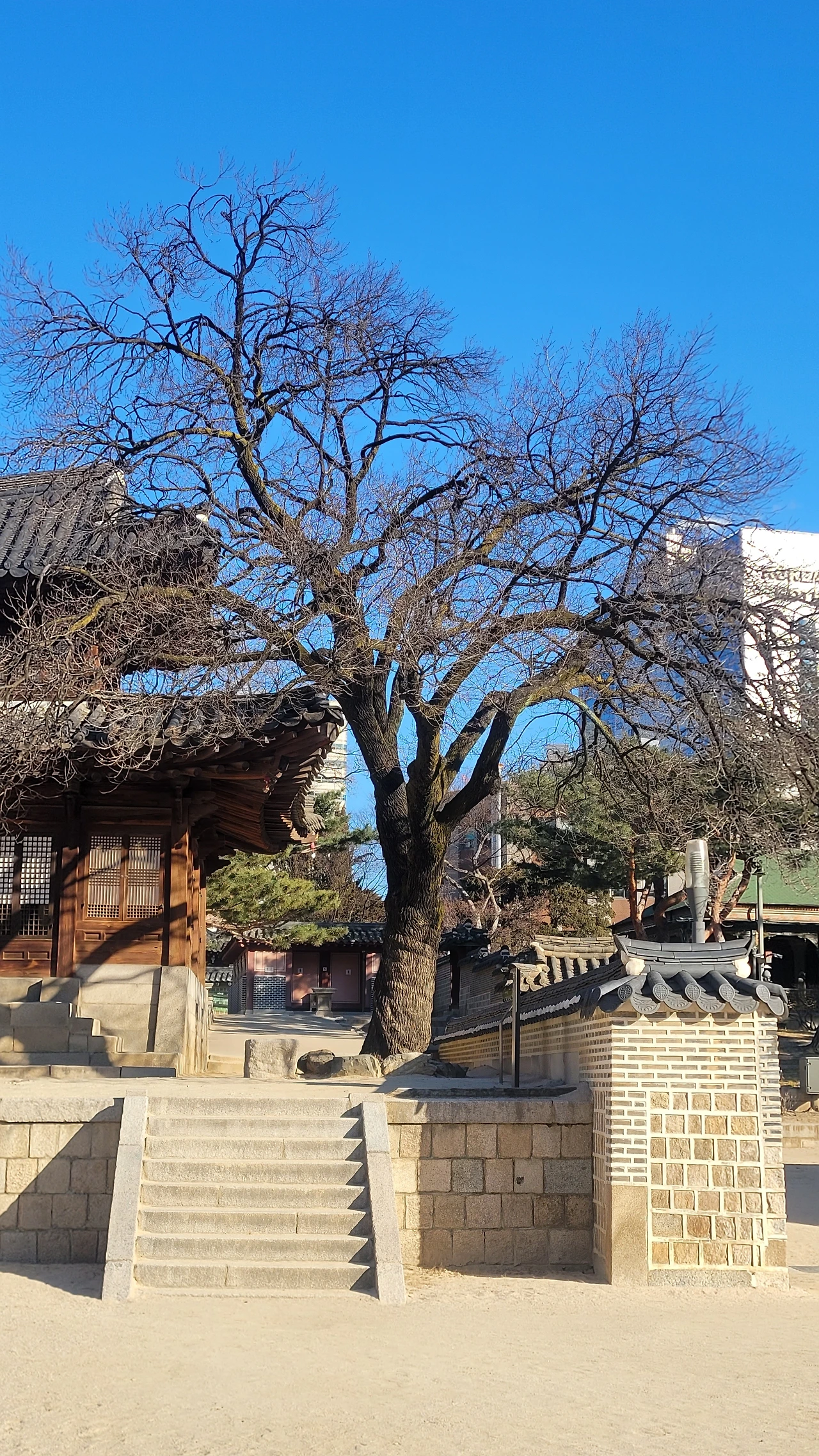 석어당 앞의 살구나무에 섰다. 표찰이 있어서 살구나무지 외양만 봐서는 구분하기가 쉽지 않다. 살구나무로써는 굉장한 거목이다. 자태가 당당하고 늠름하다. 꽃 피는 봄이 오면 피면 장관일 것 같다. 꽃이 필 때는 벚꽃과 아주 유사하다. 살구꽃은 벚꽃과 다르게 꽃받침이 뒤집어지고 꽃자루가 거의 없어 가지에 붙어서 핀다. 조상들이 꽃과 열매를 즐겼던 전통 정원수로 고궁에 많이 심었다. 중국에서는 공자가 살구나무 아래서 제자들을 가르쳤다고 전해진다. 빛 좋은 개살구는 시베리아 개살구가 열매는 예쁘지만 떫고 맛이 없어서 생겨난 말이다. 지금은 다채로운 과일들 속에서 살구가 존재감이 없지만 예전에는 많은 사랑을 받은 과일이었다.