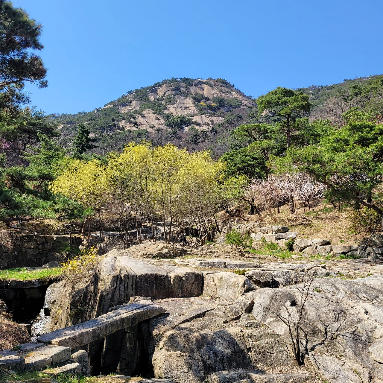 인왕산이 그렇다. 도심에 위치해서 마음만 먹으면 언제나 갈 수 있다. 40여 년을 서울에 살면서 작년에서야 나도 처음 가보았다. 겸재 정선의 진경산수화의 대표작인 인왕제색도의 무대가 바로 이곳이다. 기존 아파트 철거로 예전의 모습을 많이 찾았다고 한다. 작은 돌다리인 기린교가 그 흔적이다. 산 입구에 정선의 그림이 게시되어 실경과 비교해 보는 즐거움이 있다.