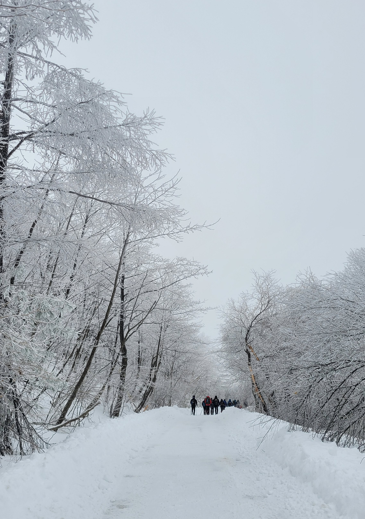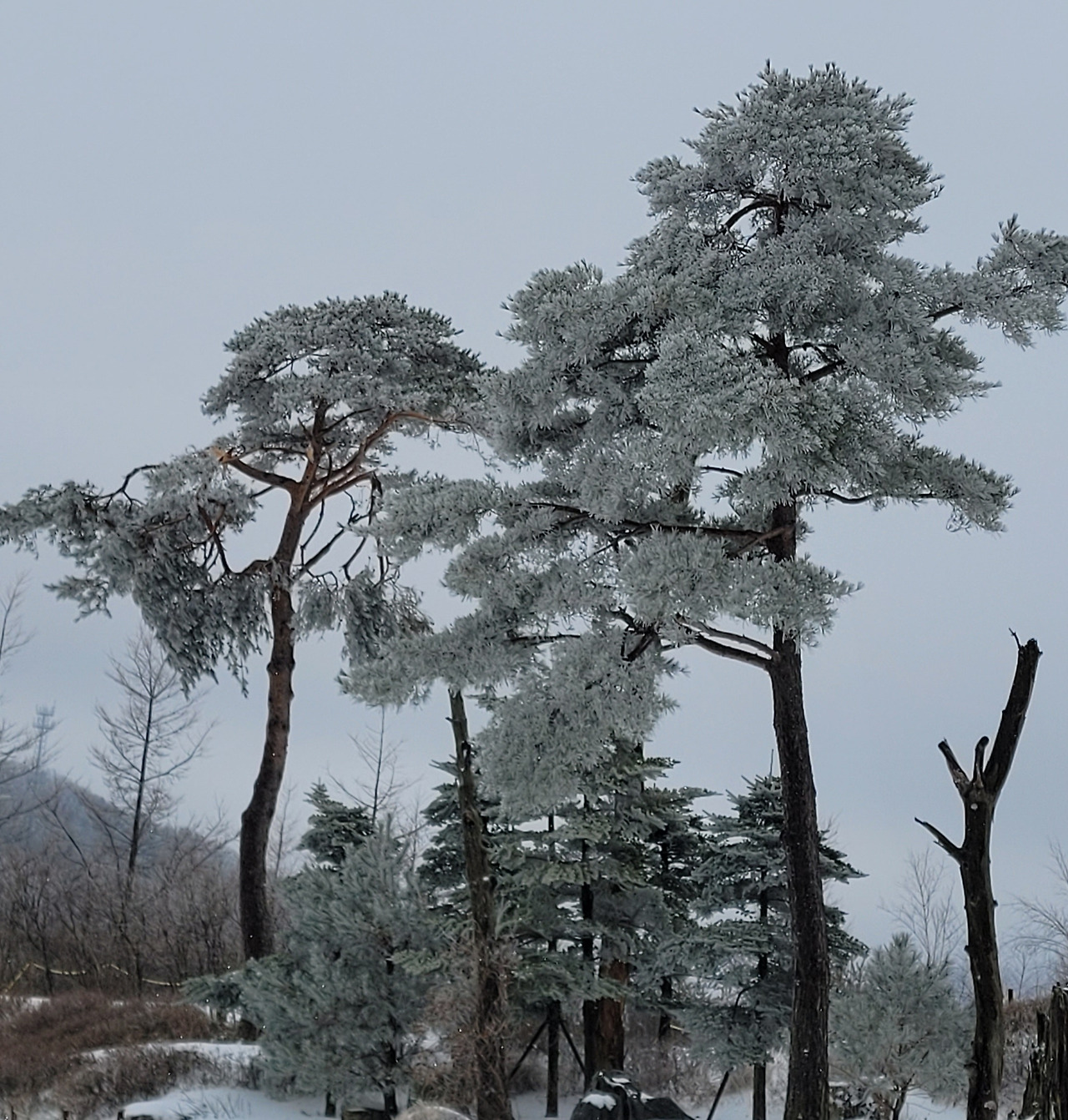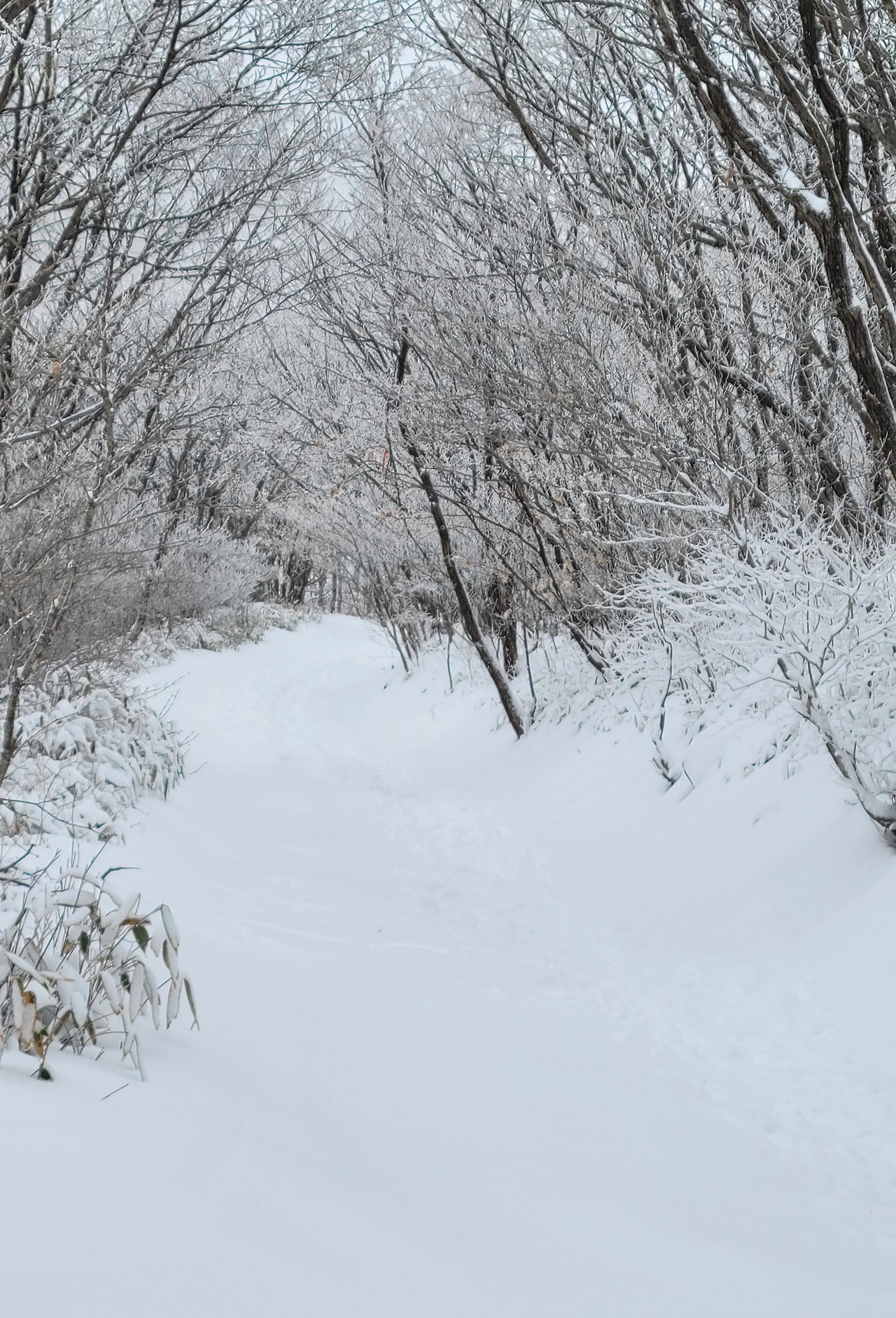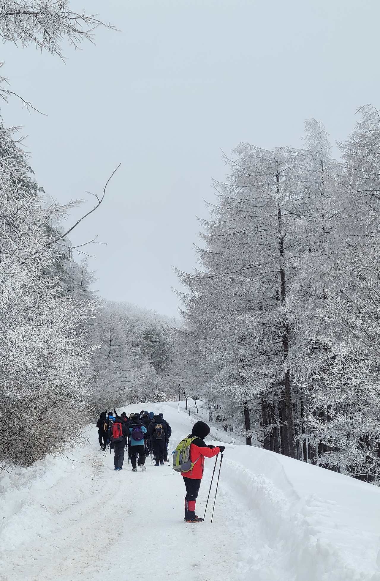 감사하게도 트레킹 막바지에 만항재에서 보았던 절정의 설경을 다시 만났다. 전망대에 오르는 길로 고도가 높아서인지 크리스털로 덮인 숲이 우리를 맞는다. 적설량이 많아져서 걷는 것이 힘에 부친다. 하지만 보고 즐거운 눈은 생기가 넘쳐 힘든 몸을 이끈다.