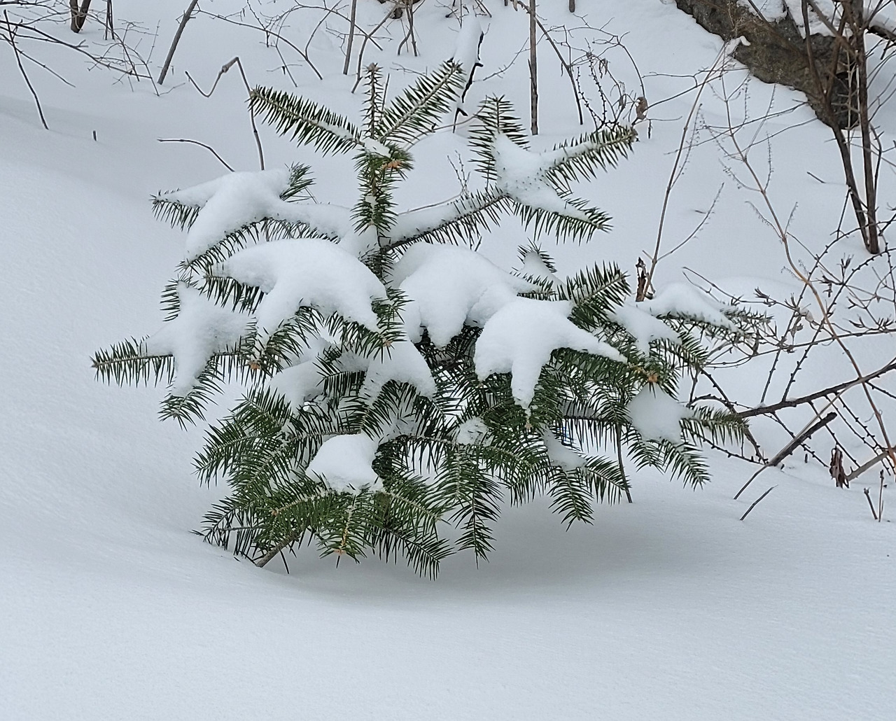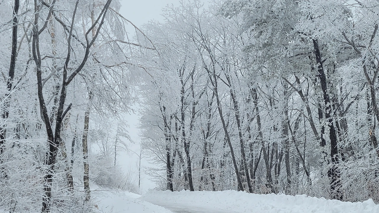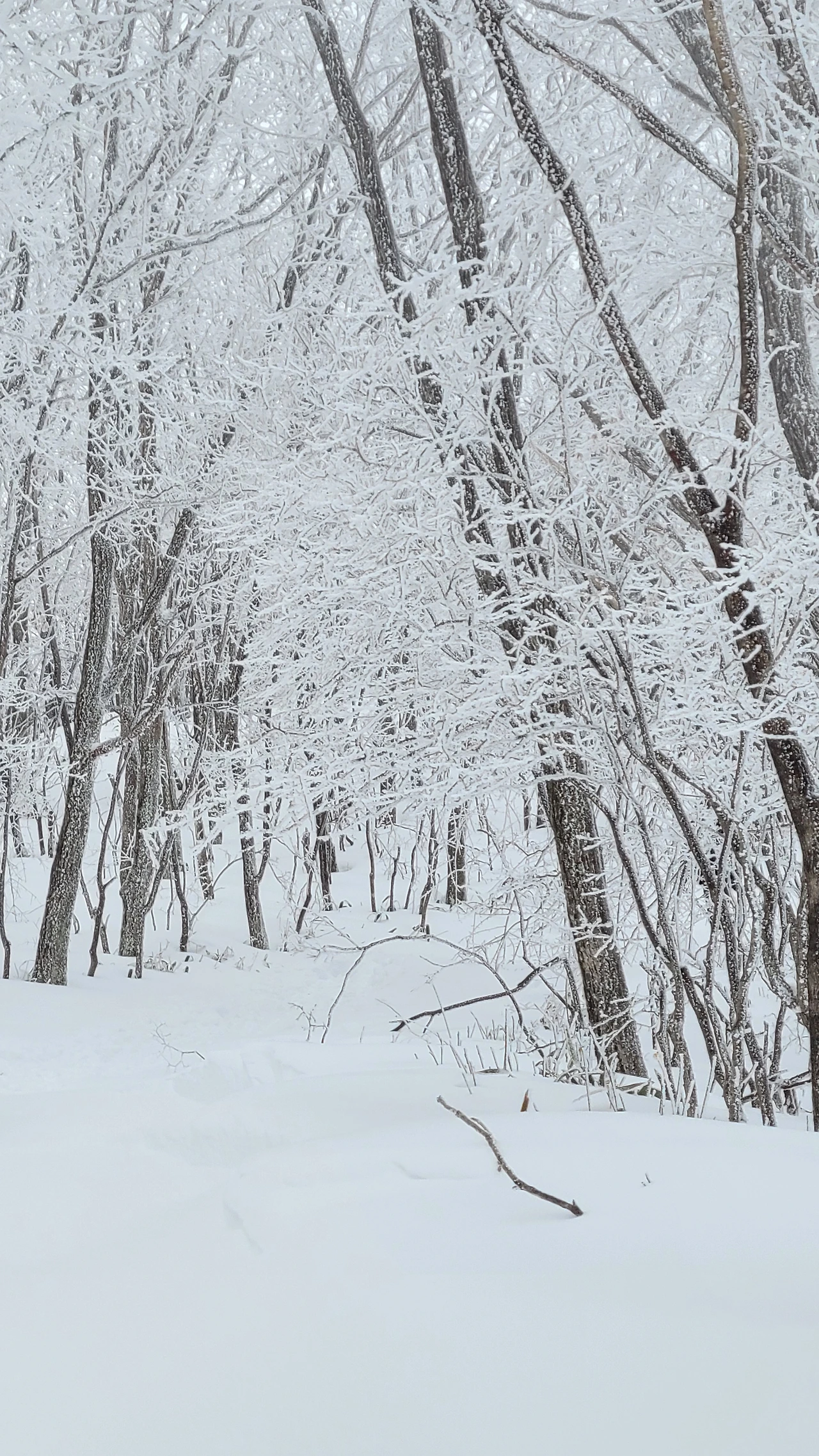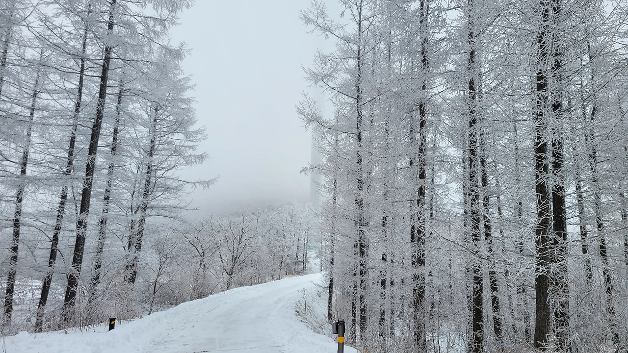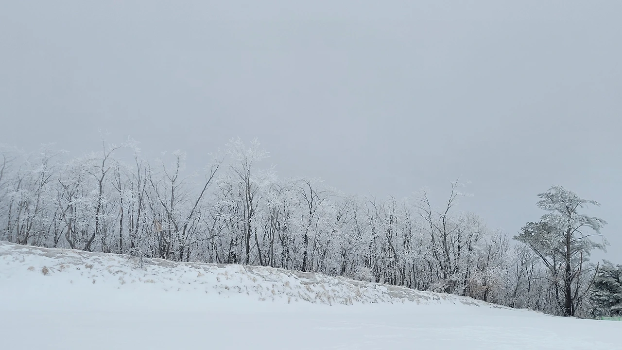 순백으로 덮인 관목의 여리고 촘촘한 가지가 세심하게 조각하고 다듬은 공예품처럼 숲을 빛낸다. 가을 숲에서 볼 수 없었던 숨겨진 매력이다. 잣나무와 소나무의 솔잎에도 크리스털 장식으로 한껏 치장을 했다. 순수한 자연에 젖어 마음도 하얗게 물든다.
