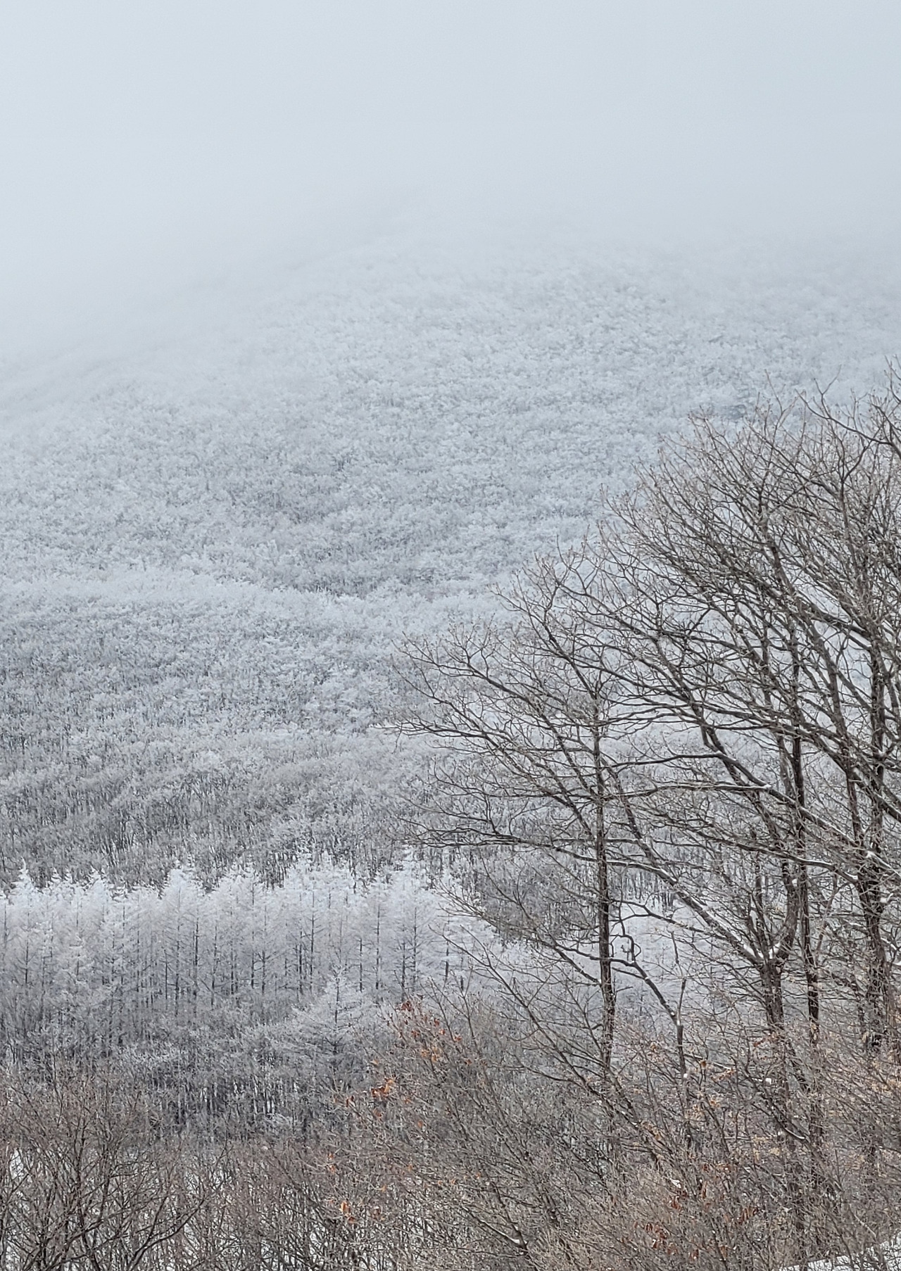 풍경에 취해 한참을 간다. 내리막 길이라 길에는 눈이 여전하지만 나무들은 평범한 겨울로 갈아입었다. 만항재에서 좀 더 머물러야 했는데 하는 아쉬움이 고개를 든다.