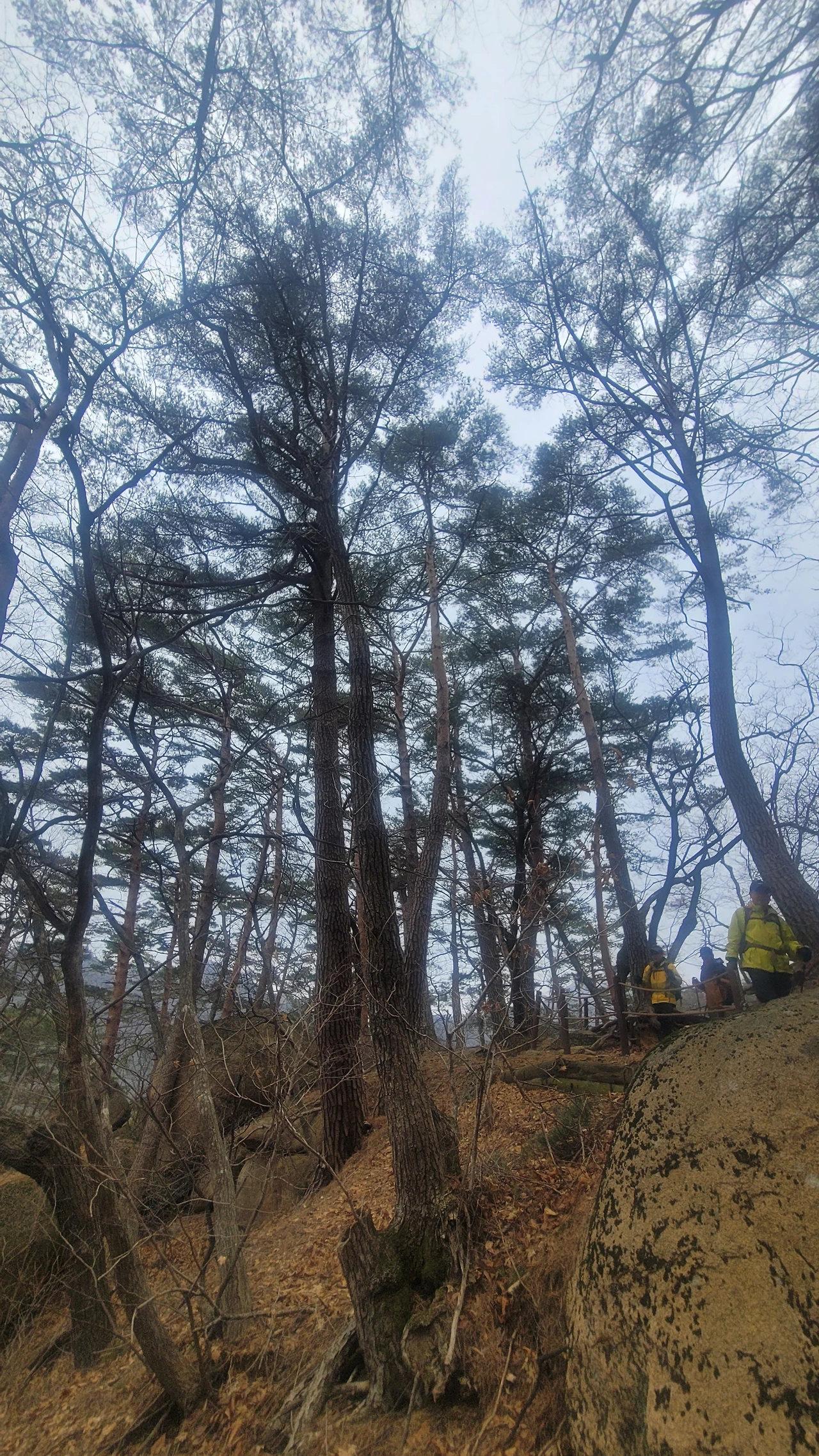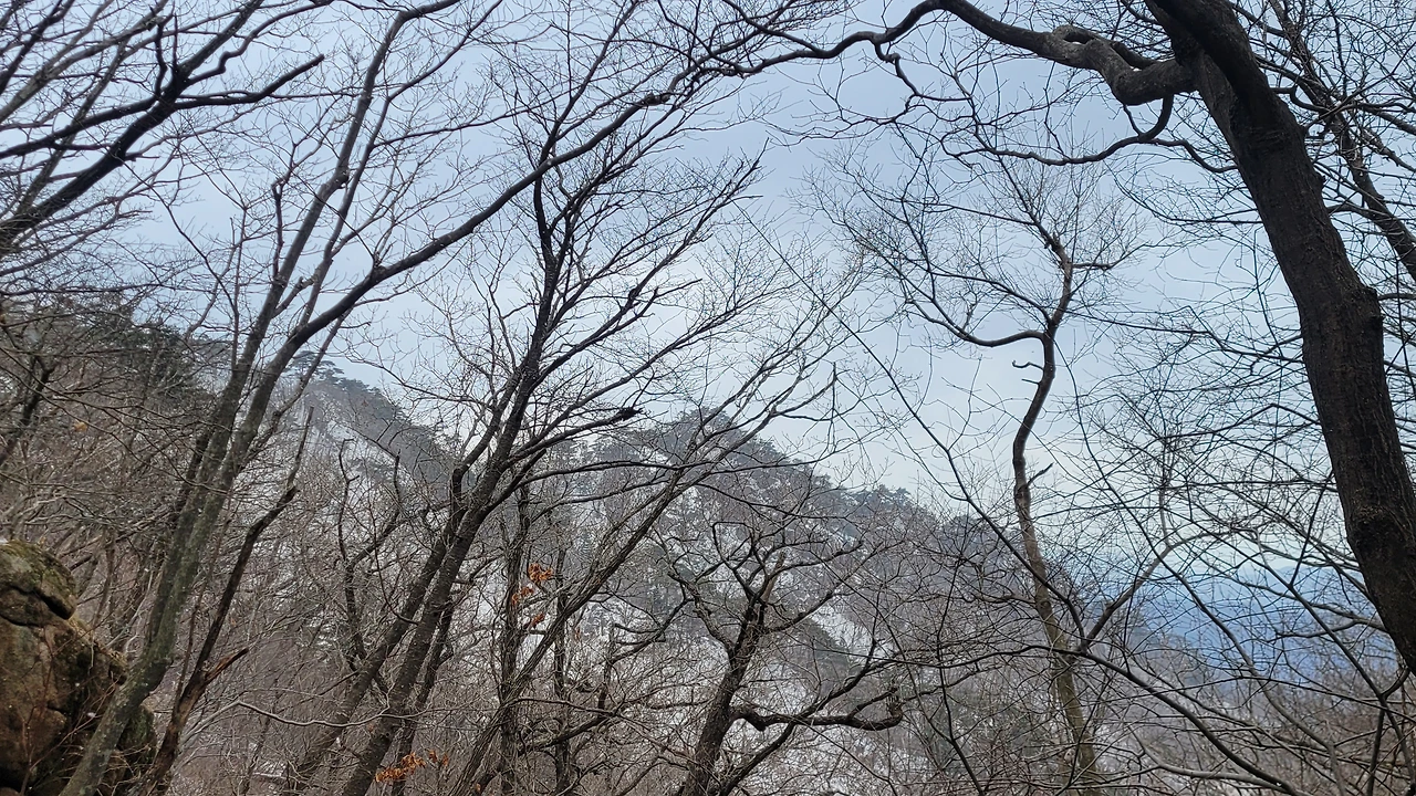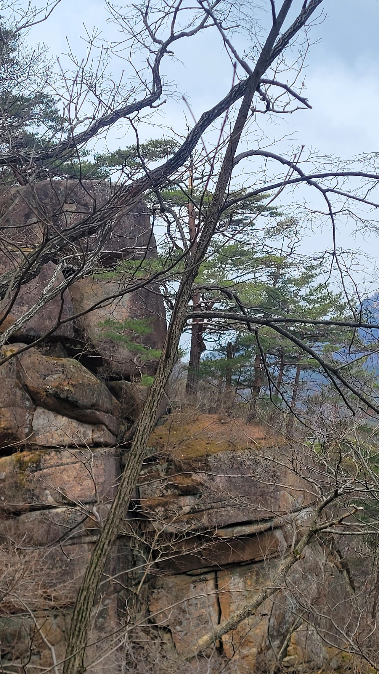 현지에 도착해서 산행을 시작했다. 날은 흐렸지만 산을 오르기에 나쁘지 않은 날씨였다. 들어선 산은 여전히 겨울 모습이다. 그래도 혹시나 하고 봄의 자취를 찾아보지만 잎 진 나무들로 여전히 스산하다. 찬 바람이 불지 않아 껴입은 옷이 거추장스럽다. 곧바로 가벼운 옷차림으로 산뜻한 몸과 마음으로 산을 오른다. 발걸음이 경쾌하다. 자연 속으로 들어가면 언제나처럼 마음이 설레고 들뜬다.