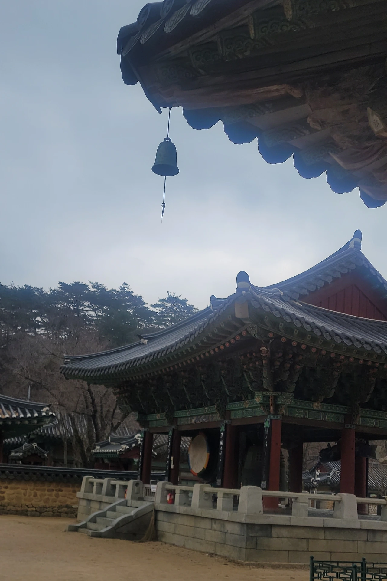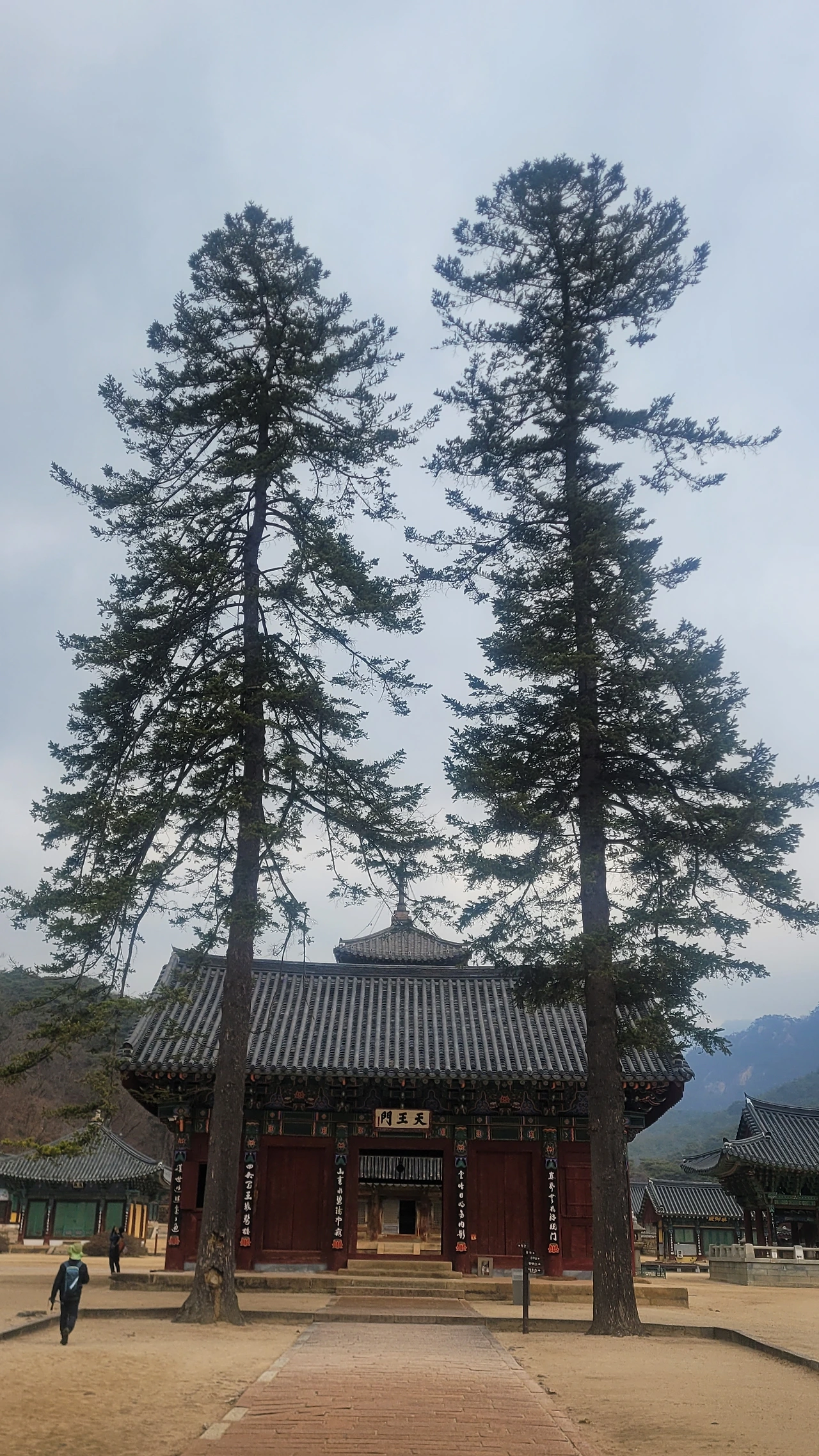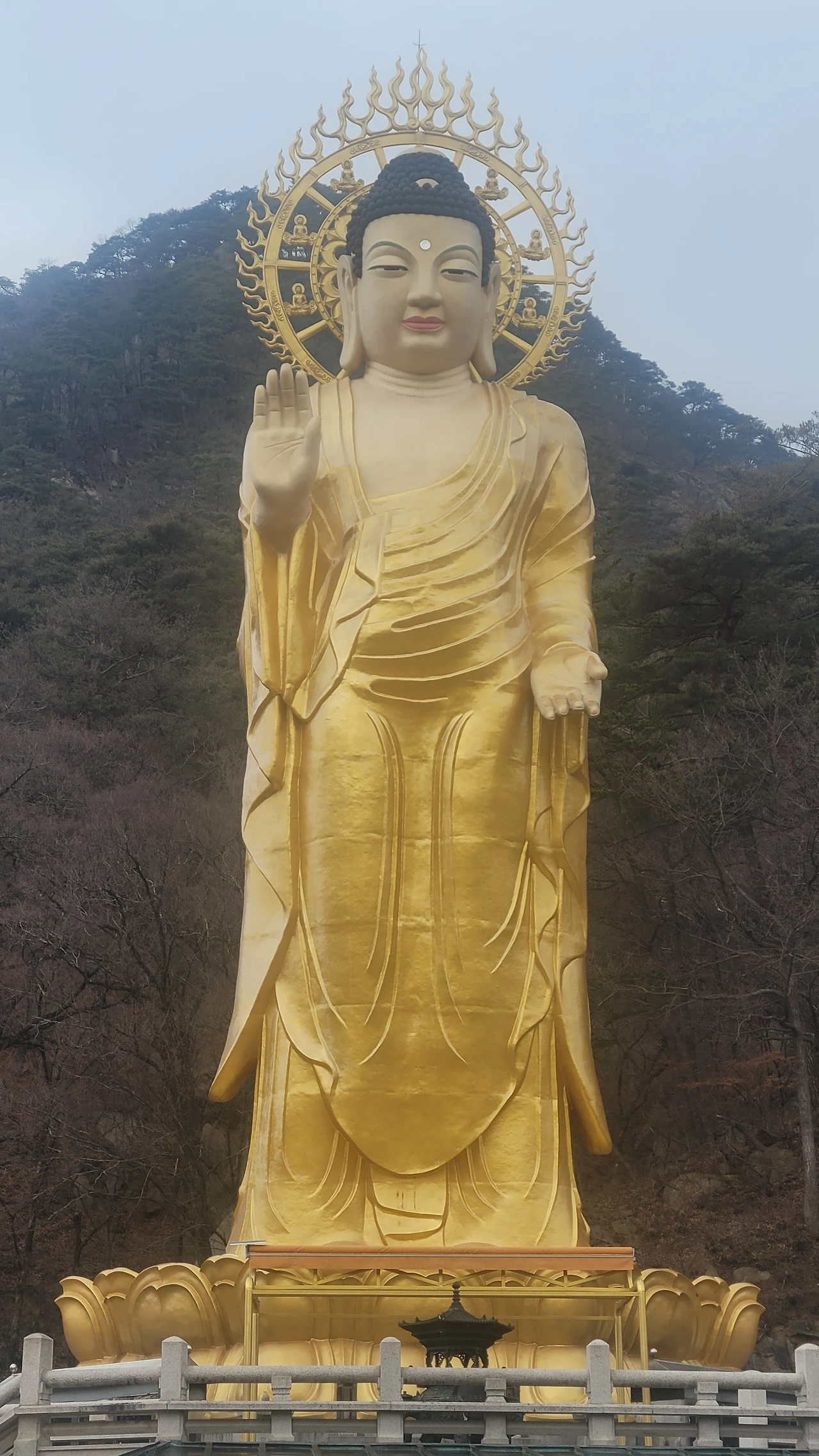 등산길 끝자락에는 천년 고찰 법주사가 있다. 우리나라 유일한 목탑인 팔상전, 석련지, 쌍사자 석등 같은 국보를 비롯한 많은 문화재와 유물이 있는 유서 깊은 절이다. 어마어마한 규모의 금동미륵대불도 눈길을 끈다. 푸근하고 넉넉한 미소가 인상적이다. 멀리 산자취가 아련한 아래 고즈넉한 가람 풍광이 마음에 깃든다. 가랑비가 뿌리는 음울한 날이지만 오히려 고요한 절의 분위기와 잘 어울린다. 선명한 풍경을 사진에 담을 수 없어 아쉽다. 하지만 멜랑코리 한 분위기는 괜찮아 보인다.