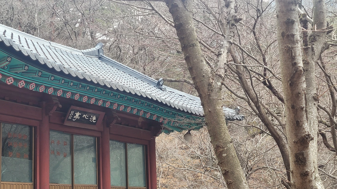 계곡을 따라 걸으면 시원한 물소리가 따라온다. 산이 깊으니 골도 깊다. 물소리는 언제나 들어도 질리지 않는 자연의 음향이다. 수량이 풍부하지는 않지만 물길 따라 흰 포말을 일으키며 기운차게 흐른다. 물빛은 누런 암석들로 인해 푸르러 보이지 않는다. 잔잔한 수면이 머무는 작은 소에는 물이 맑다. 고인 물은 탁하지만 쉴 사이 없이 밀려드는 맑은 물이 끓이지 않기에 머물러 있는 듯해도 투명하고 깨끗하다. 중간에 흐르는 땀을 계류로 씻으니 섬뜩한 차가움이 정신을 번쩍 들게 한다. 굽이굽이 물길을 따라 목욕소와 세심정이 있다. 속세를 떠나왔으니 맑은 물로 몸과 마음을 씻으라는 것이다.