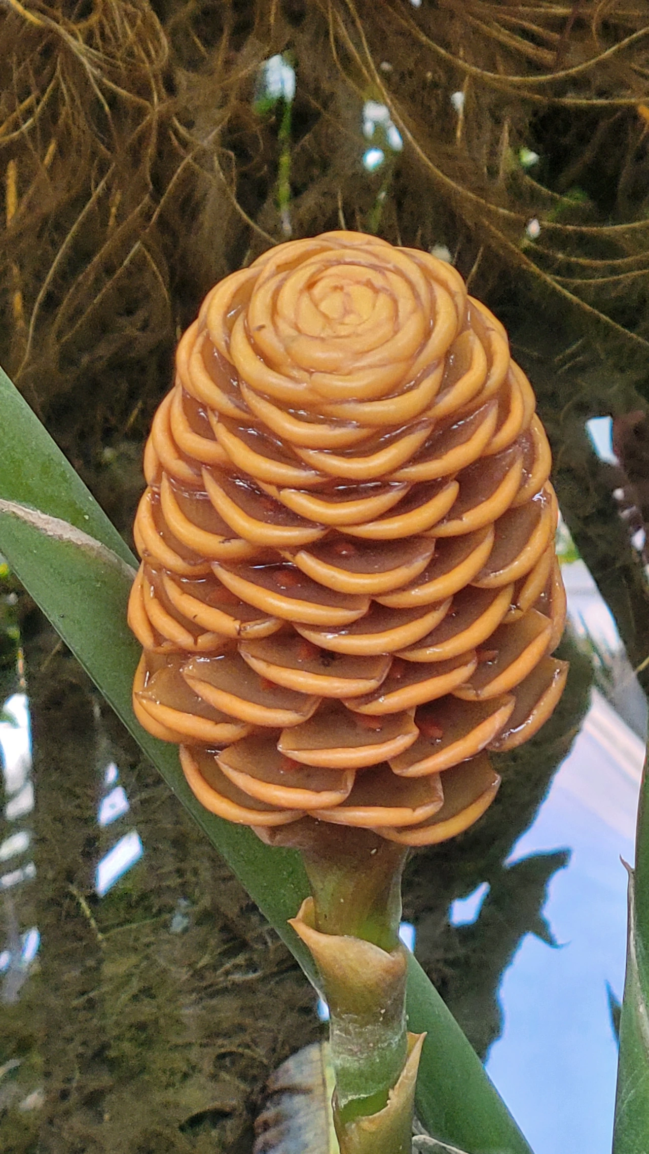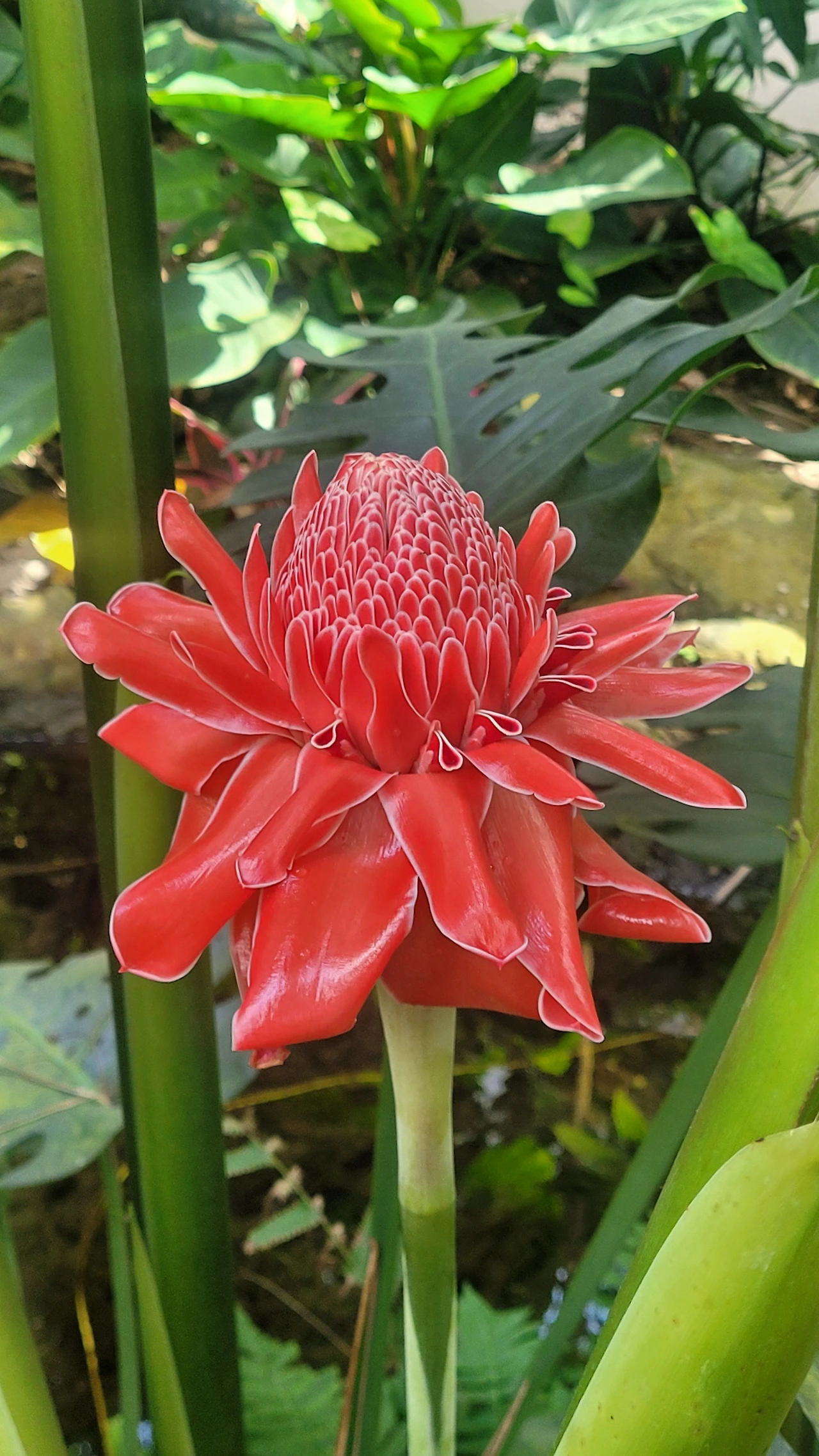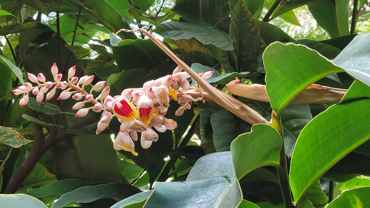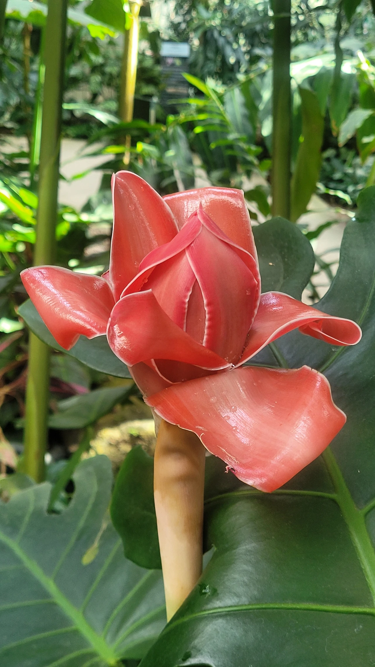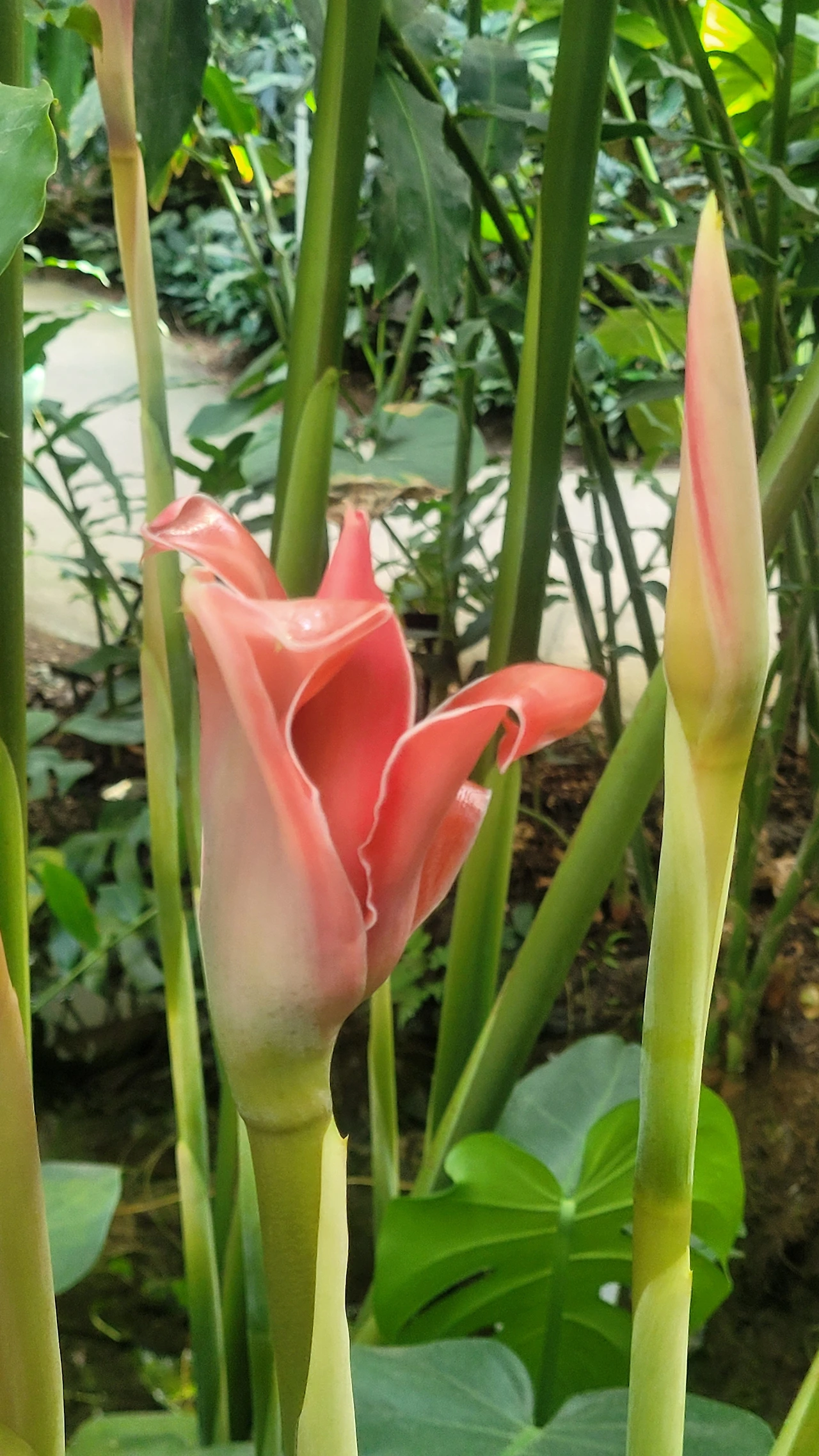 열대식물의 꽃의 특징은 한마디로 정의하자면 화려함의 극치다. 색조부터 모양까지 이들의 경이로움에 찬탄은 자연스러운 반응이다. 식사 후에 다시 돌아보면서 오전에 미처 보지 못했던 아름다운 꽃은 물론 기묘한 꽃도 발견했다. 우리의 상상력을 넘어서는 놀라움의 연속이다. 식물원은 찬찬히 들여다볼수록 마치 숨겨놓은 보물창고 같다. 값진 보화들이 계속해서 나타난다.