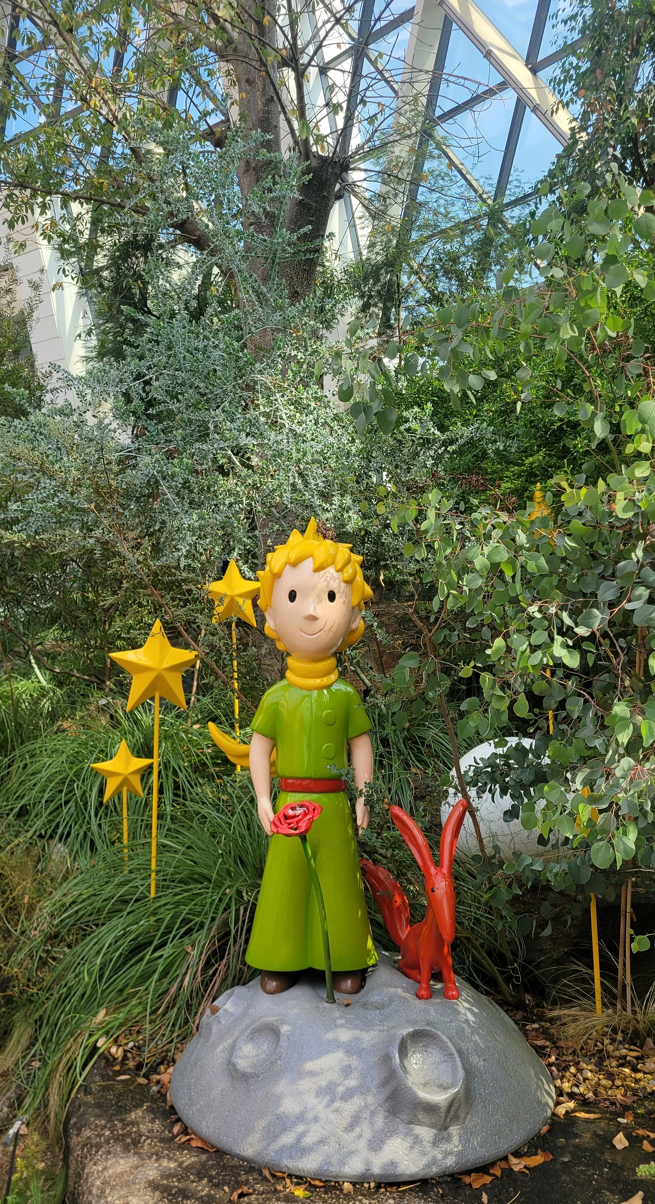깜찍한 연출도 있다. 어린 왕자와 바오밥 나무다. 아프리카에서 보는 웅장하고 독특한 모양의 바오밥 나무는 아니지만 온실에 두 그루가 있다 . 나무 앞에 귀여운 어린 왕자 인형을 세워 놓았다. 그가 길들인 여우도 보인다. 이야기가 담긴 식물원 탐방을 이끌어 내는 좋은 아이디어다.